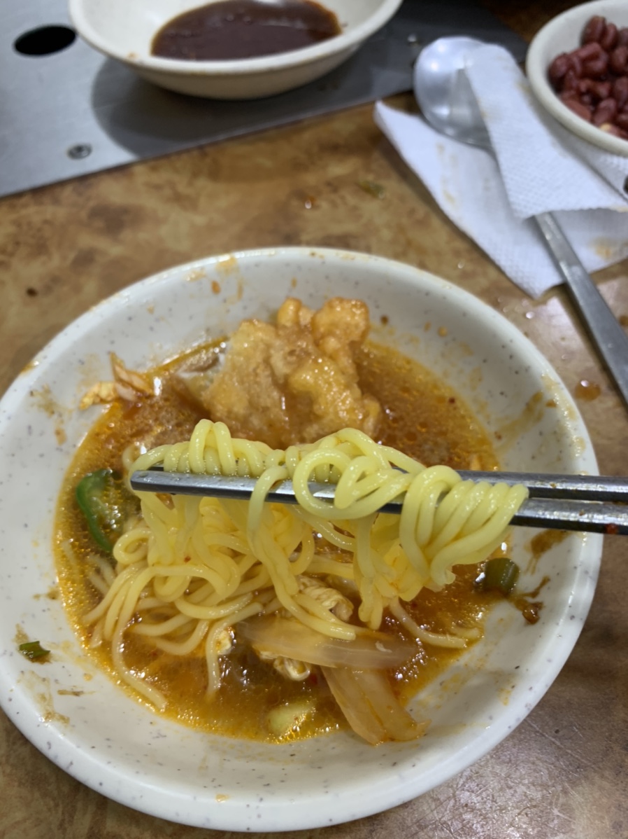 그리고 서비스로 나온 건두부 무침~^^ 살짝 느끼해지려는 하는데.... 이 새콤달콤한 건두부 무침이 상큼하게 잡아주더군요. 건두부 무침 의외로 괜찮았음!! 탕수육과 홍소갈비를 다 먹을 즘.... 추천 메뉴로 해물볶음? 인가..... 이거는 싱싱한 새우가 괜찮았는데, 탕수육이나 홍소 갈비보다는 못함^^ 마지막으로 국물이 필요해 온면을 주문해서 식사를 마무리했네요.