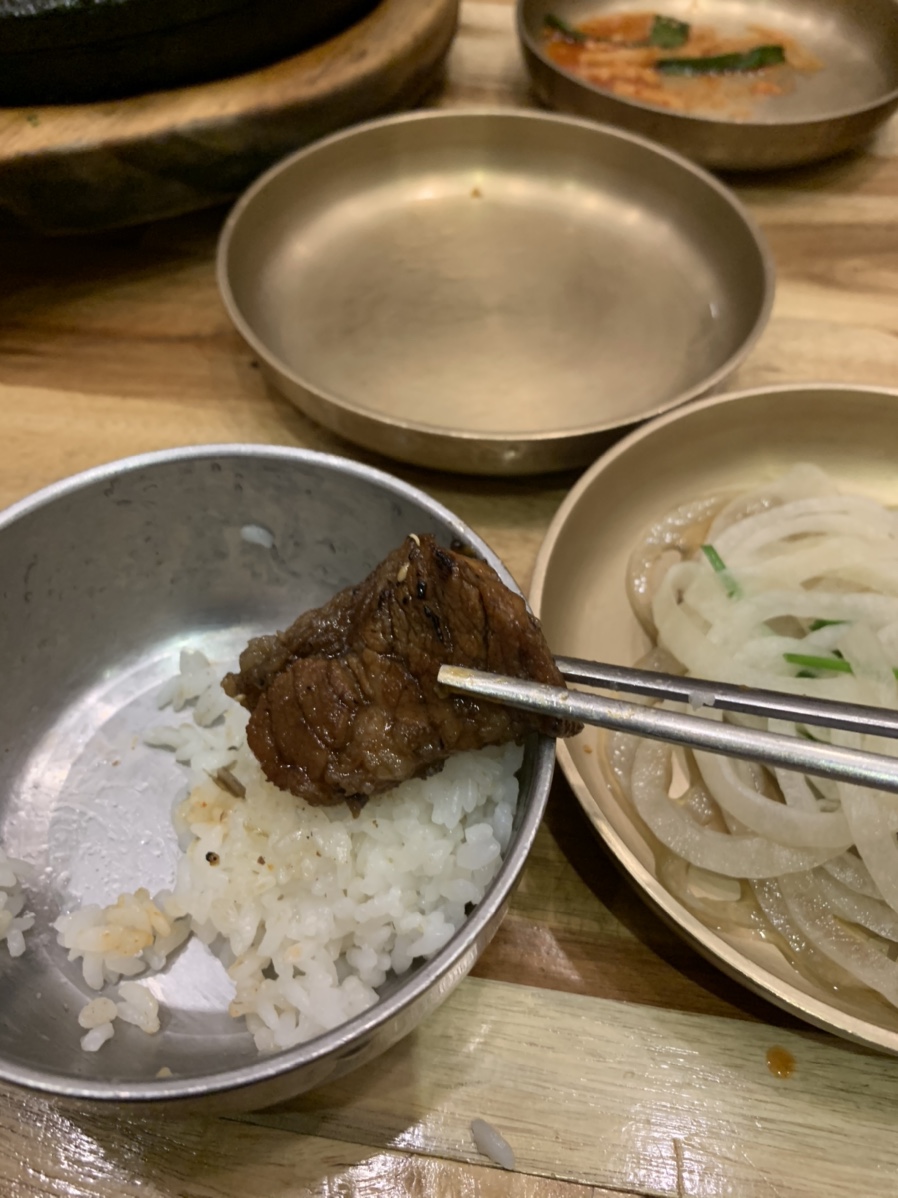 점심시간에 손님이 많아.... 좀 일찍 방문하는 게 좋을 것 같습니다. 시간이 안 맞아서 그런지 음식 주문하고 30분이 지나서야 음식이 나왔네요. 고기는 약간은 불에 그을린 향이 나는데, 고기 양념이나 식감은 나름 먹을만한 식당입니다. 제 입맛에는 갈비보다는 된장찌개를 맛있게 먹었던 식당으로 기억이 남습니다.
