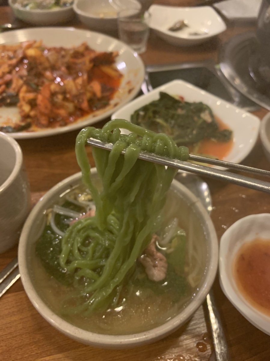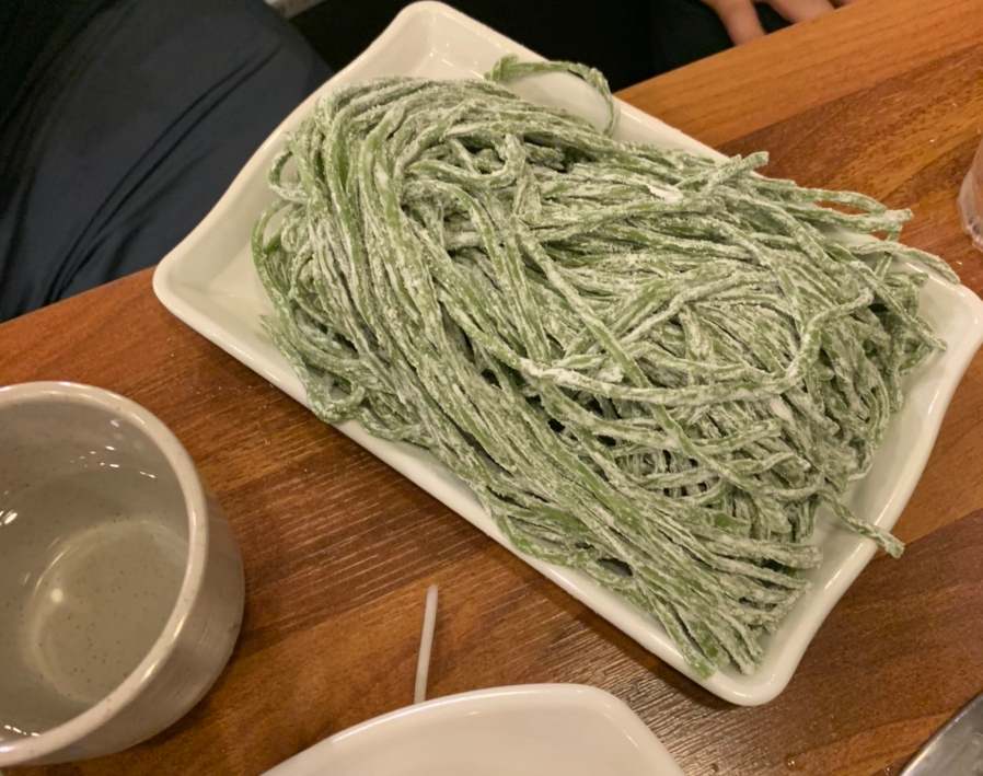 개운한 샤브 국물에 칼국수를 넣으니, 탁해진 국물이 아쉽기는 했지만 쫄깃한 식감의 칼국수는 먹을 수 있어서 나름 괜찮았네요. 칼국수에 열무김치를 함께 먹으니 자꾸자꾸 먹게 되는 칼국수! 그리고 마무리로 죽? 을 끓여서 먹으니 배부르게 맛있게 먹었네요.