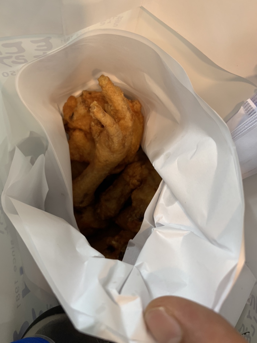 일반 치킨집의 닭보다 약간 큰 사이즈의 치킨으로 어른들이 먹기에는 쫄깃한 식감의 고기를 맛볼 수 있으나..... 미취학 둘째 아이가 먹기에는 조금 질긴 식감이라 잘 먹지는 못하더군요. 초등학생인 큰아이는 무난히 먹을 수 있는 치킨! 어른들에게는 쫄깃한 식감의 치킨입니다. 프라이드와 함께 포장된 양념소스는 매콤 달달해서 나중에 양념치킨도 먹어봐야겠네요.