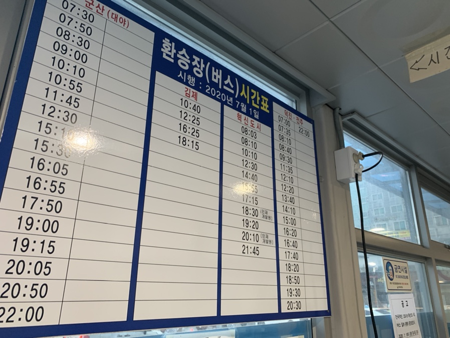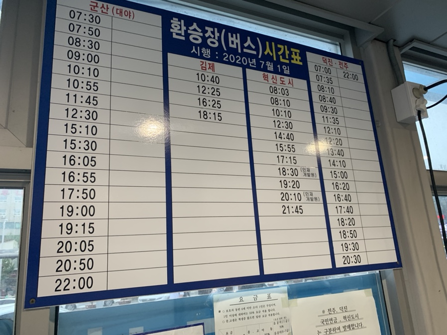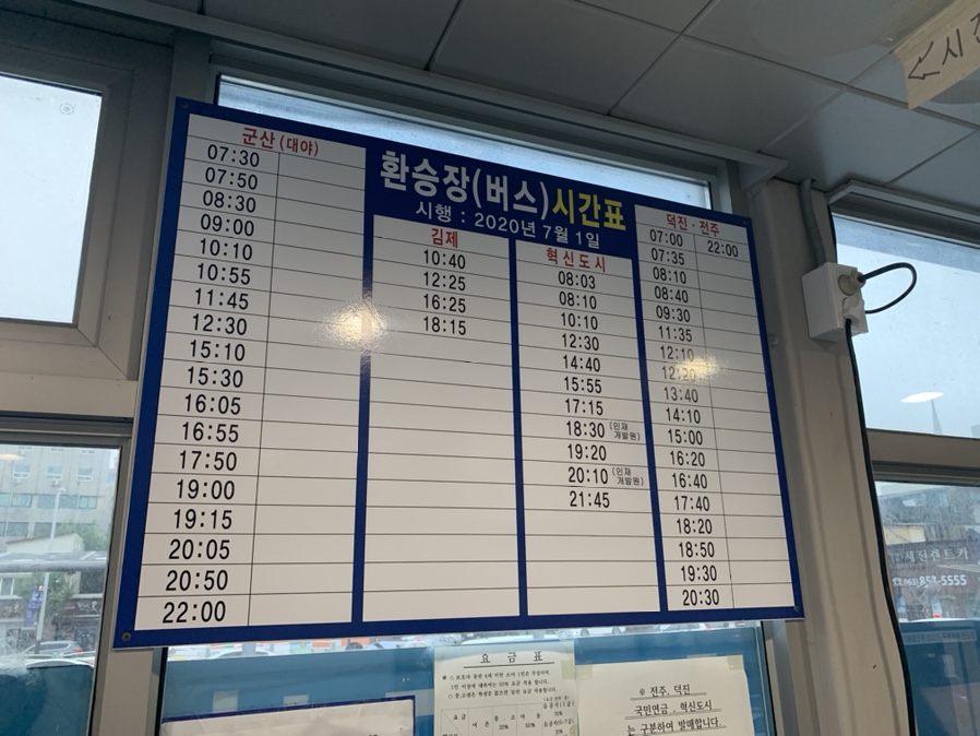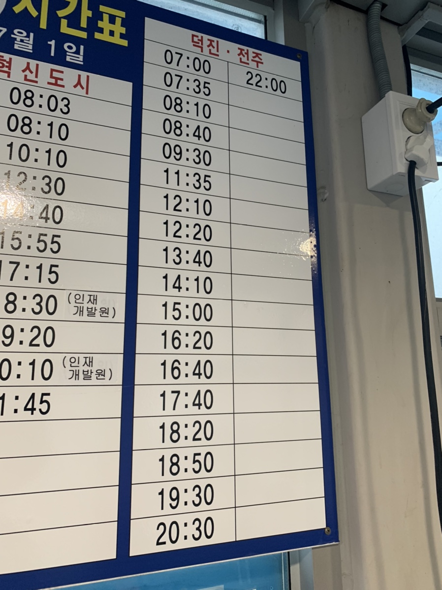 최근 많은 비로 인해서 익산에서 전주 가는 열차가 운행을 중단했습니다. 그래서 이용한 익산역 시외버스!!! 익산역 출입구에서 근교(전주, 군산, 김제)를 운행하는 노선입니다.