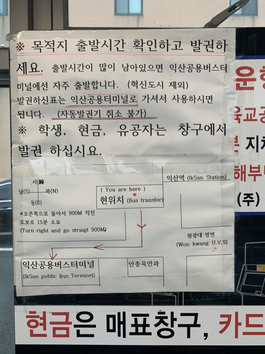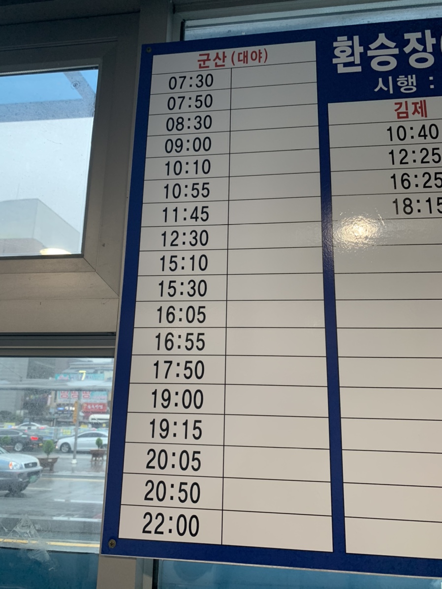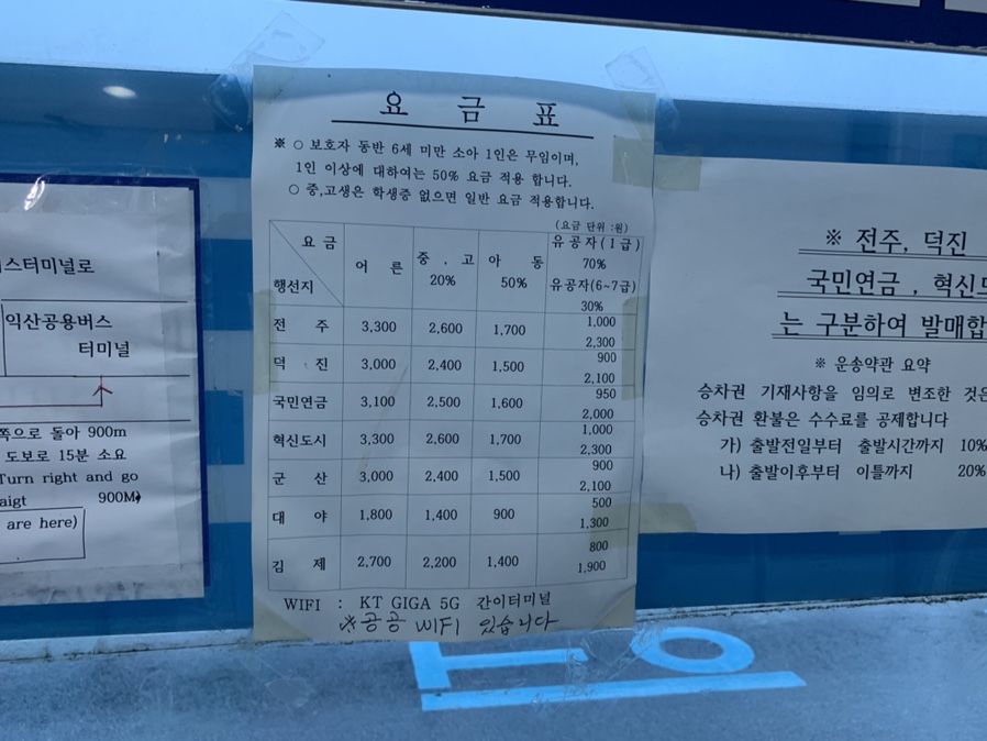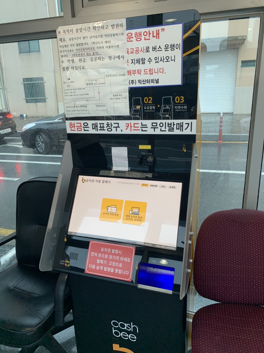 최근 많은 비로 인해서 익산에서 전주 가는 열차가 운행을 중단했습니다. 그래서 이용한 익산역 시외버스!!! 익산역 출입구에서 근교(전주, 군산, 김제)를 운행하는 노선입니다.