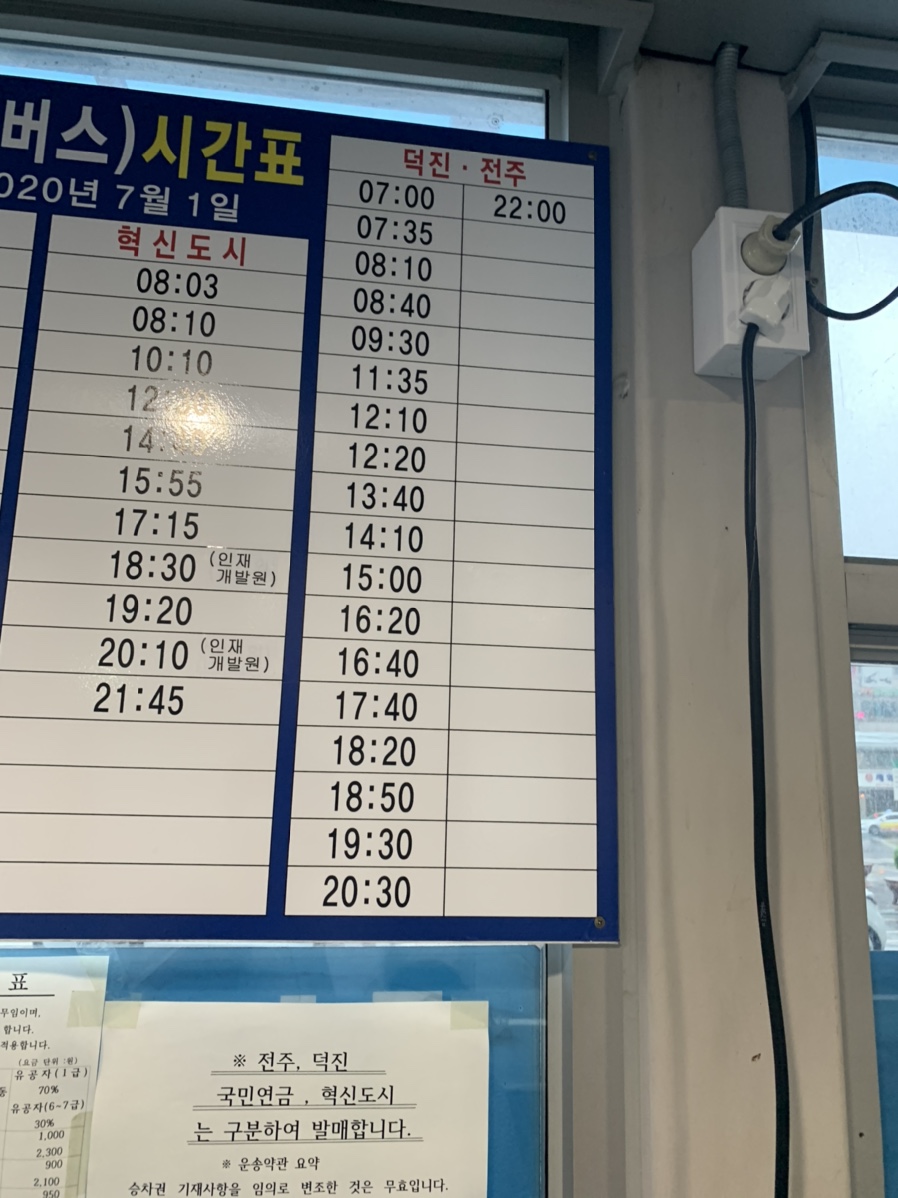 익산역 시내버스 시간표는 조금 시 변경되고 있더군요. 전주에 2시에 출발하는 버스가 있었는데, 이제는 없어지고 2시 10분 버스가 운행되더군요. 전주는 혁신도시와 전주 시외버스터미널로 구분해서 운행하더군요. 전주 방향은 덕진 하차장(덕진광장)과 시외버스터미널의 요금이 차이가 있으니 내리는 구간을 확인하고 표를 구매해야겠더군요.