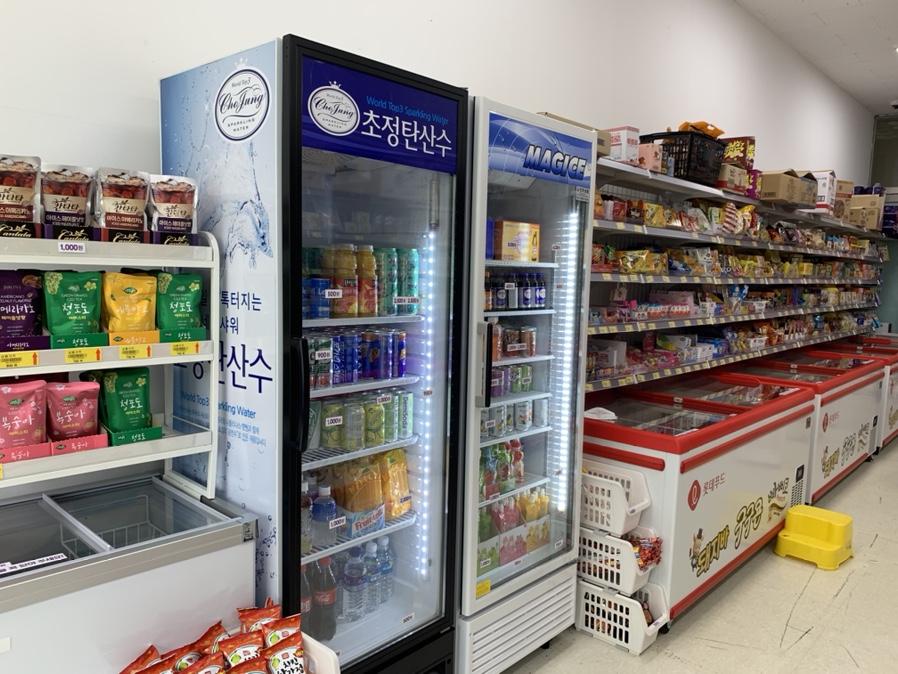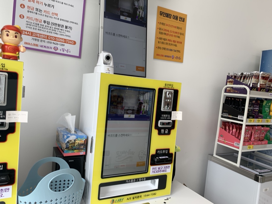 간판은 아이스크림 할인점으로 되어 있었지만, 내부로 들어가 보니 일반 편의점으로 상품이 진열되어 있었네요. 편의점에 계산해 주는 직원이 있어야 하지만, 직원은 없고 무인 계산기만 준비되어 있더군요. 내부 상품을 스캔해주고 시원한 음료수나 아이스크림을 하나씩 골라주었네요.