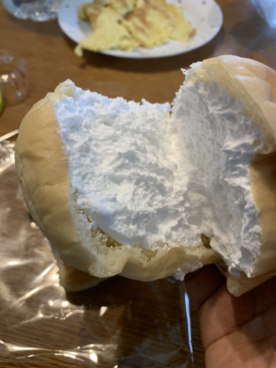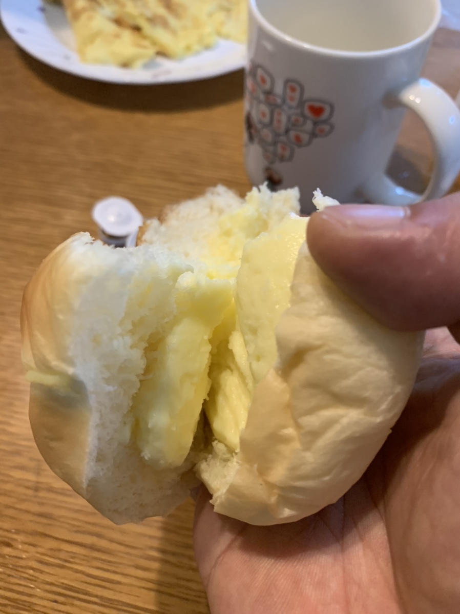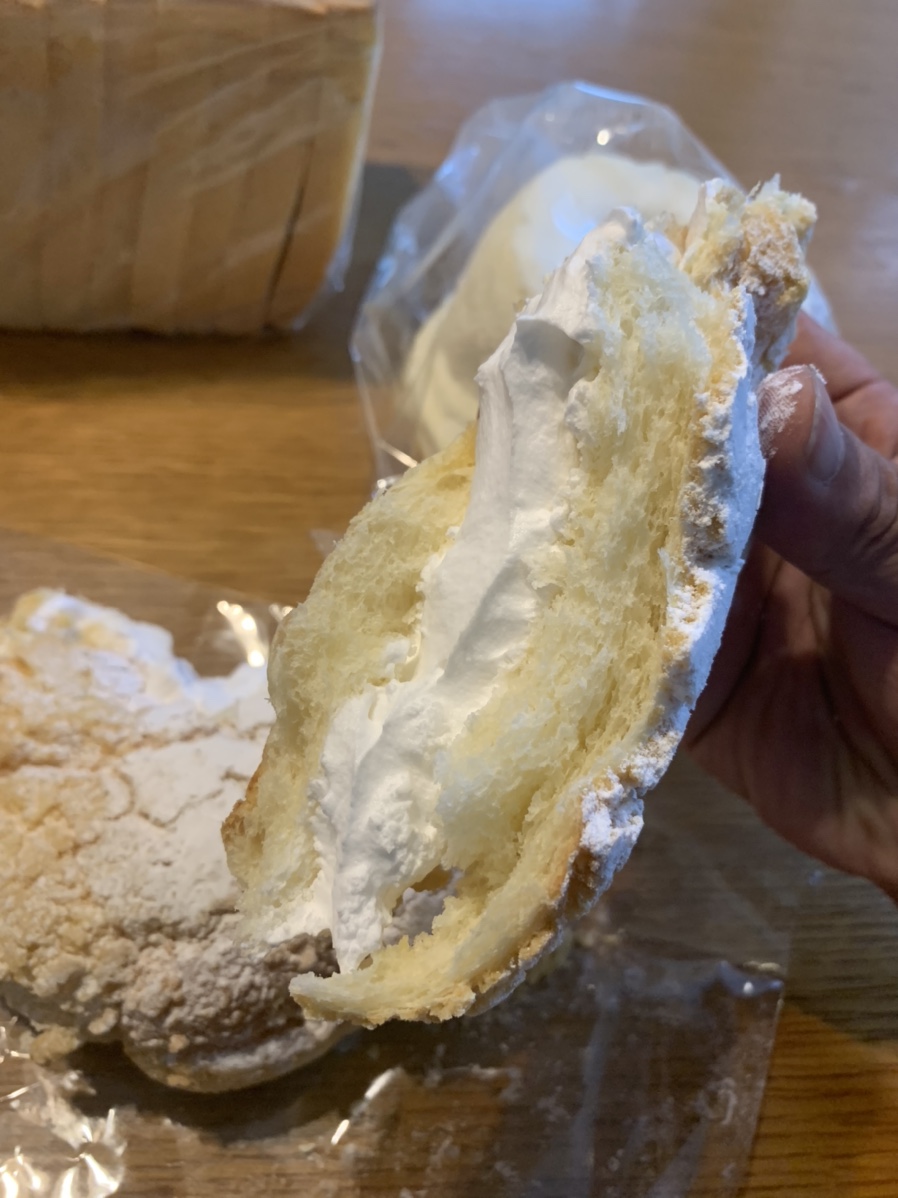사각 우유식빵은 일반적인 식빵이라.... 식빵에 발라먹는 집에서 직접 만든 딸기잼이 맛있었던^^ 식빵은 식빵 전문점에서 사 먹는 것으로 하고 패스! 그리고 궁둥이 빵, 빵 이름처럼 빵이 엉덩이처럼 생겼네요. 한쪽에 생크림이 들어있어서 다른 한쪽도 생크림이 들어있겠지 생각했는데, 다른 쪽은 다른 크림이 들어있었네요.