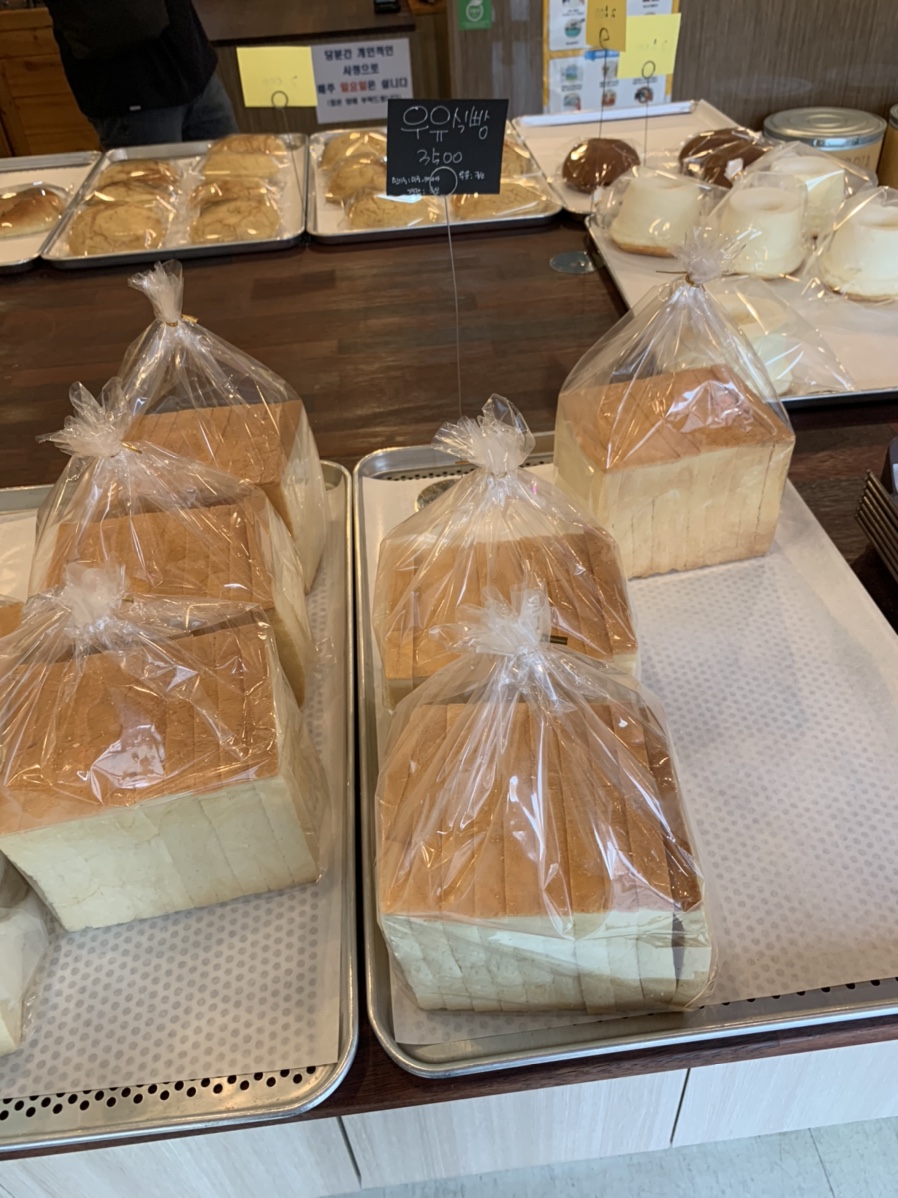 순창에 있는 조그마한 빵집으로 알고 들어갔는데, 빵을 판매하는 카페였더군요.ㅎㅎ 우선 빵집에서 맛있다는 크림 곰보빵과 사각 우유식빵, 궁둥이 빵과 소프트 시폰 하나씩 담아서 포장을 했습니다. 가격은 궁둥이 빵과 곰보빵은 2,500원씩, 식빵과 시폰은 3,500원으로 그렇게 비싼 느낌을 들지 않더군요.