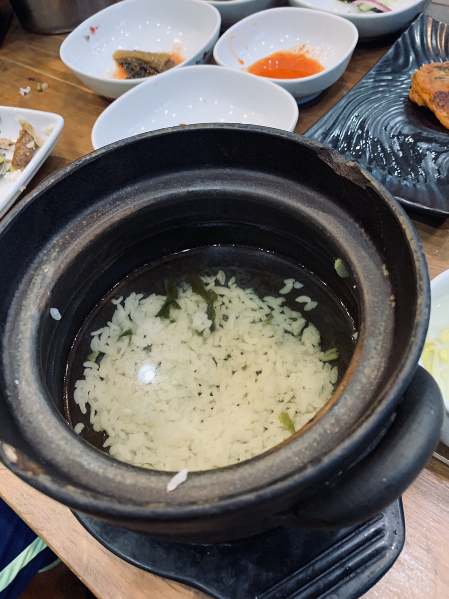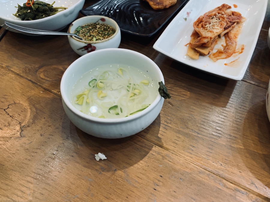 너무 한적한 장소의 식당! 텅 빈 식당에서 우리 가족만 식사를 마쳤네요. 밑반찬, 시래기밥, 떡갈비는 맛은 나쁘지 않더군요. 다만, 정식이라는 메뉴로 시래기밥을 함께 판매하고 있으니 너무 비싸다는 느낌이 들더군요. 함께 나오는 맹 콩나물 국물은 아쉬움이 많이 남았네요. 정식을 먹었지만 무엇인가 덜먹은 느낌?!