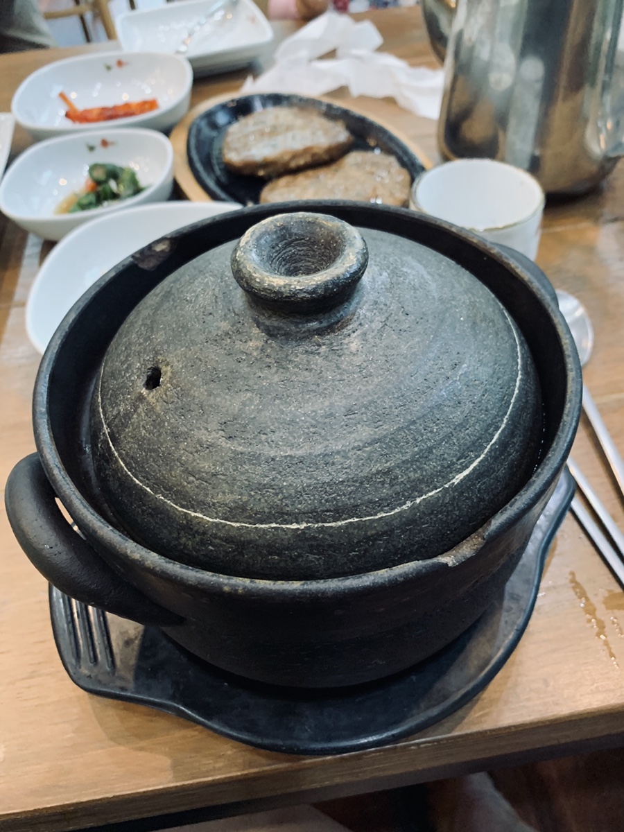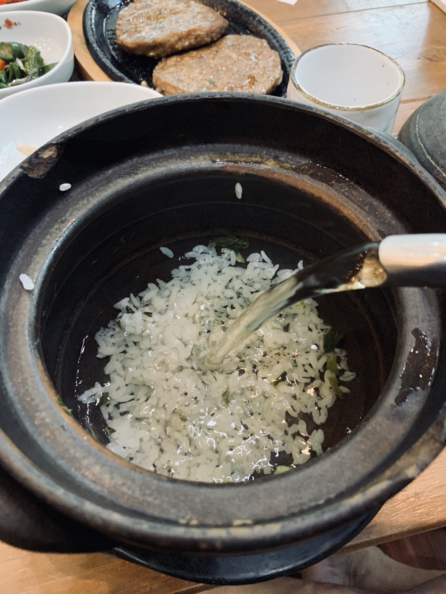 돌솥밥은 따뜻한 물을 넣어서 누룽지를 만들어 주고, 시래기밥은 간장 양념장을 밥 위에 뿌려서 먹는 스타일입니다. 떡갈비는 부드러운 식감이라 아이들이 먹기 딱 좋기는 합니다. 국물로는 콩나물국이 나오는데, 시래기밥과 어울리지는 않더군요. 된장찌개, 김치찌개 또는 시래깃국이 함께 나오면 좋겠다는 생각이 들더군요. 밥을 먹기는 먹는데, 국물이 아쉬워서 한 끼를 맛있게 먹었다는 느낌은 안 들더군요.