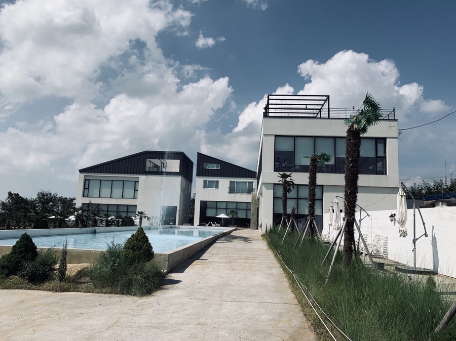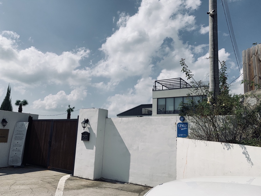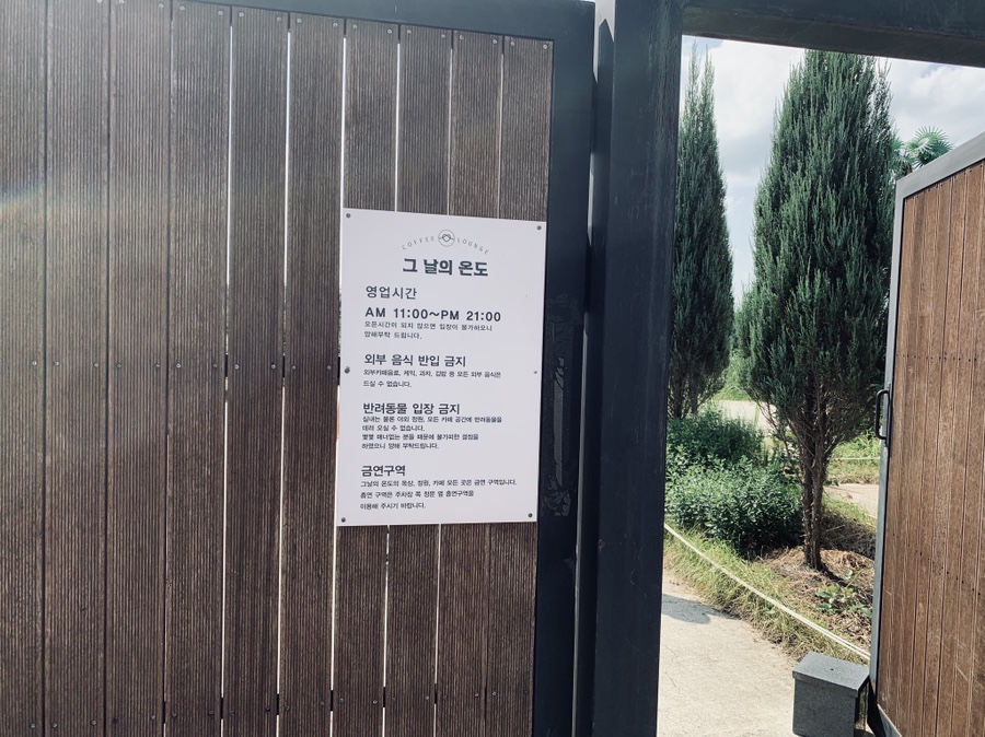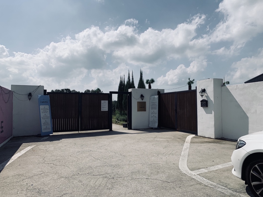 전주 근교에 위치한 한적한 카페 그날의 온도에 방문하였습니다. 방문한 그날의 온도는 35도! 무척 더운 날씨였습니다. 전주에서 많이 떨어진 카페, 그리고 한적한 곳에 위치하여 손님이 많이 없으리라 생각을 하였으나..... 주차장부터 차량이 가득 차 있더군요.