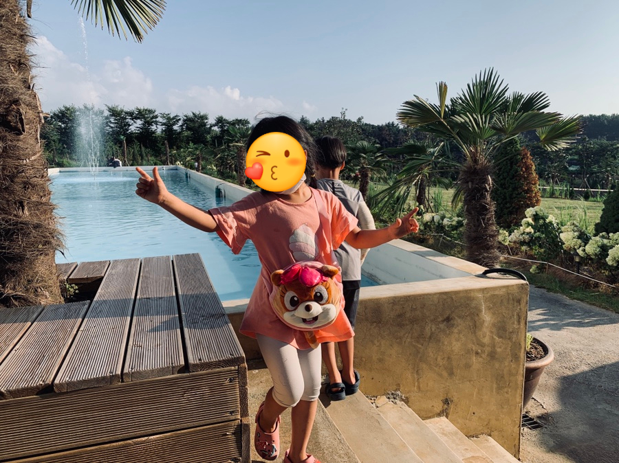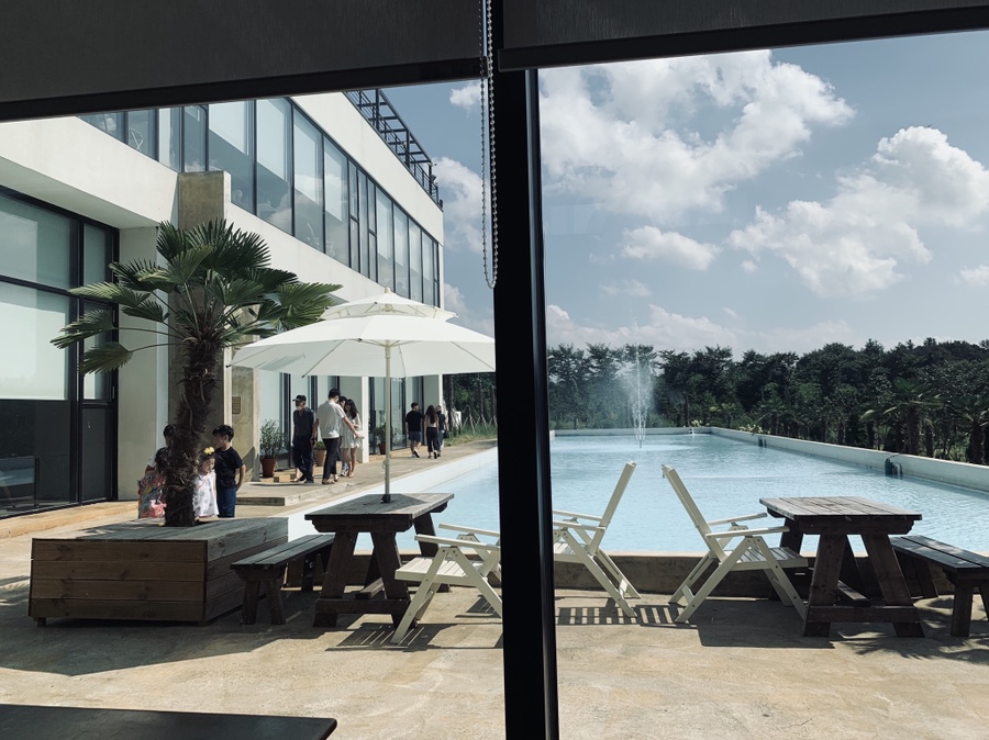 카페 대문을 지나면 넓은 공원과 2개의 건물이 있는데, 하나는 카페로 운영하고 다른 건물은 식당으로 운영되더군요. 카페 중앙에 있는 넓은 수공간, 그리고 중앙에 높게 치솟는 분수는 아이들이 무척이나 좋아하더군요. 아이들뿐만 아니라, 성인들도 이런 공간을 좋아해서 그런지 많이들 찾는 거 같습니다.