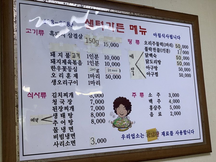혹 돼지을 맛보러 방문하였으나, 옆 테이블에서 돼지불고기를 맛있게 드시는 모습에! 메뉴를 변경했습니다. 돼지불고기 2인분, 김치찌개를 주문했습니다. 불고기는 1 인분 10,000원, 김치찌개는 8,000원으로 가격은 비싼 편은 아니더군요.