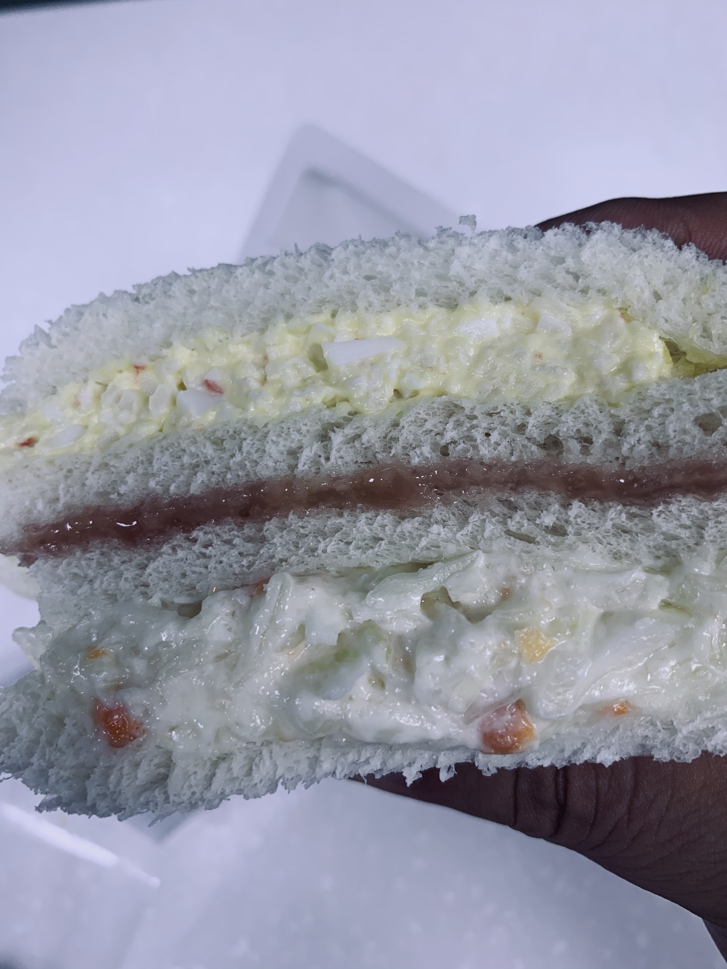 이번에 먹은 샌드위치는 인기가 좋아요 샌드위치로, 기존 샌드위치는 각각의 샌드위치 2~3개 정도 들어있는 샌드위치였습니다. 이번 샌드위치는 하나의 샌드위치(각각 2개를 만들어 중앙 딸기잼으로 연결)로 빵 부분이 퍽퍽할 수 있는데, 음료수가 없이도 먹을 수 있는 촉촉한 샌드위치였습니다.