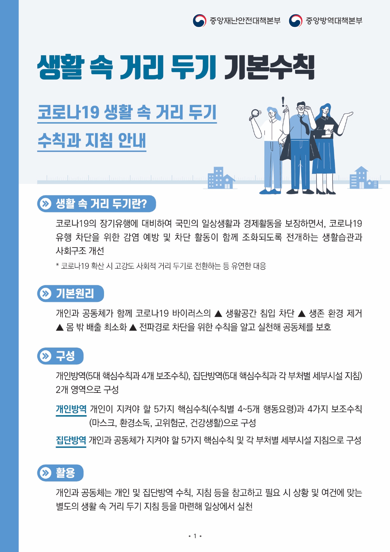 ※ 사회적 거리두기 1단계(생활 속 거리 두리) 기본 수칙