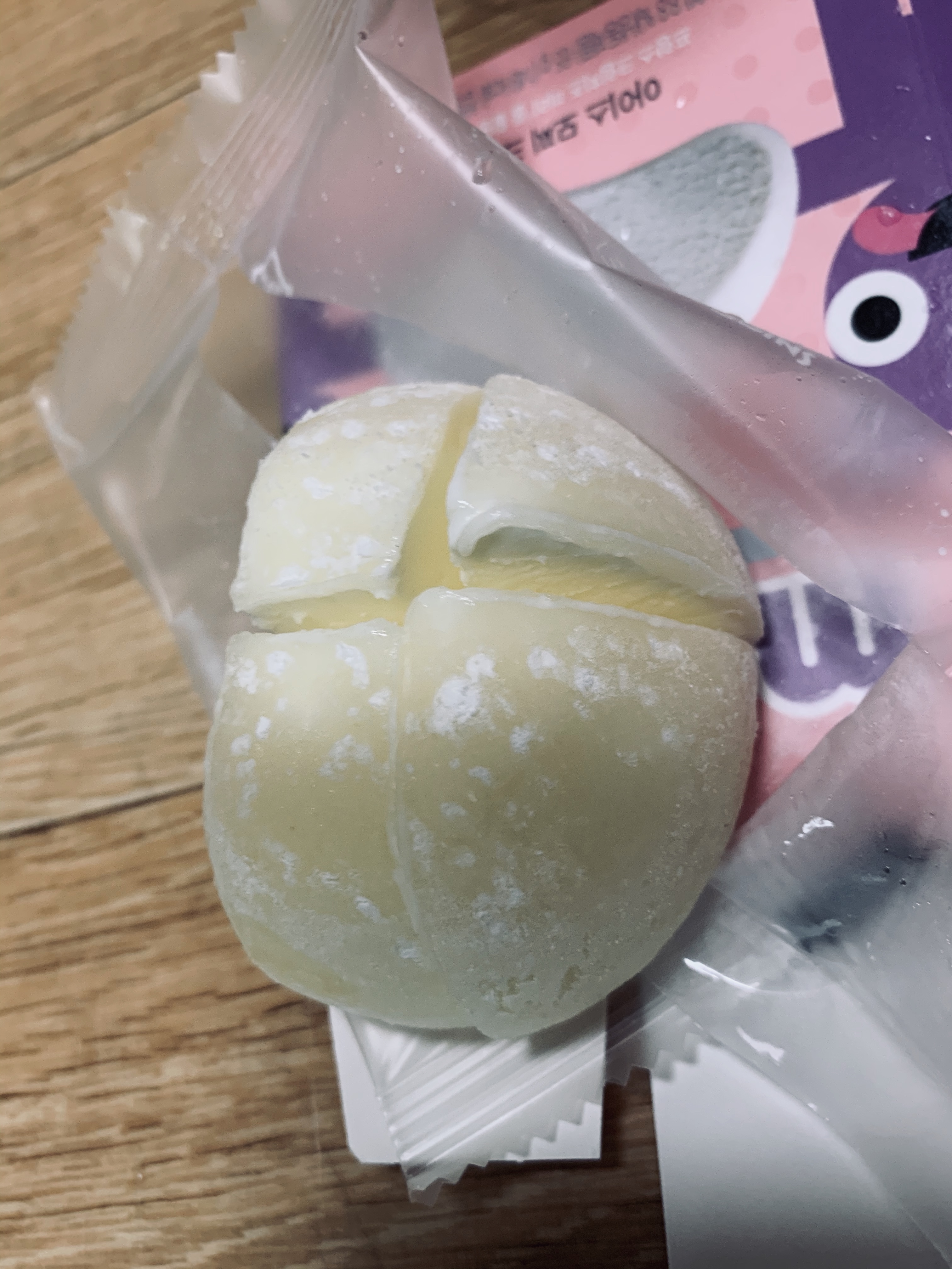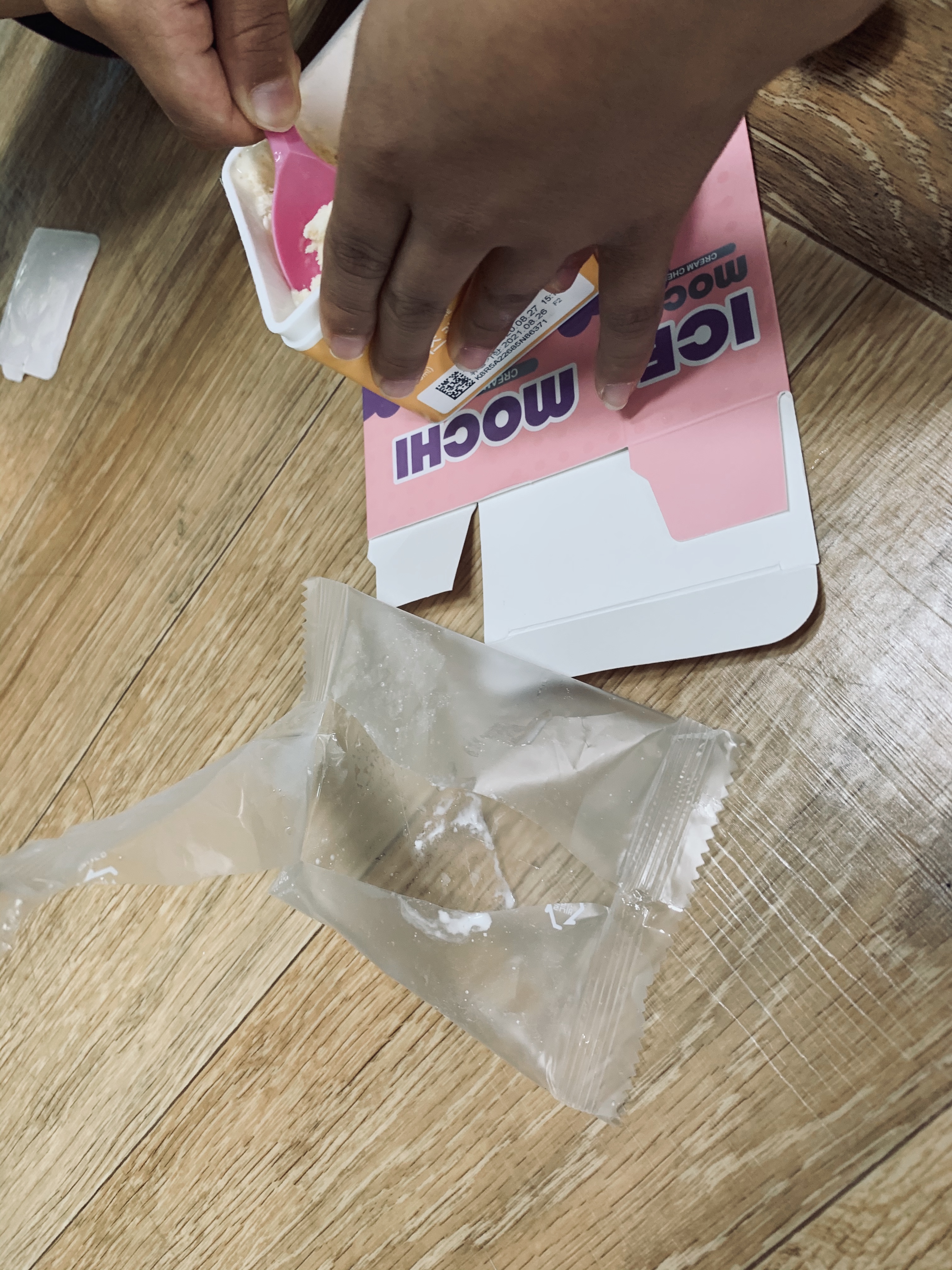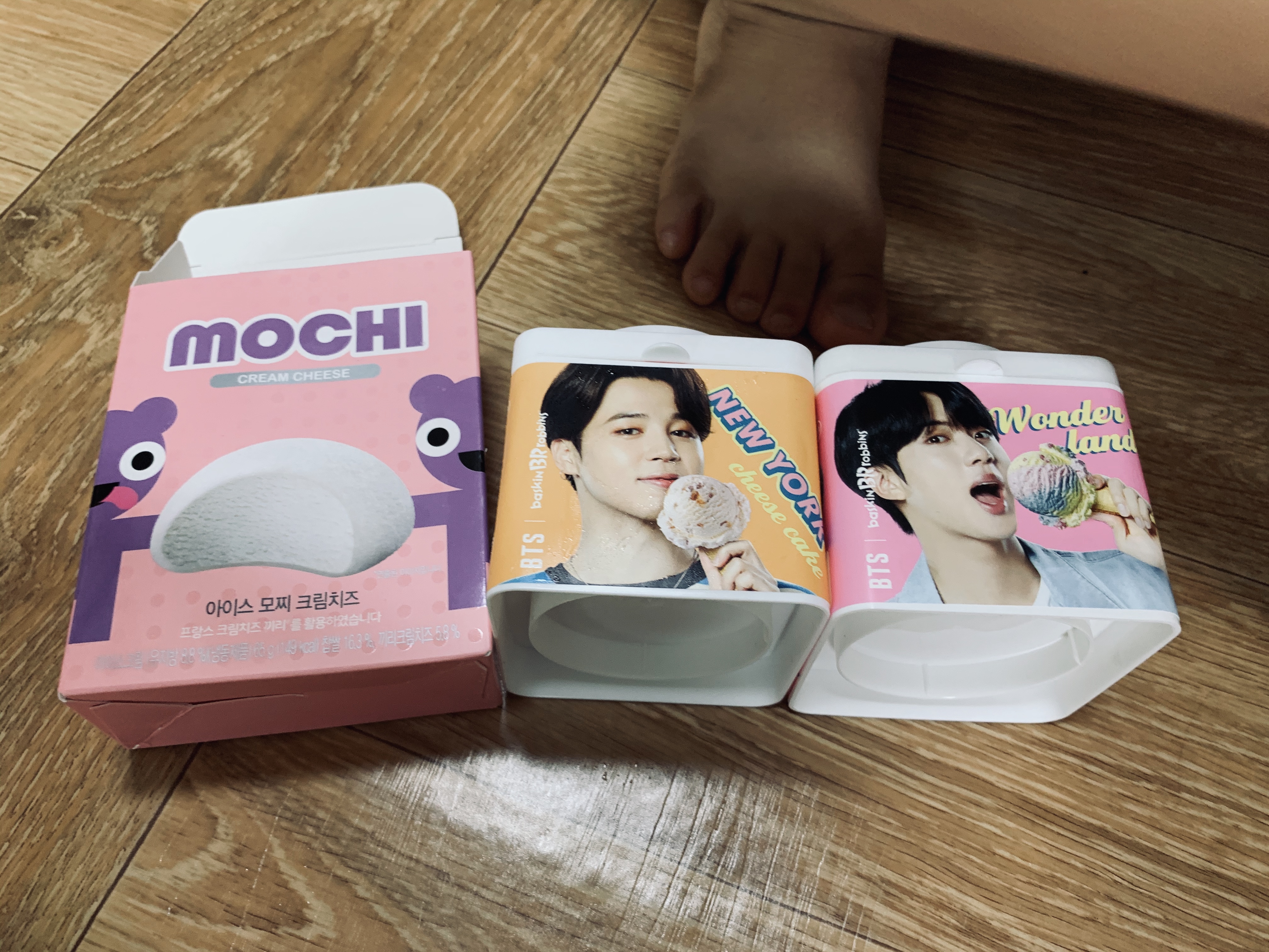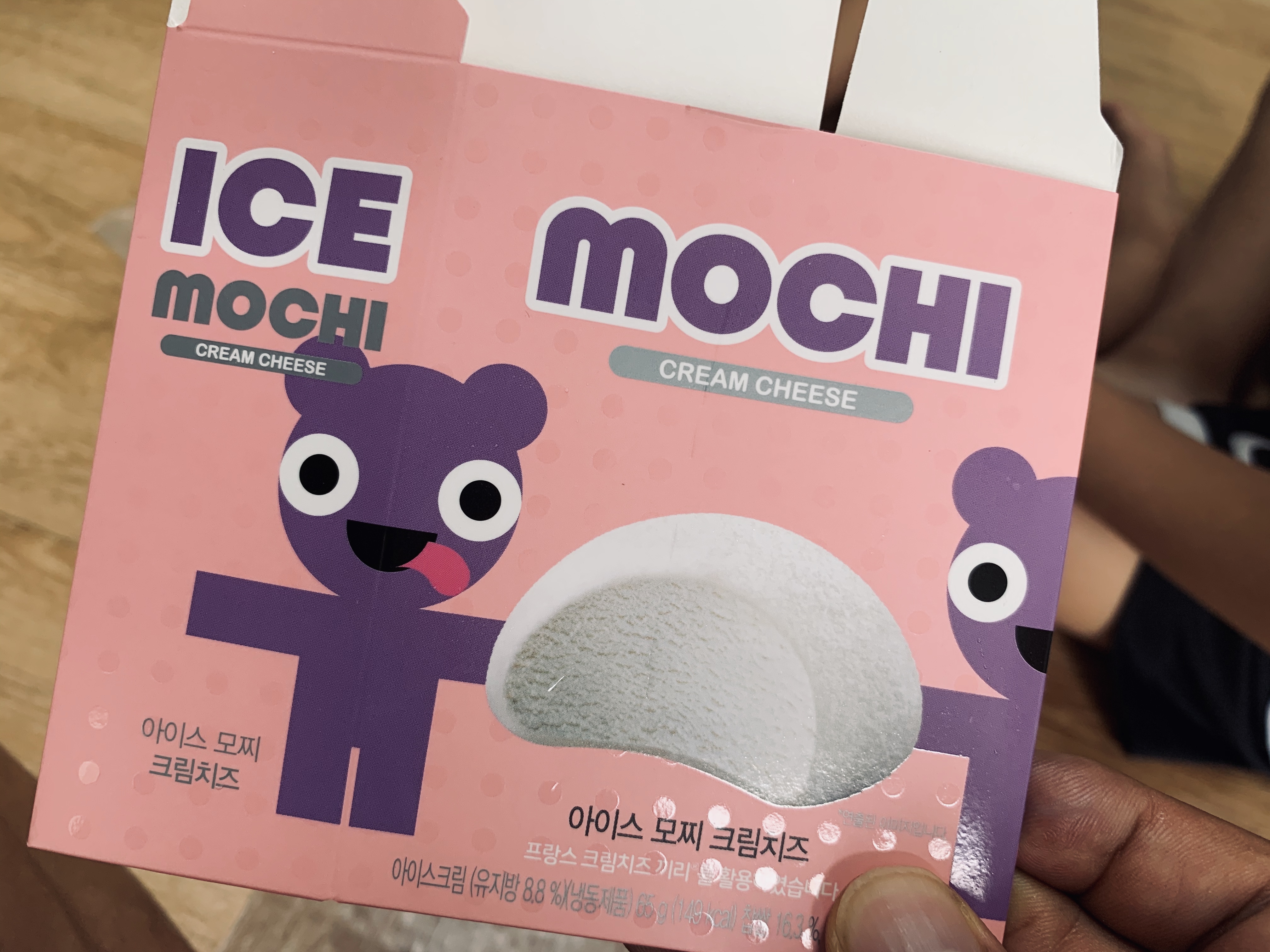 아이들이 좋아하는 베스킨 컵 아이스크림과 큰 아이들이 무척이나 좋아하는 모찌를 사 왔네요. 찹쌀떡은 롯데에서 판매하는 찰떡 아이스와 비슷한 느낌의 아이스크림입니다. 걷은 찹쌀떡으로 되어 있고, 속은 아이스크림으로 차있는데... 다른 점이 아이스 찹쌀떡은 속 내용물이 다양하다는 것! 그중 아이가 가장 좋아하는 크림치즈 찹쌀떡!