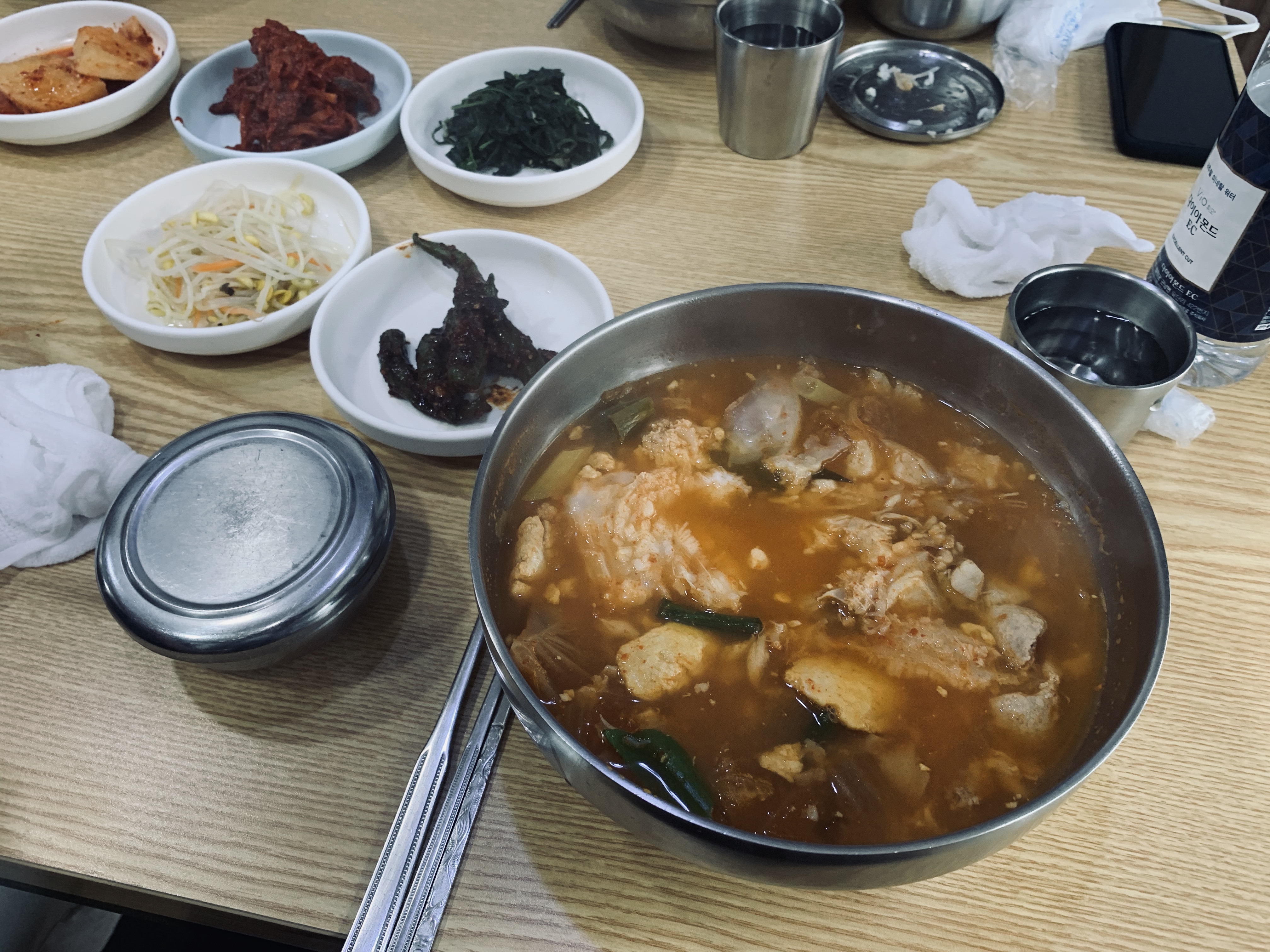 아침 해장용으로 먹었던 삼척의 별미 곰치국! 가격은 15,000원으로 약간? 비싼 느낌인데... 맛은 너무 좋았네요. 꼭 생선으로 순두부를 끊인 느낌이랄까!!! 단 호불호가 갈리는 음식이긴 합니다. 2~30대는 반절 이상 남기고... 그 이상의 나이 때 분들은 무척이나 좋아하는 곰치국이었네요. 전 "호"에 가까워 싹 다 비웠네요.