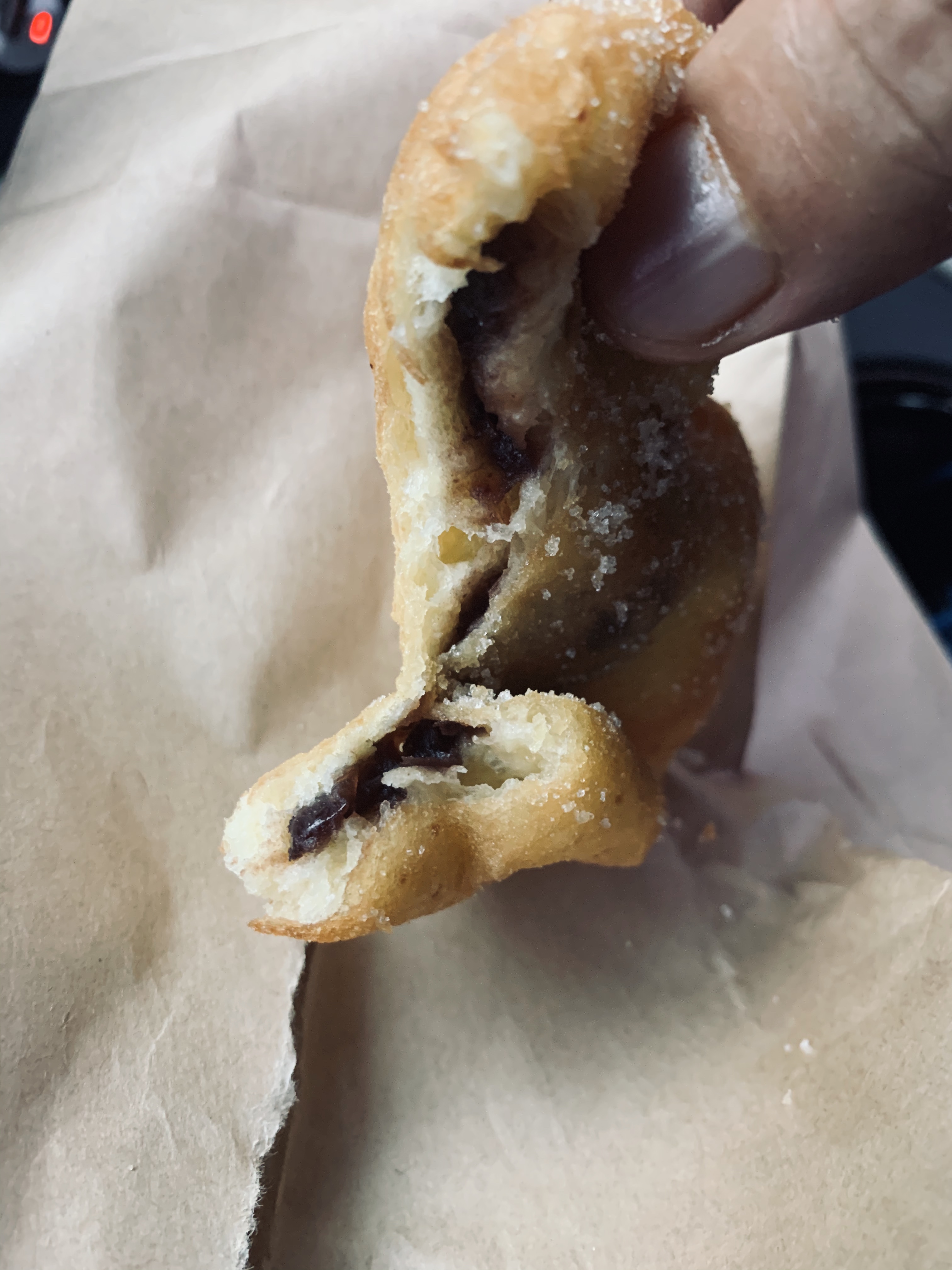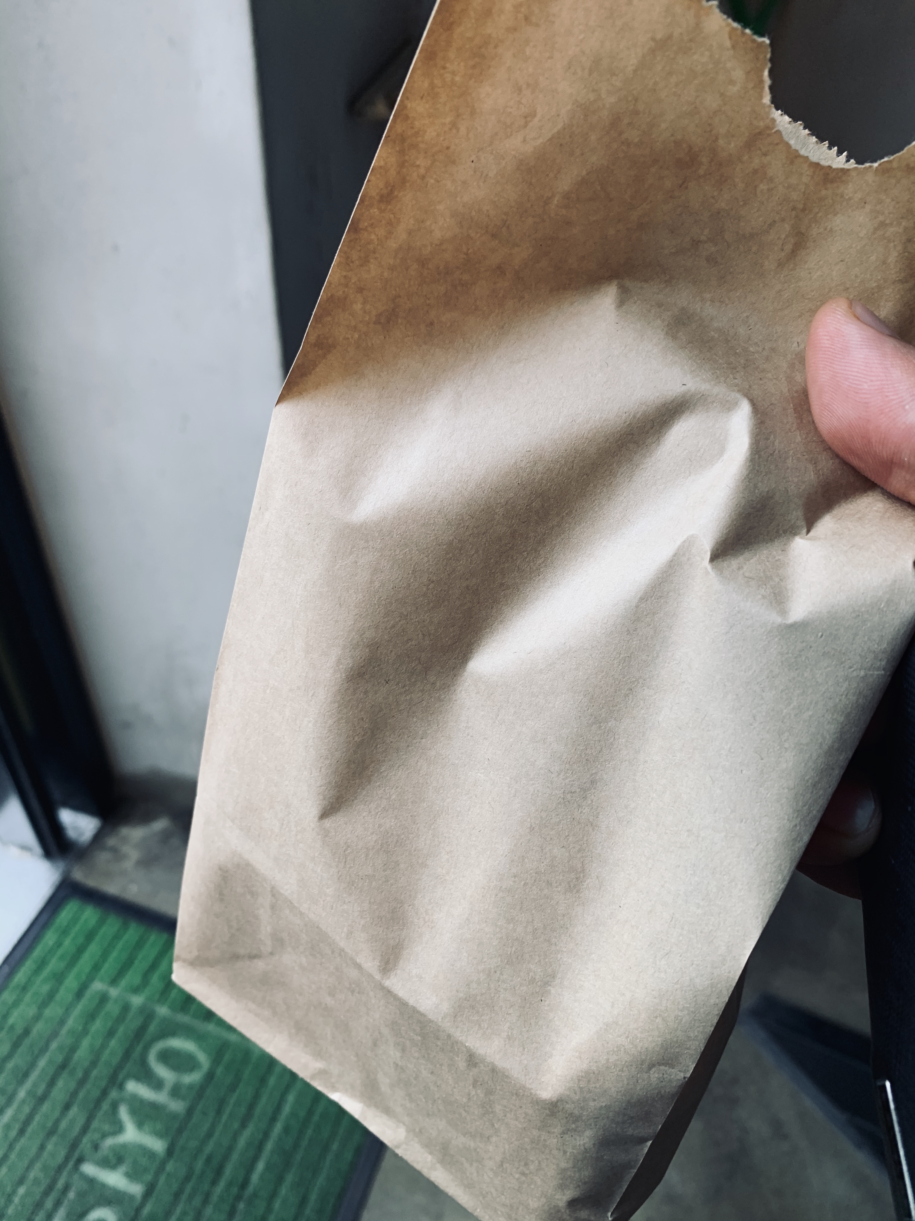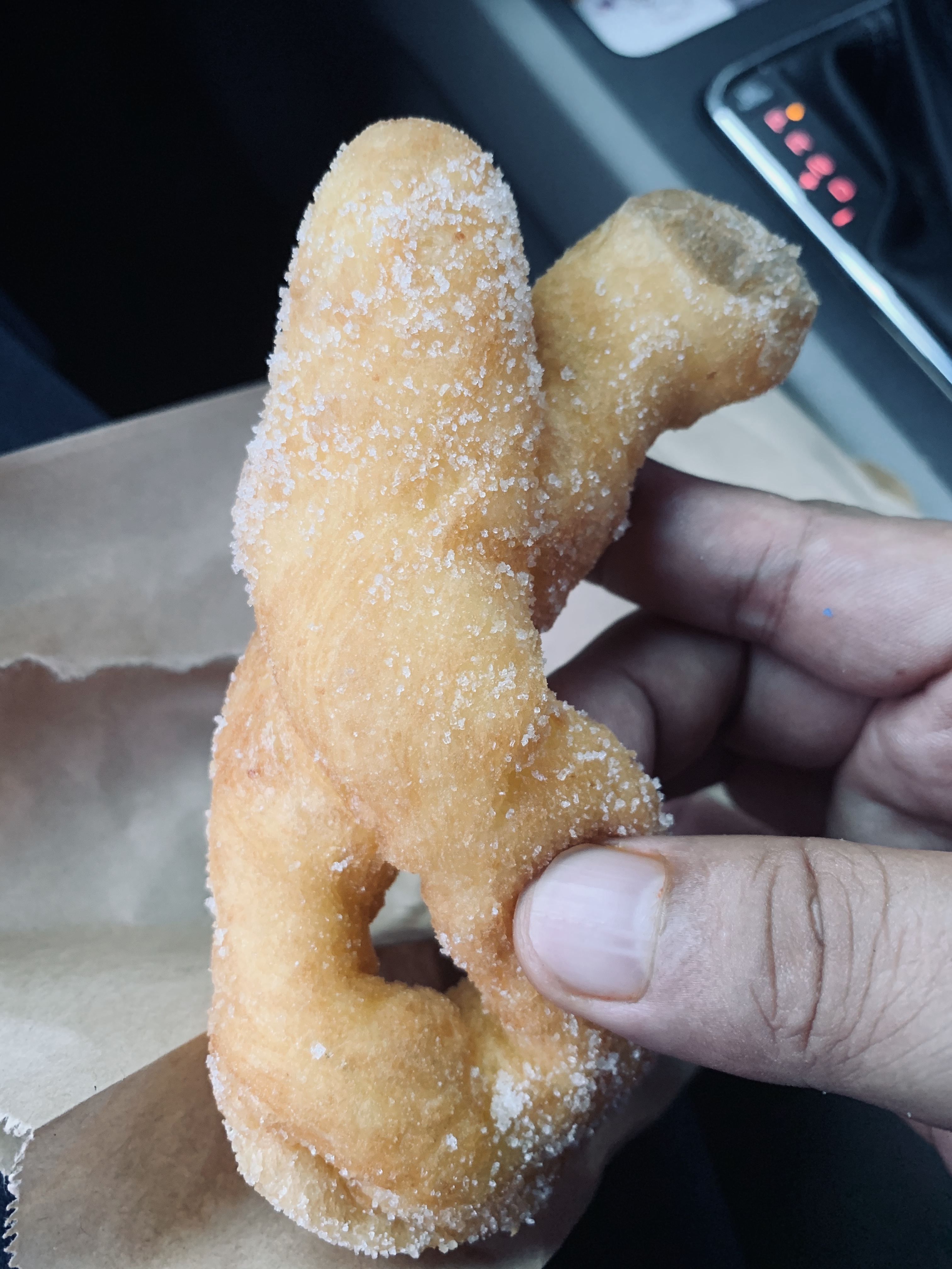 꽈배기와 팥 도넛을 주문하고 종이 포장지에 바로 포장해주셨네요. 꽈배기는 나온 조 좀 되어서 차갑고, 팥 도넛은 종이 포장지에 담겨 있어서 따뜻함이 느껴졌네요. 우선 꽈배기부터 맛을 보았네요. 좀 식어서 부드러움보다는 퍽퍽한? 밀가루 냄새가 날거라 생각했었는데.... 음료가 없이도 목 넘김이 좋더군요.