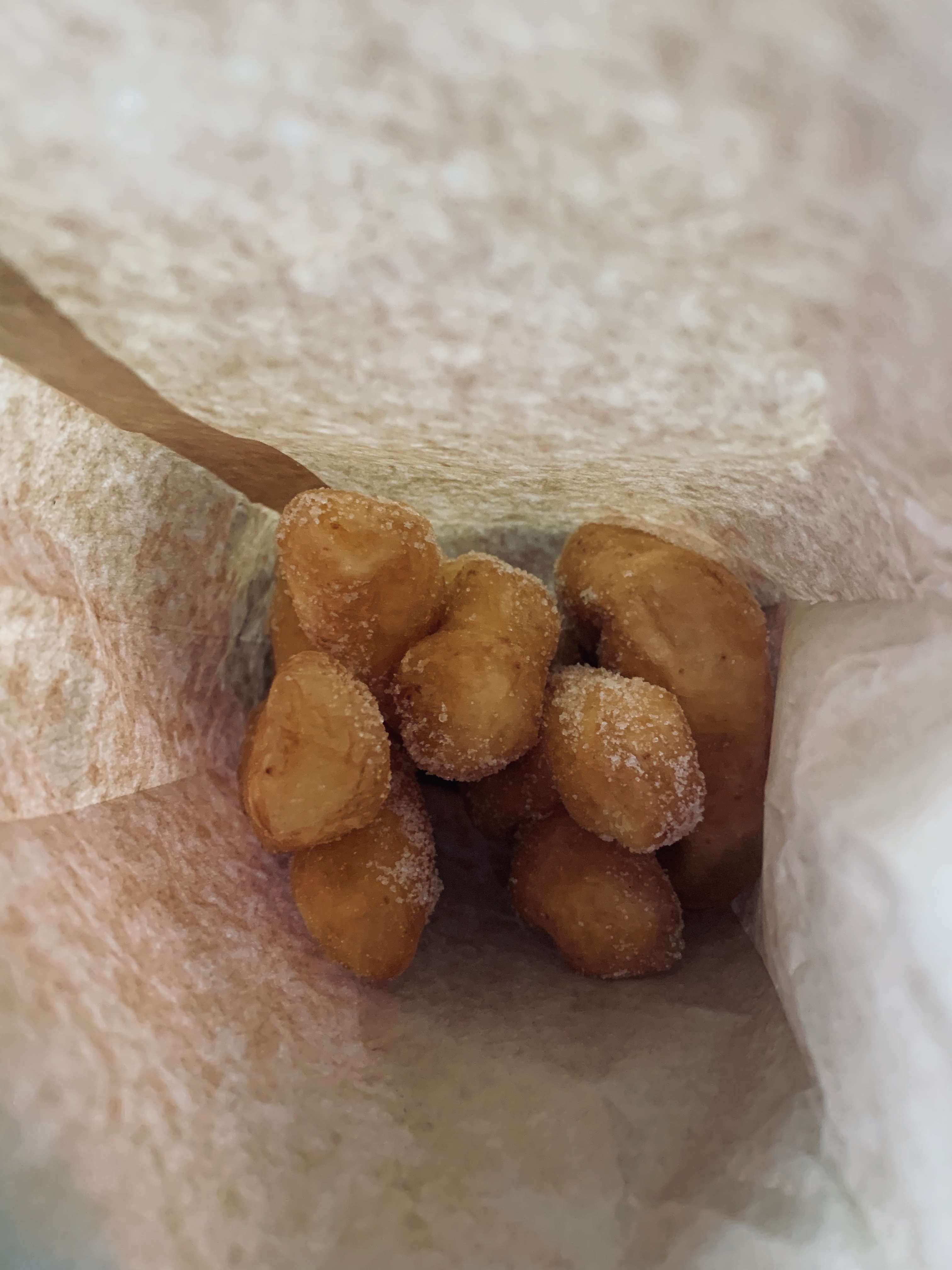 찹쌀 꽈배기는 1개 700원, 3개 2,000원을 3개를 주문했네요. 꽈배기를 주문하고 포장하는 사이 팥 도넛이 따끈따끈하게 나왔네요. 그래서 팥 도넛도 1개 추가 구매했네요. 주문하면 설탕을 묻혀주는지 물어보시고 포장해주시네요.