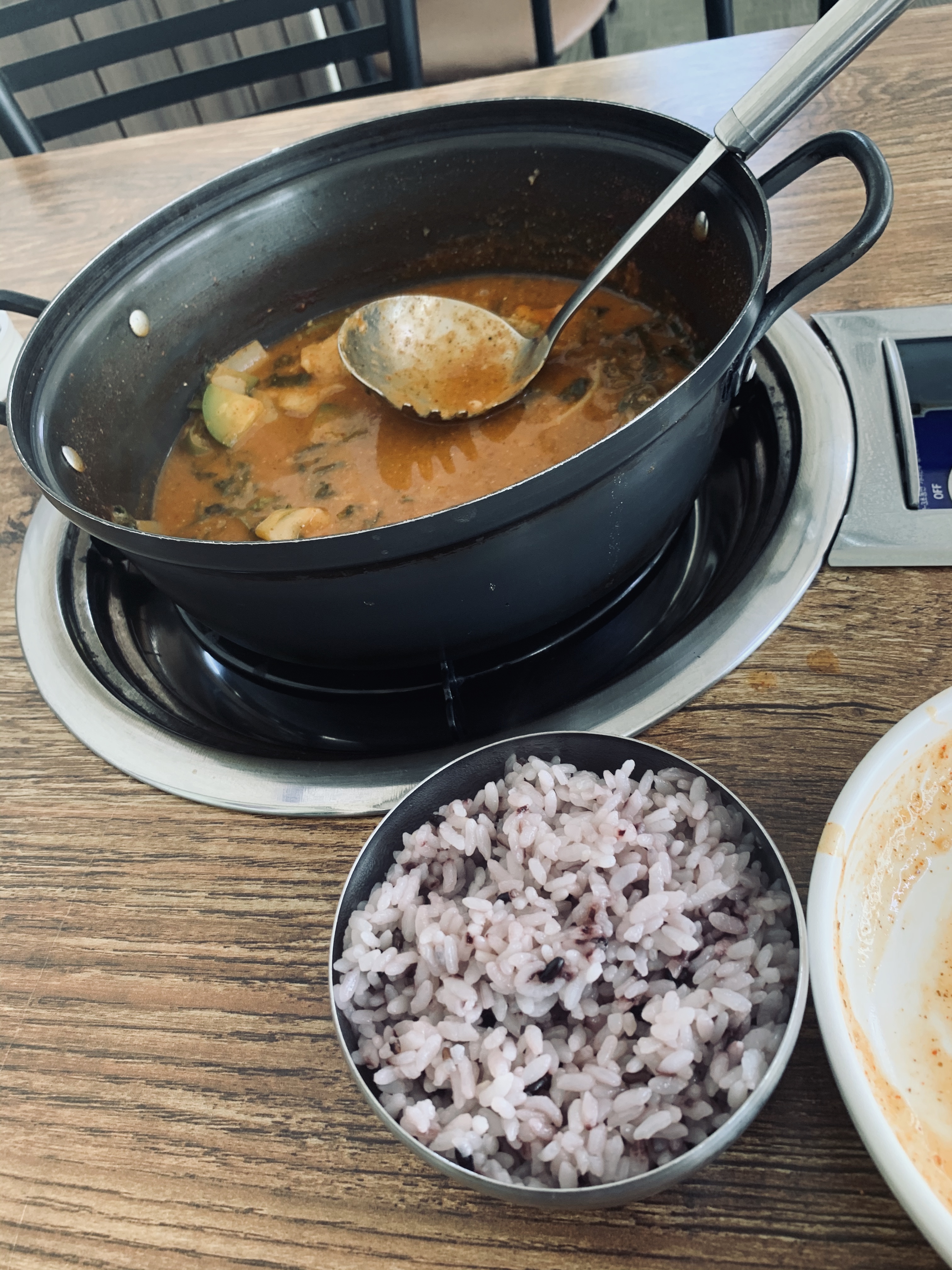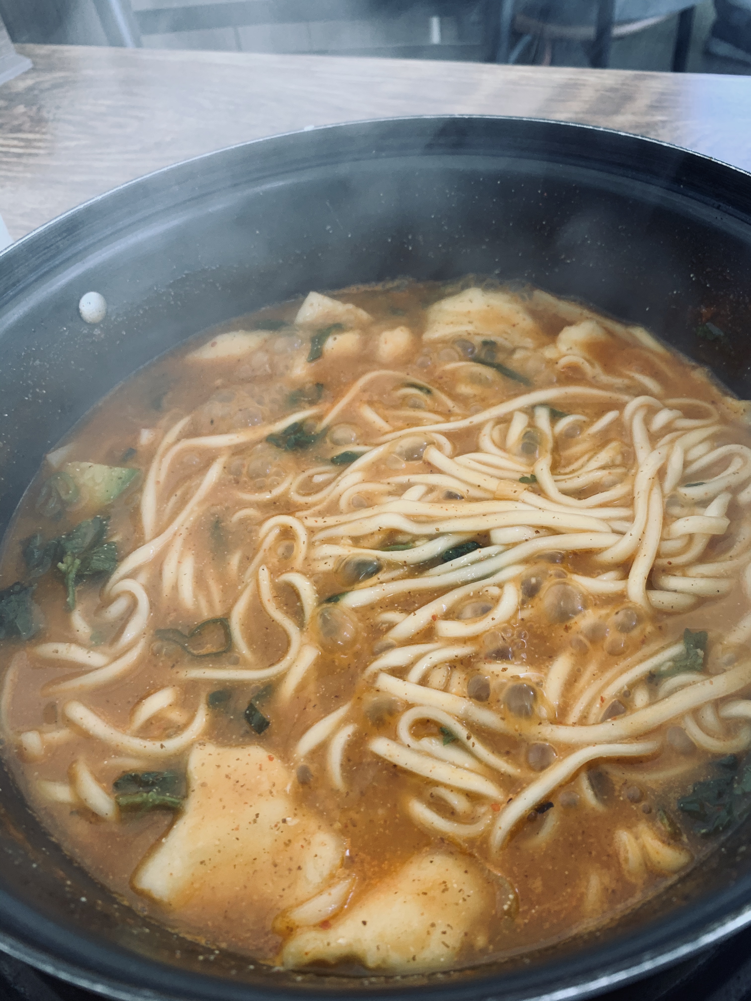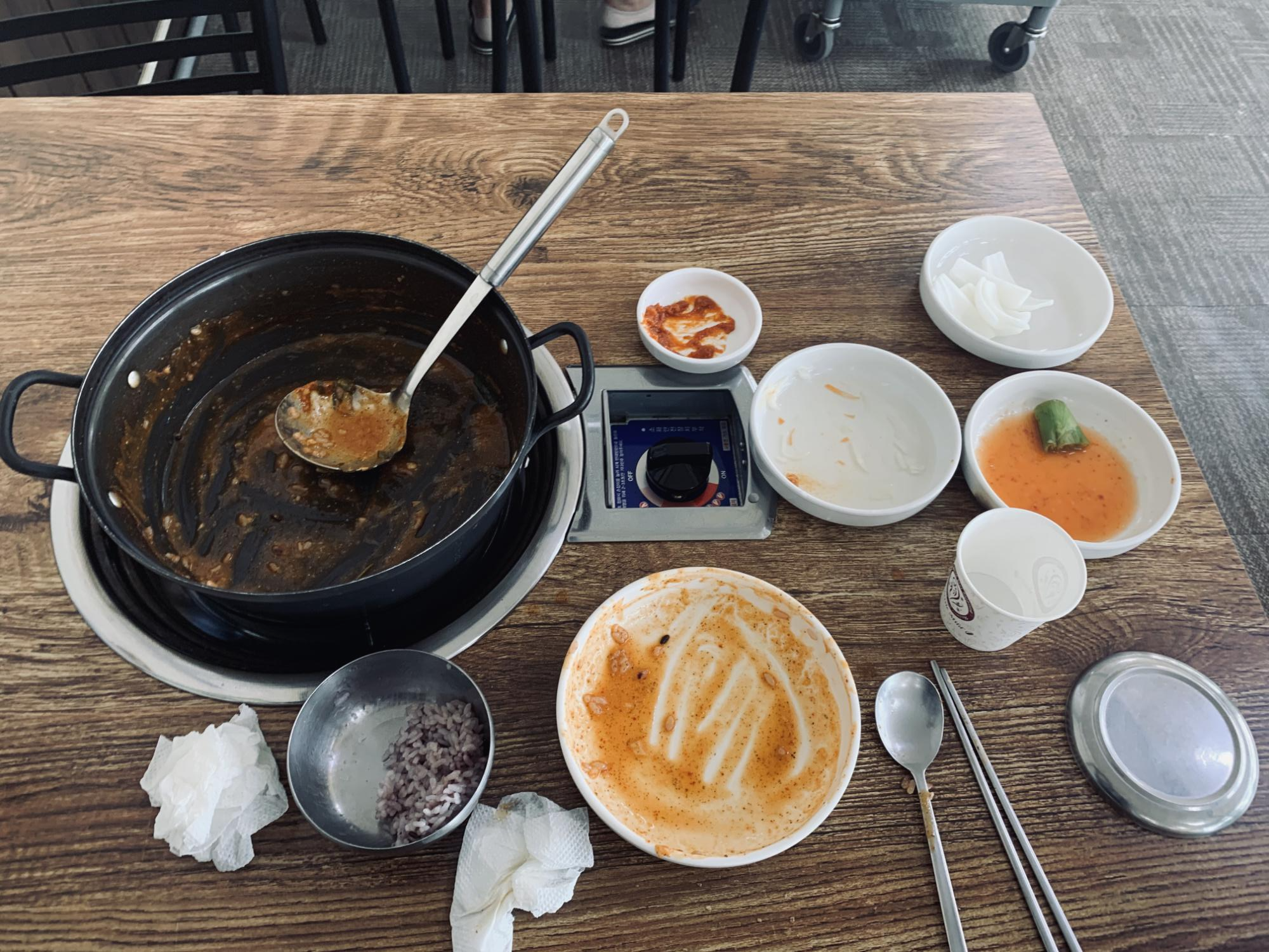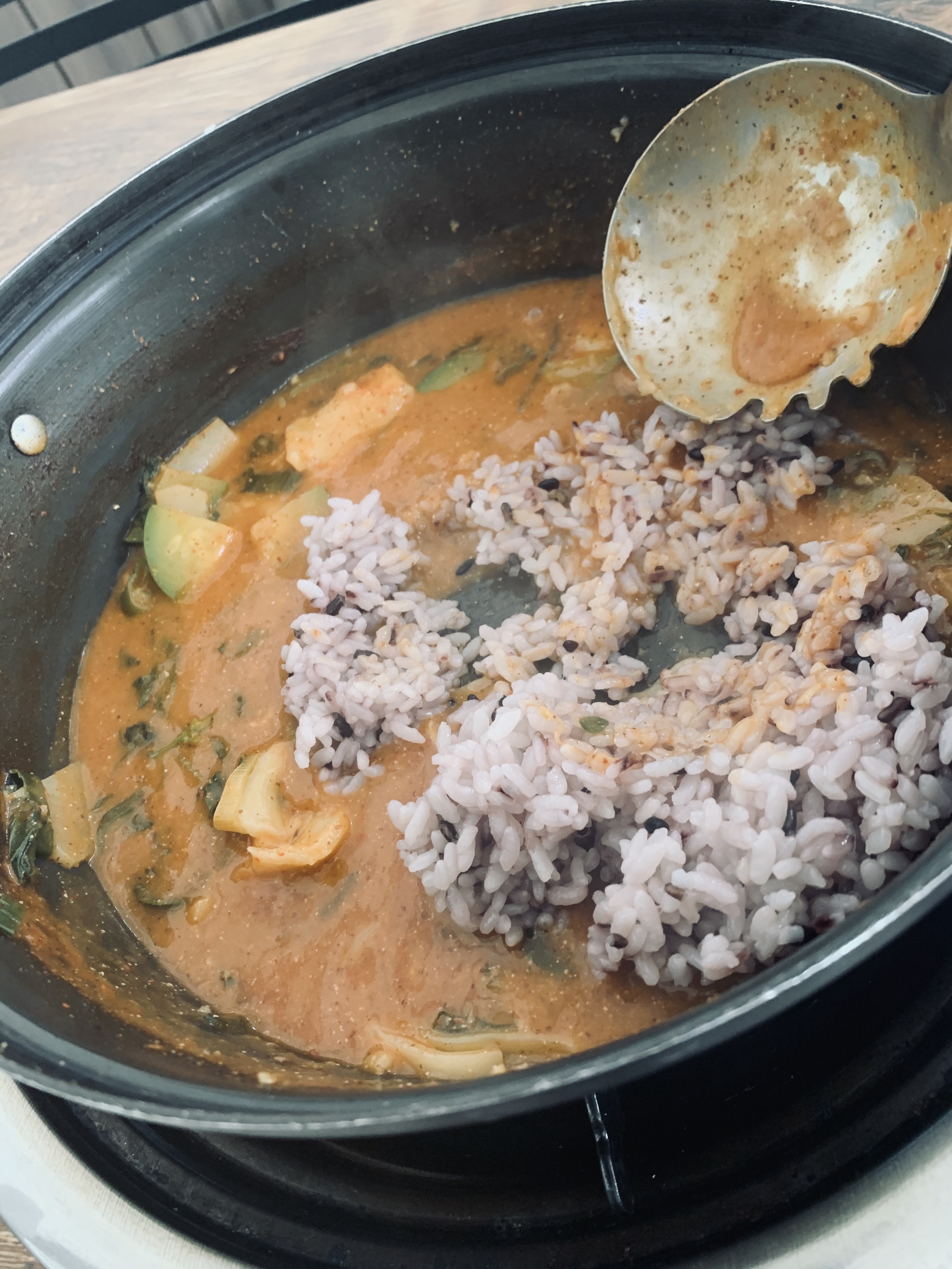 처음에 1인분 양이 많다고 느꼈는데, 어느새.... 국물밖에 안 남았네요.ㅎㅎ 그래서 공깃밥 추가해서 말아서 먹기 시작!! 밥과 함께 먹으니 죽 느낌이 나더군요. 밥을 넣고 끓여서 먹고 싶었으나.... 이미 국물이 졸아든 상태라^^ 그냥 말아서만 먹게 되었네요. 너무 많이 먹어버렸음.... 요즘 살이 점점 늘어나고 있는데, 큰일이네요.ㅠㅠ