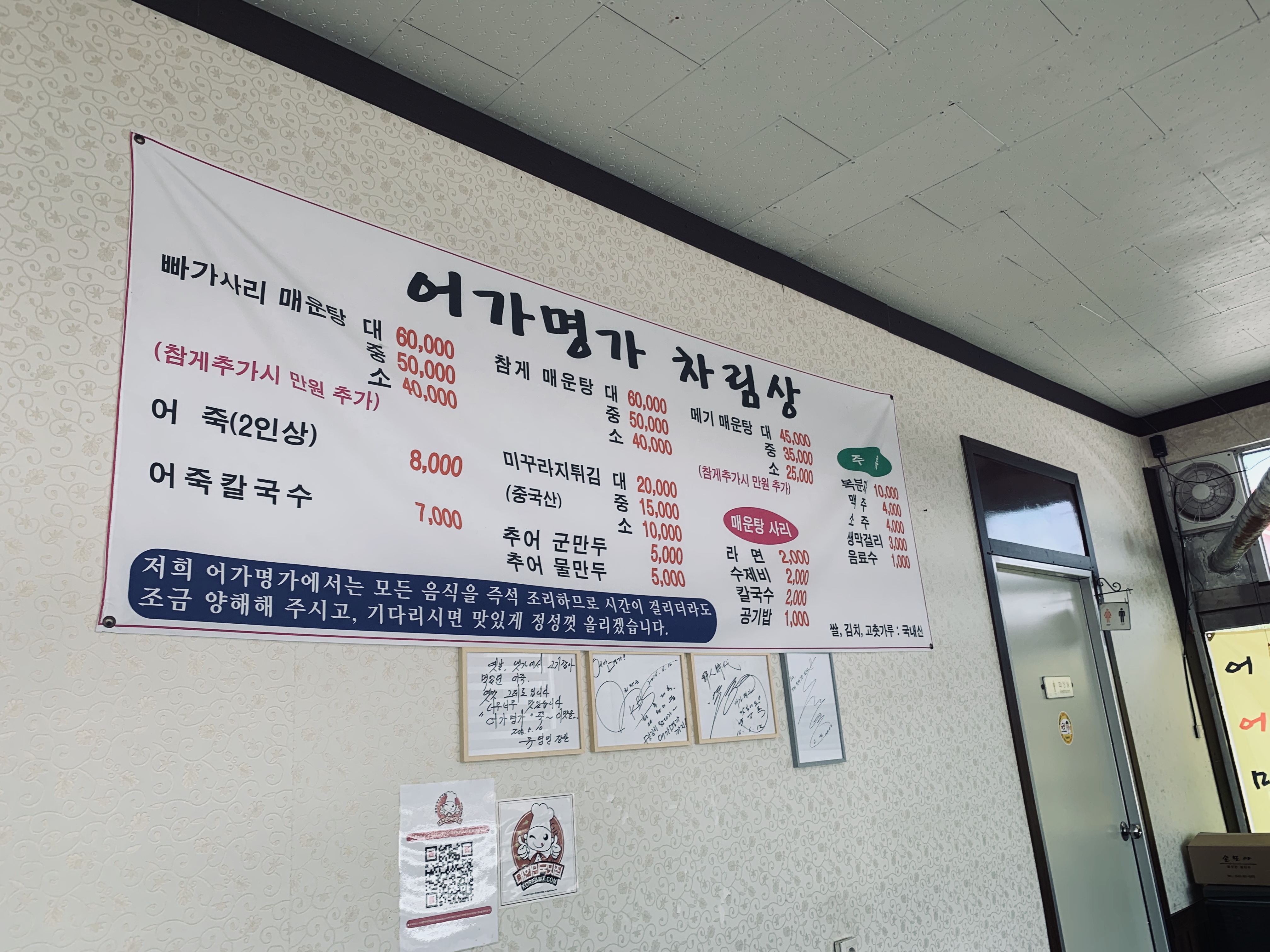 늦은 점심시간에 방문해서 그런지.... 다른 테이블에는 냄비만 덩그러니 놓여 있더군요. 대부분의 손님들이 매운탕을 주문하는 식당입니다. 예전에 방문할 때 참게 매운탕을 맛있게 먹었던 기억이 있어서.... 오늘은 매운탕이 아닌 어죽 칼국수를 먹으려고 방문했네요.