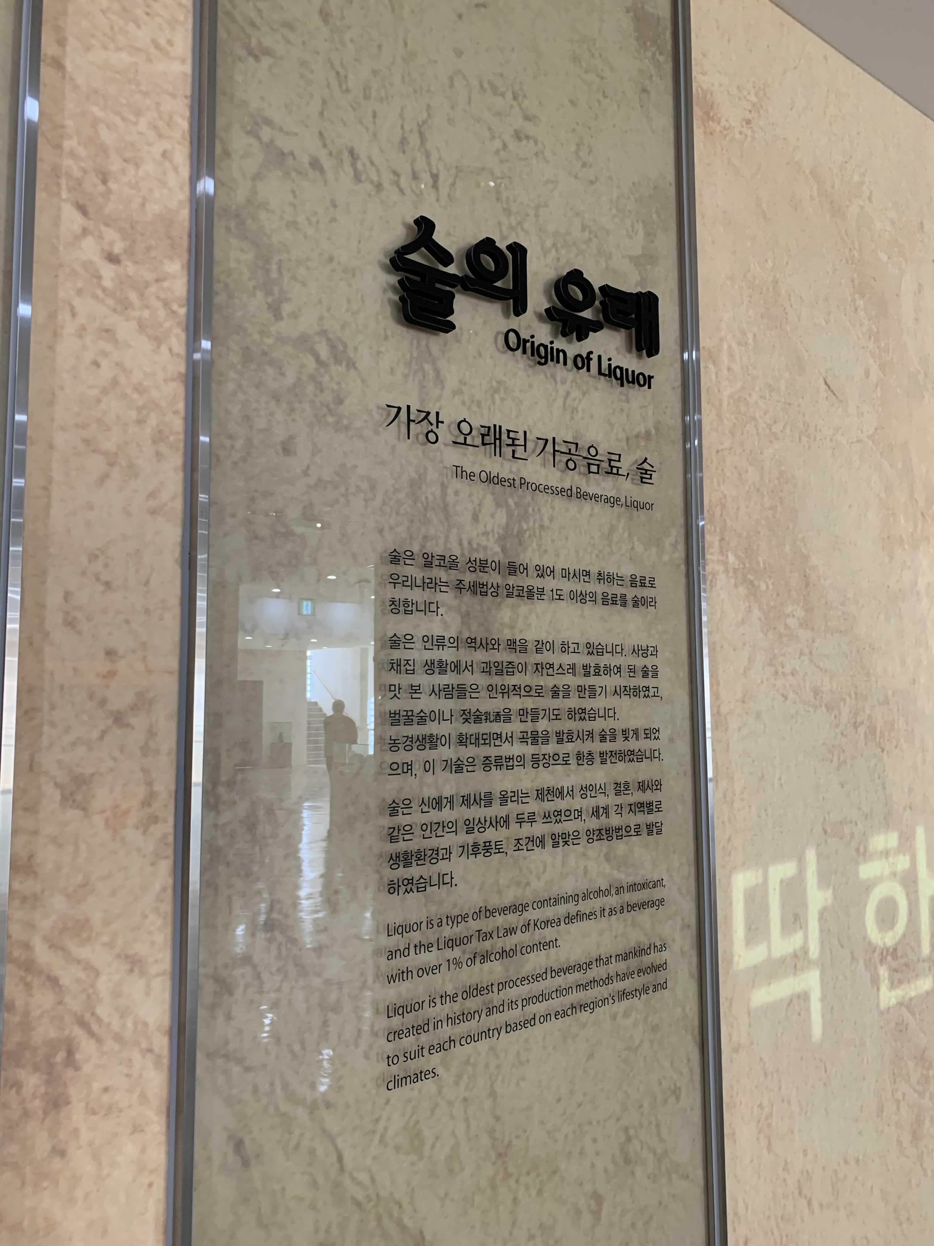 코로나 19 확산 방지를 위한 QR코드 전자출입 명부를 등록하고, 입장료를 납부 후 입장하였습니다. 입장 후 체험관에서 무슨 체험이 가능한지 물어보고 체험하려고 하였으나... 코로나 19로 인해 체험관 운영은 하지 않더군요. 술 만드는 체험이 있다고 하는데.... 박물관은 체험이 없다면.... 박물관으로써 딱히 구경할 게 없는데;;;