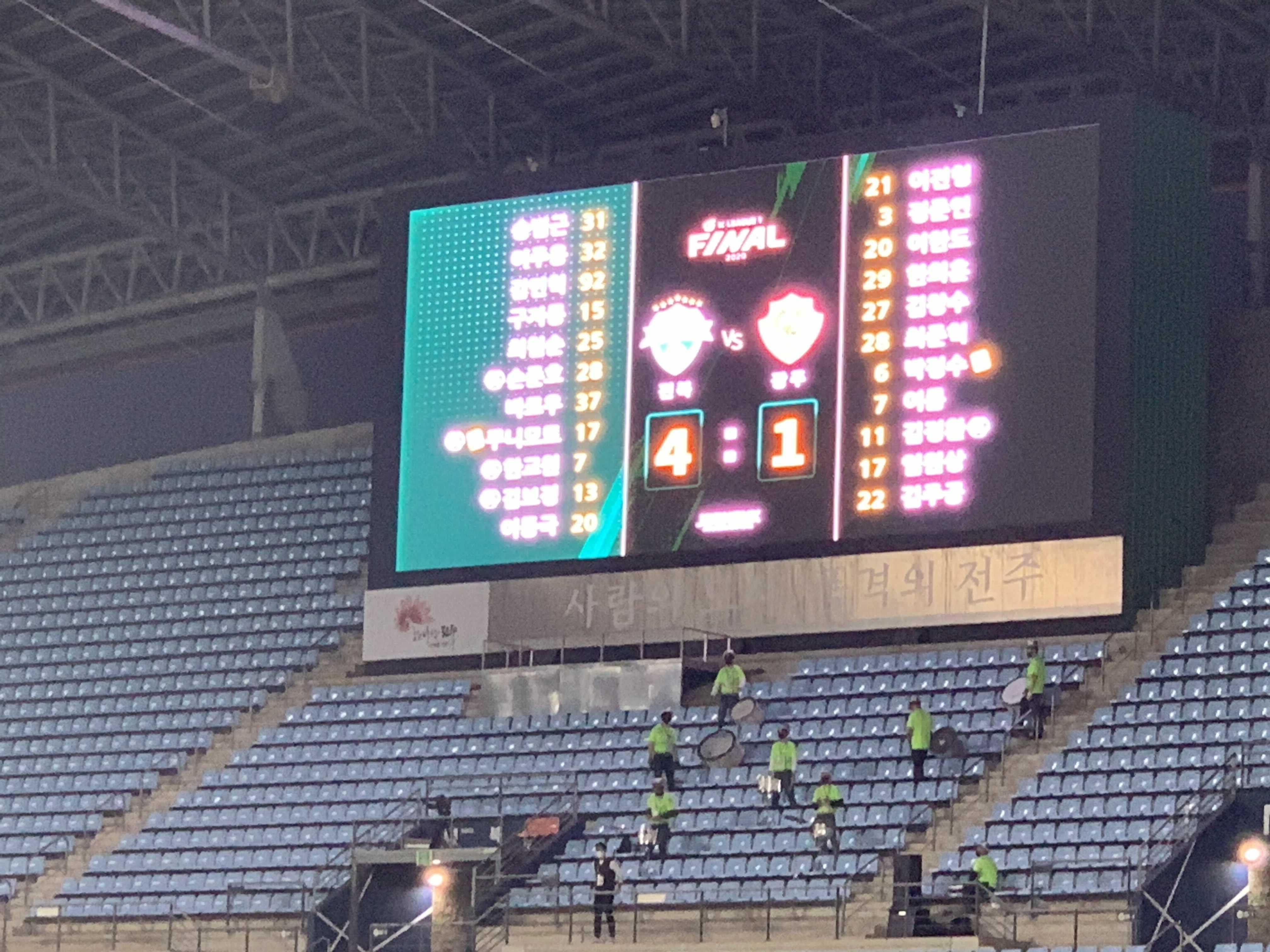 최종 스코어 4대 1로 전북 현대의 압승으로 경기는 마무리되었습니다. 광주 FC의 주전급? 선수들이 빠진 상태에서 경기가 진행되어서.... 전북 현대의 압도적인 경기 결과 나왔는지는 모르겠지만, 이번 경기의 전북 현대 선수들 모두 눈에 잘 띄도록 경기력을 보여주었습니다.