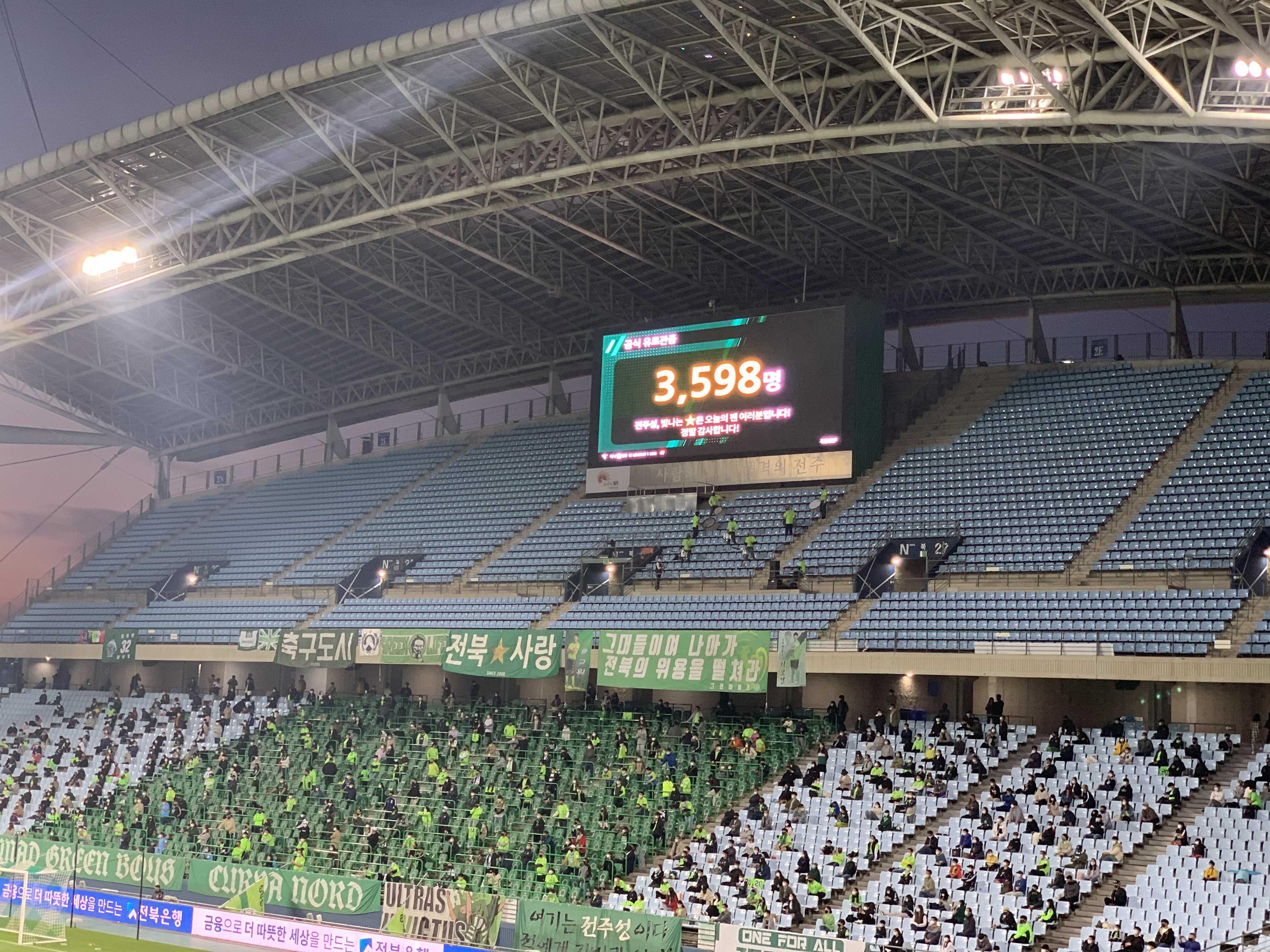 직관 후기를 직관 후 바로 남기려 했으나.... 이제야 글을 남깁니다. 이 경기의 직관 경기 일 때 우승은 어렵겠다 생각했었는데.... 울산 현대가 포승 스틸러스에 패하고, 얼마 전 전북 현대가 울산 현대를 1대 0으로 승리하며... 우승에 한발? 가까워졌습니다. 이제 마지막 경기인 대구 FC만 이기면 우승이네요. 대구도 만만한 상대가 아니라..... 이제 마지막 경기 대구 FC의 직관만 남아있네요. 아! 울산 현대의 FA컵 결승도 있지.ㅎㅎ