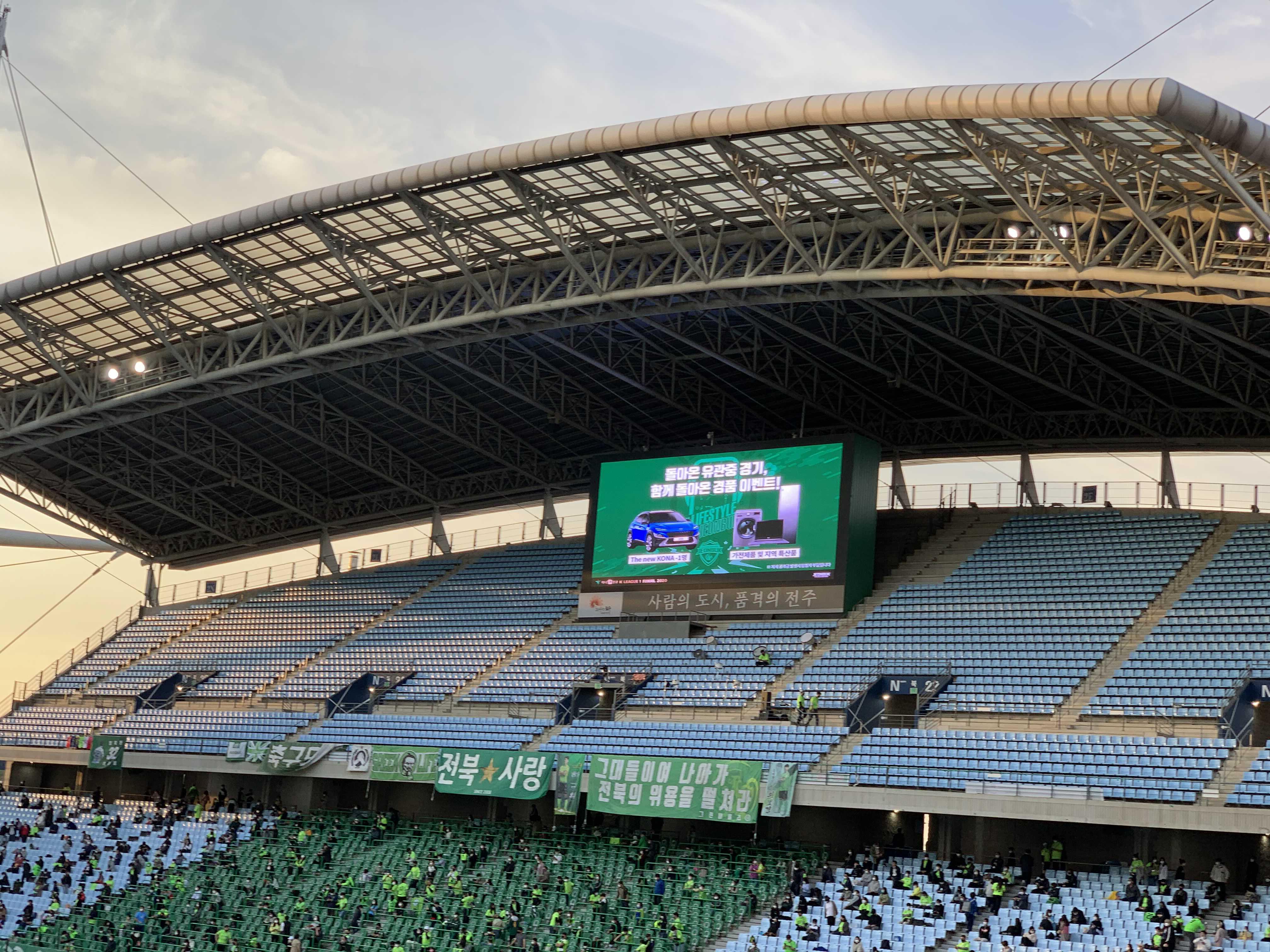 K리그 25라운드 전북 현대와 광주 FC 축구 직관 후기입니다. 코로나 19로 인해 올해는 시즌권을 한 번도 사용하지 못한 채, 시즌권으로 사전 예매만 진행하게 되었네요. 오랜만에 직관, 우승을 위해 반드시 승리해야 하는 경기를 보기 위해 경기장을 찾아가 보았습니다.