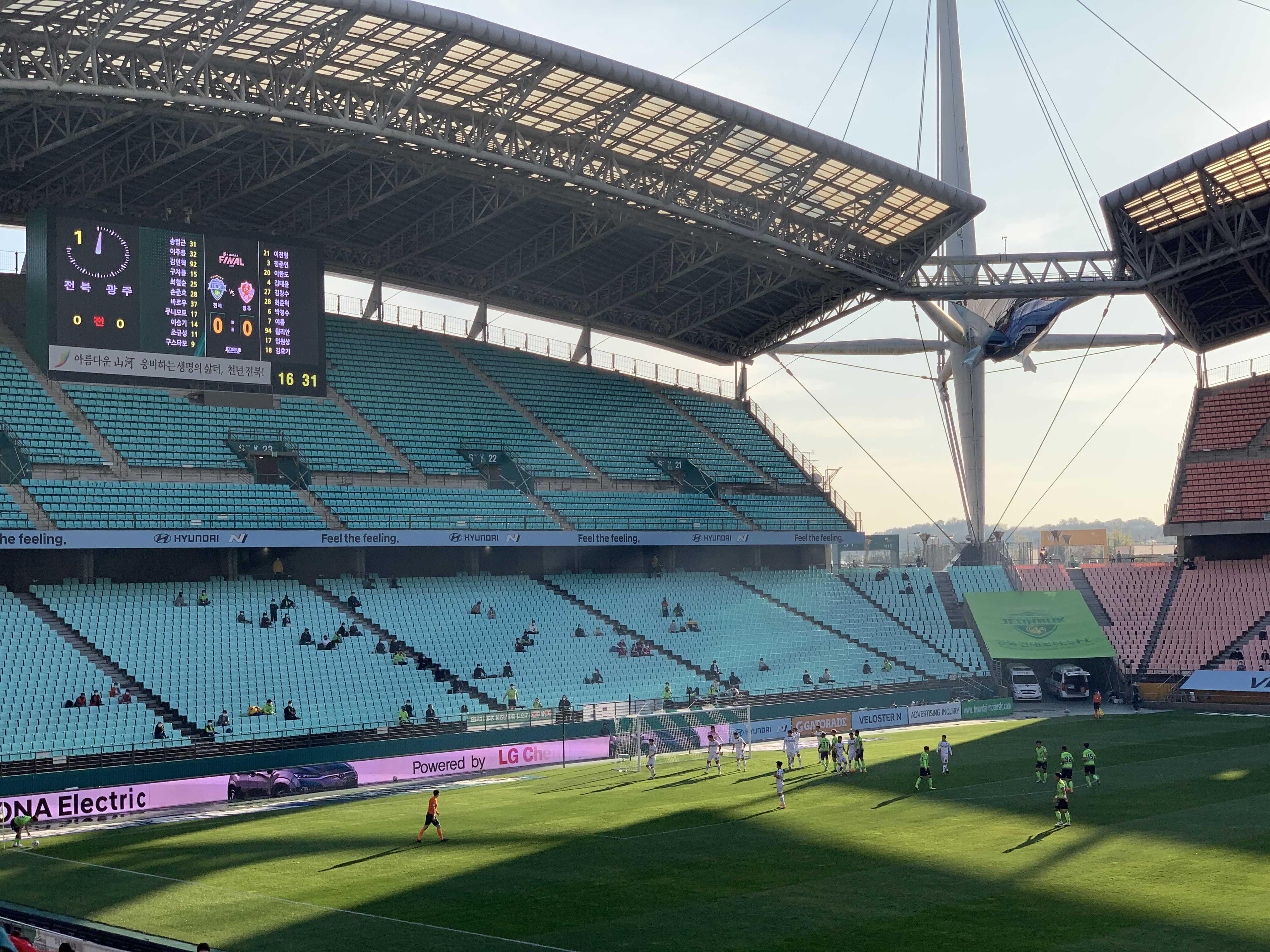 전반전 총평! 전북 현대가 밀어붙인다! 광주 밀린다! 일방적인 경기를 펼쳤던 전북 현대, 결과물로 2골(손준호 선수, 쿠니모토 선수) 후반전에 몇 골의 추가골이 나오는 경기였다. 그리고, 차량 추첨에서 내가 당첨되었으면 좋겠다?라고 생각하고 전반전을 보았다!ㅎㅎ