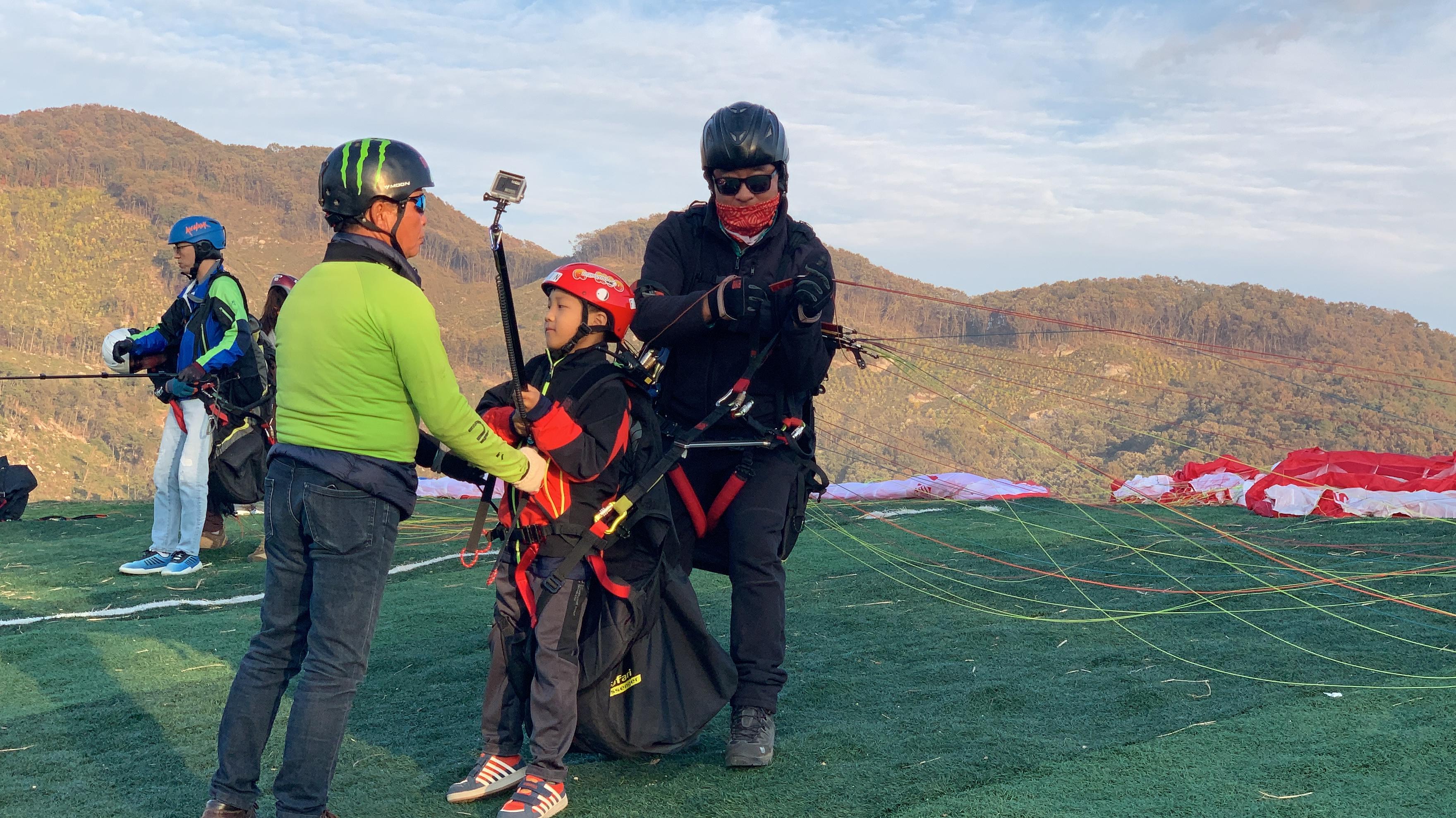 패러글라이딩 체험 장비가 도착하고 아이는 곧바로 체험 장비를 착용하고 패러글라이딩 체험을 시작했습니다. 아이가 무척이나 하고 싶었던 체험이라 그런지.... 체험하는 내내 웃음이 떠나지 않더군요. 사실 내가 체험하고 싶었으나, 아이 사진과 동영상을 찍어주어야 하기에 체험을 못했네요.