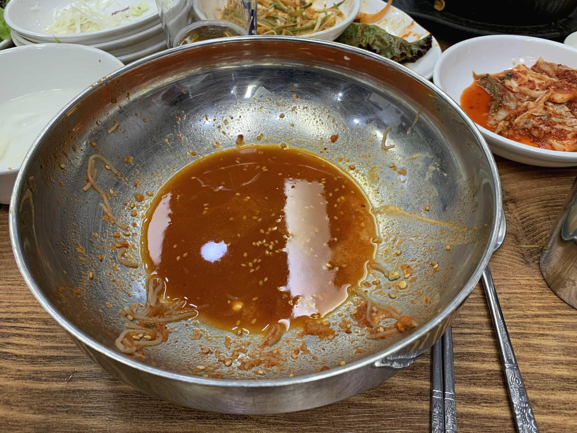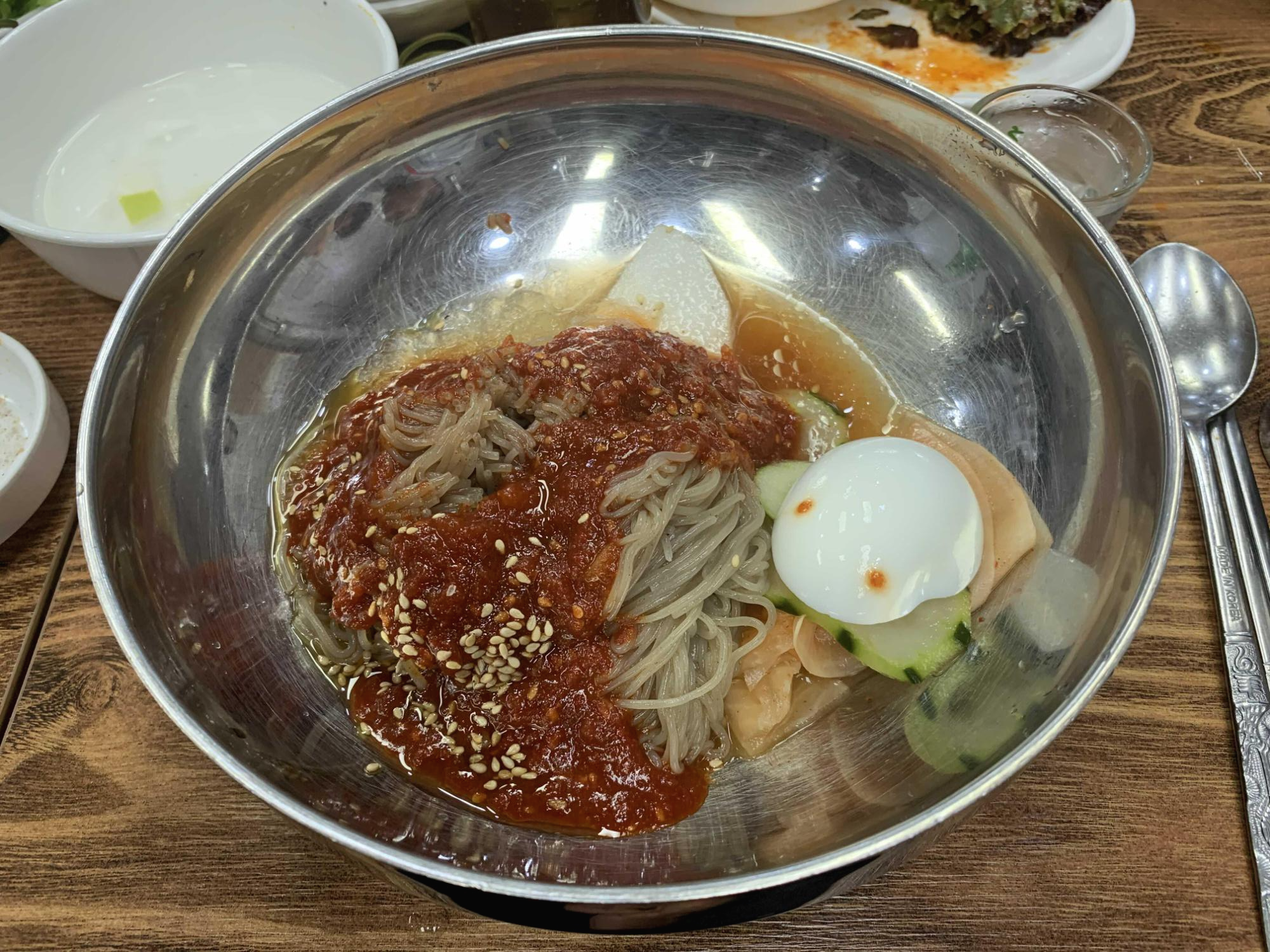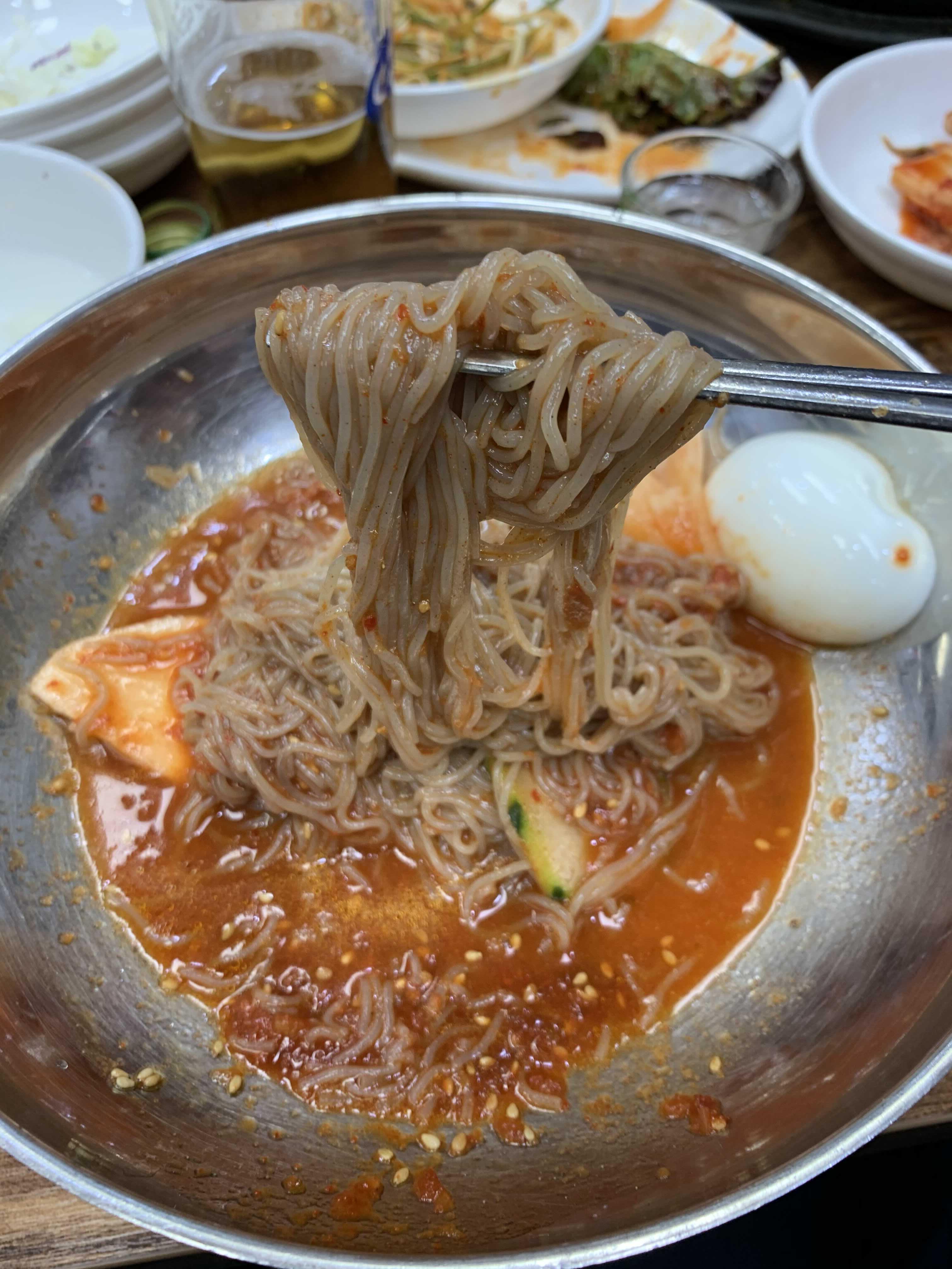 고기를 맛있게 먹고서 후식을 주문하는데... 후식 메뉴가 없더군요. 공깃밥을 주문하면 된장찌개가 딸려 나오는 줄 알았는데.... 아니더군요.ㅎㅎ 후식은 식사메뉴를 주문하여 비빔냉면 7,000원 주문했습니다. 왠지 고깃집 냉면이 아니라 냉면집에서 냉면을 주문한 느낌이랄까? 고기 먹고 가볍게 후식 메뉴가 구성되었으면 좋겠다는 생각이 들더군요.