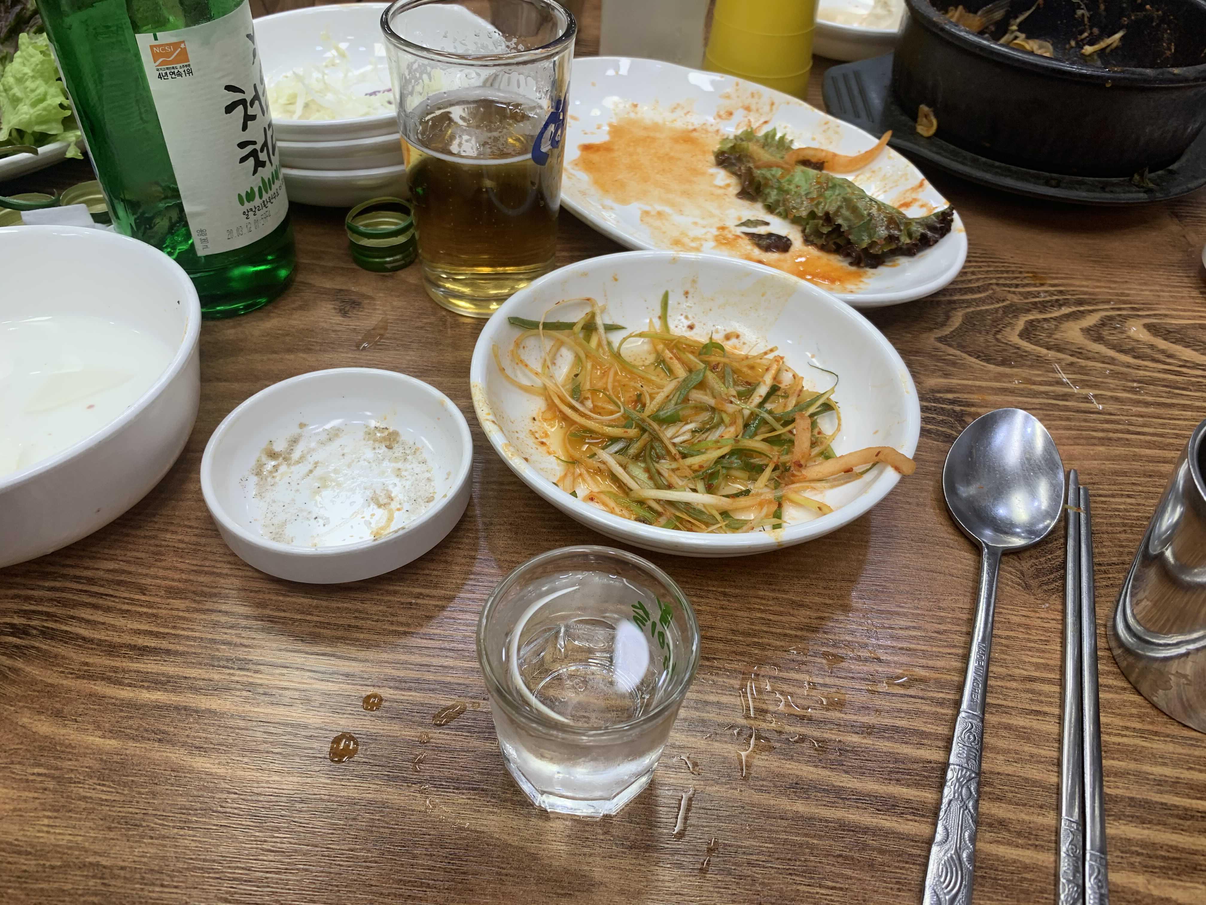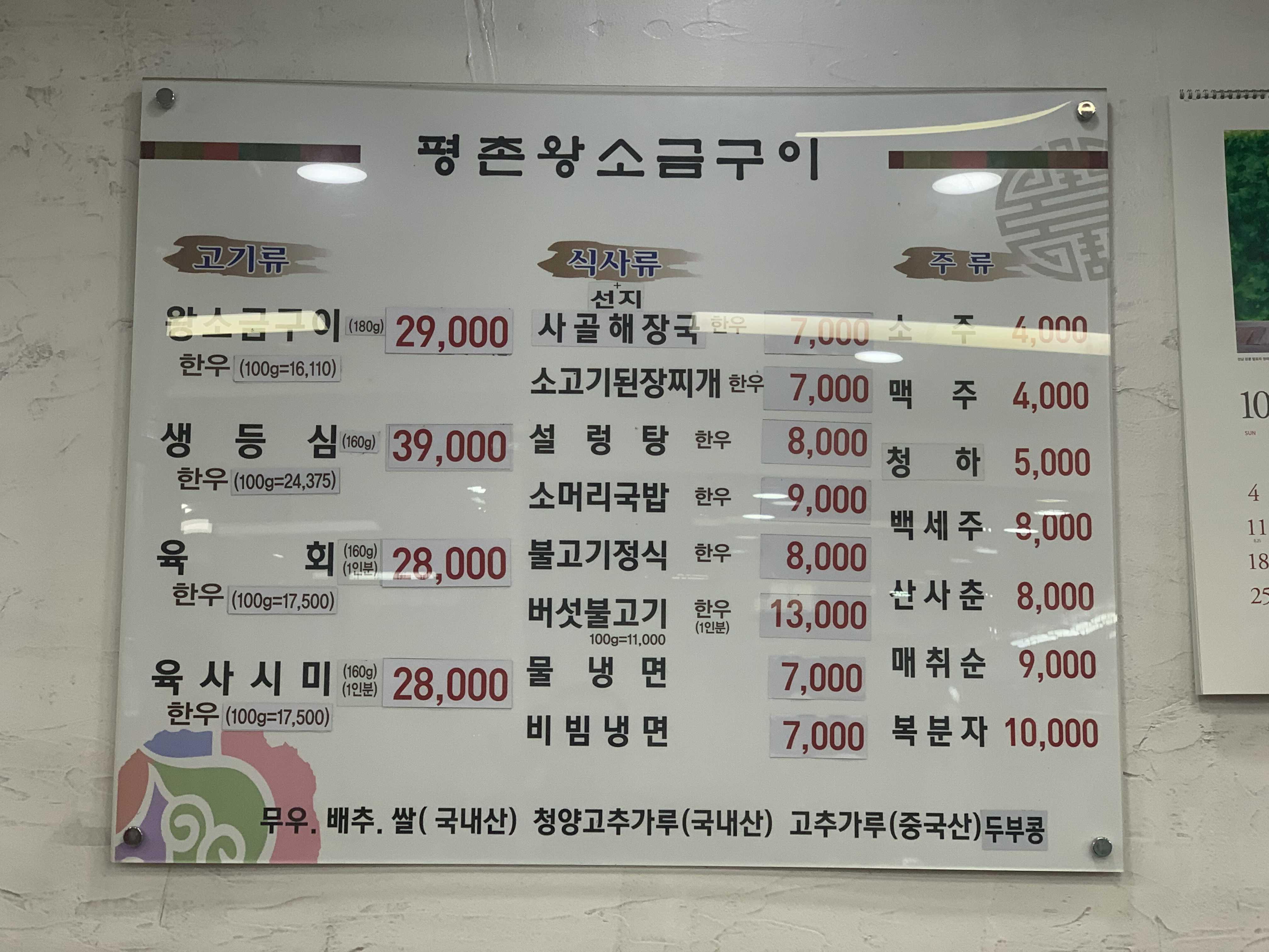 대표 메뉴로 왕소금구이를 전문으로 하는 고깃집으로 1인분 180g 왕소금구이는 29,000원으로 한우라 비싸네요. 소고기는 대체로 비싼 집이 많아서 그런지 비싸다는 느낌도 있지만, 다른 식당에 비해서 저렴하다는 느낌도 드는 식당입니다. 주문은 왕소금구이 3인분으로 주문하고, 기본 상차림으로 밑반찬들이 나옵니다. 배추김치, 무생채, 쌈 재료 들은 고기와 함께 먹기 좋게 구성되어 있었고, 특히 기본으로 나오는 동치미와 선짓국의 국물!!! 술과 함께 먹으니 더 빛을 바라더군요.
