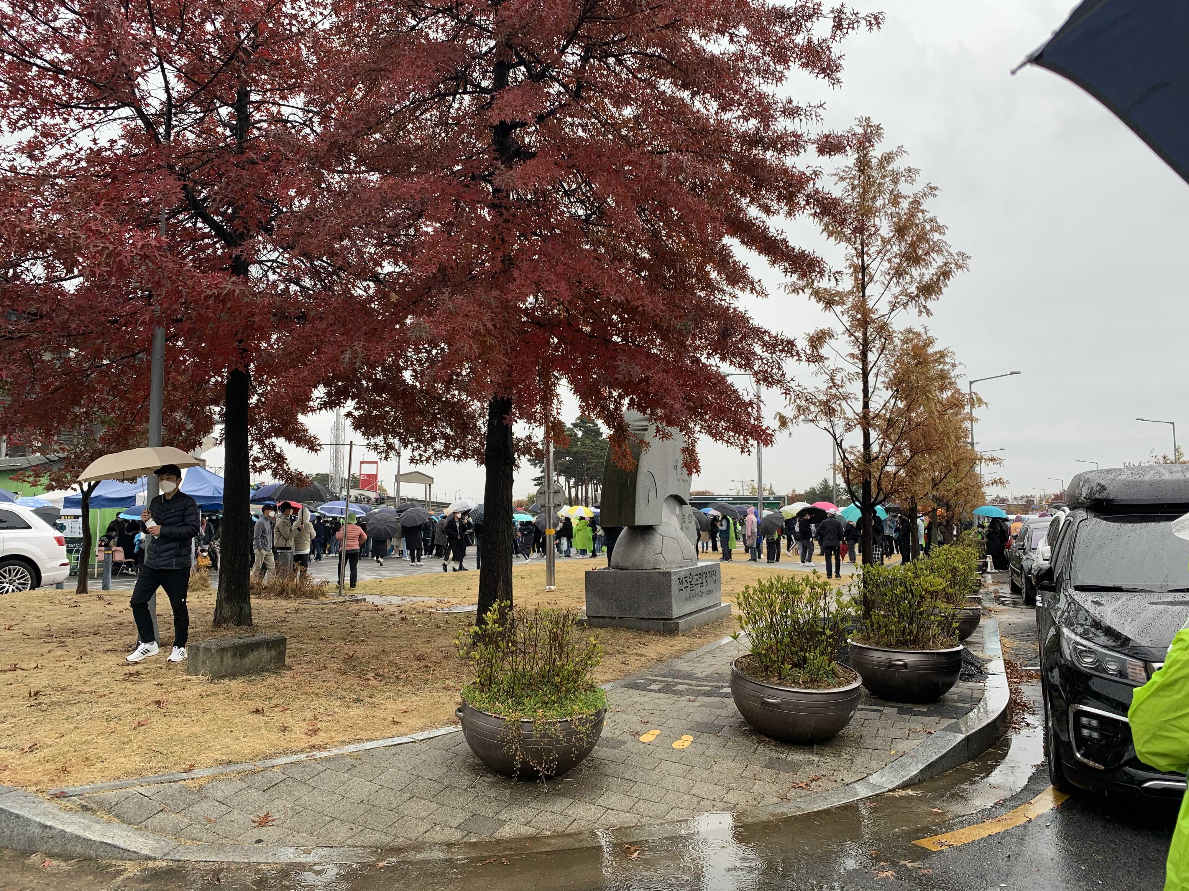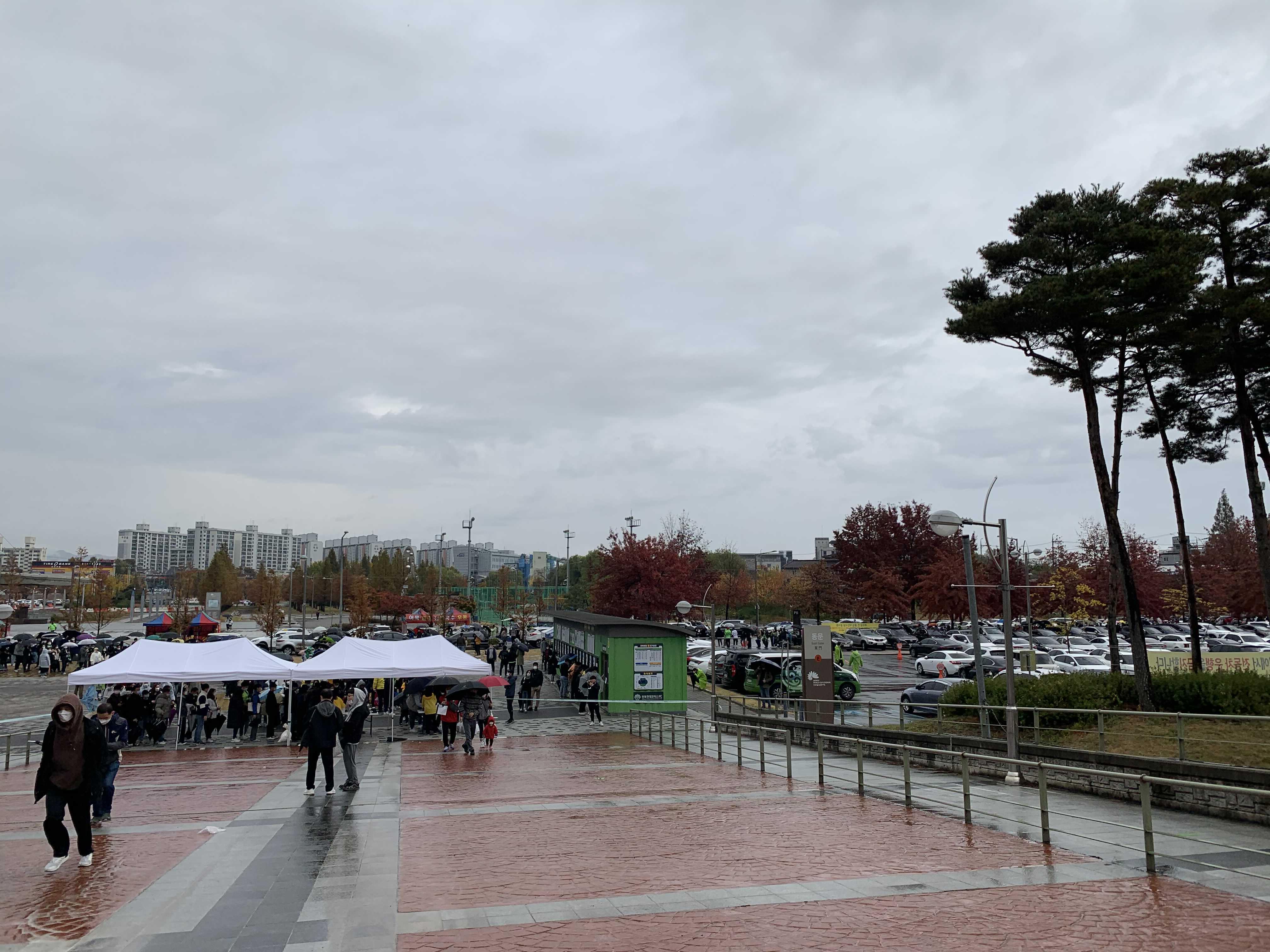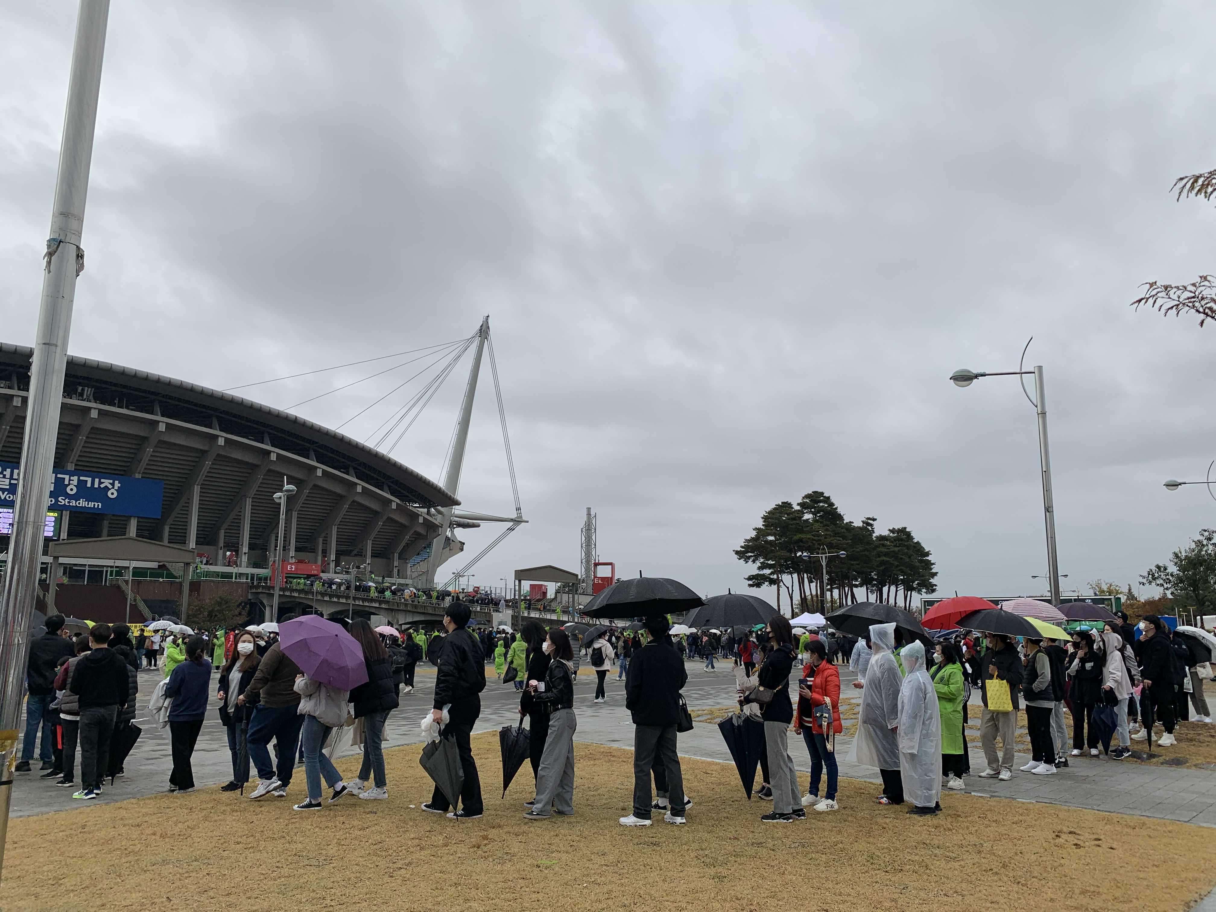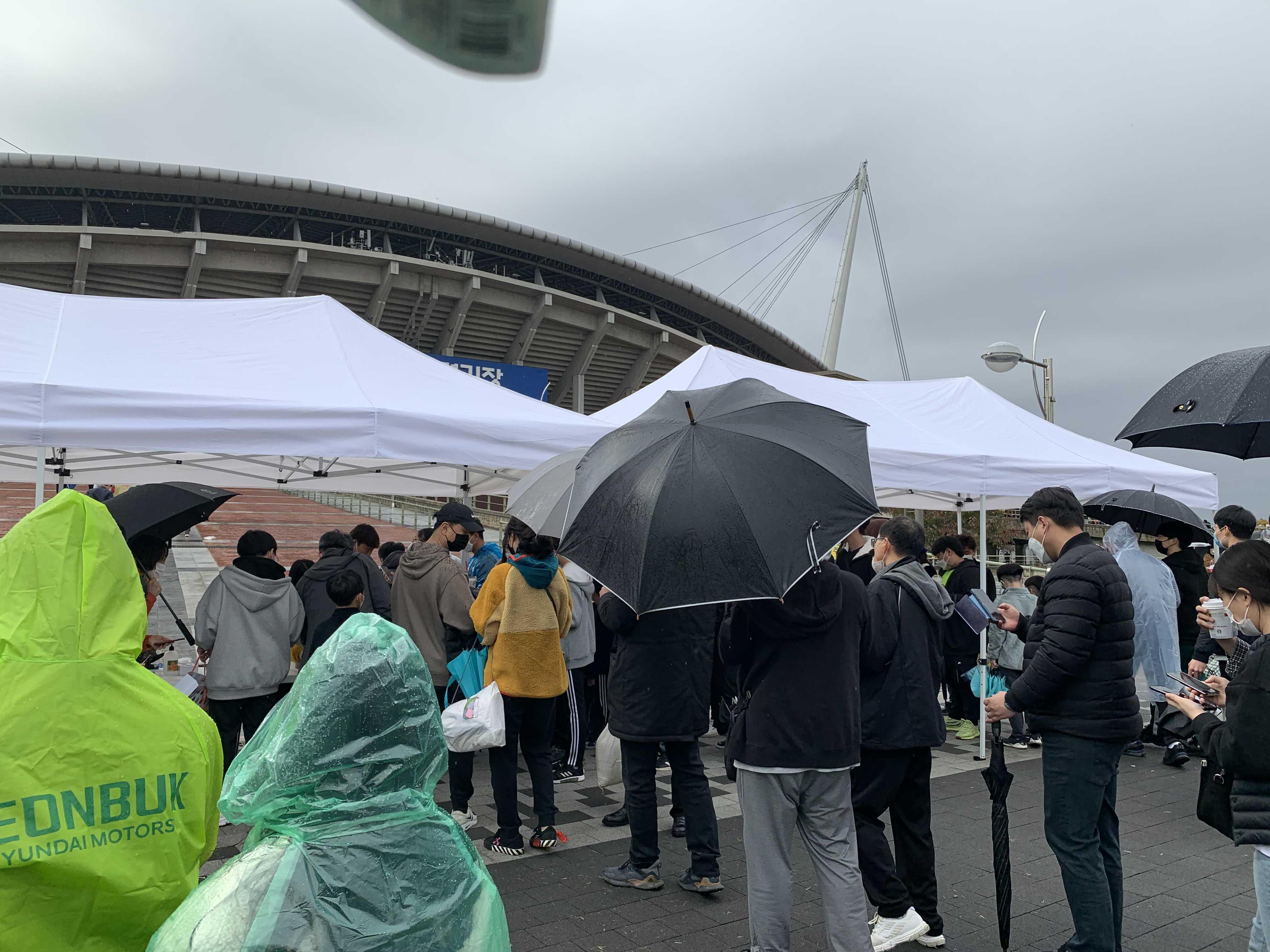 최종 라운드 경기는 오후 3시에 진행되었고, 경기장에 일찍 도착하여 선수들 몸 푸는 모습을 지켜보기 위해 평소보다 약간 일찍(2시 20분) 도착했습니다. 코로나 19로 인해 많은 사람들이 대기하고 있더군요. 발열체크와 QR체크인으로 인해 입장이 다소 지연되더군요.