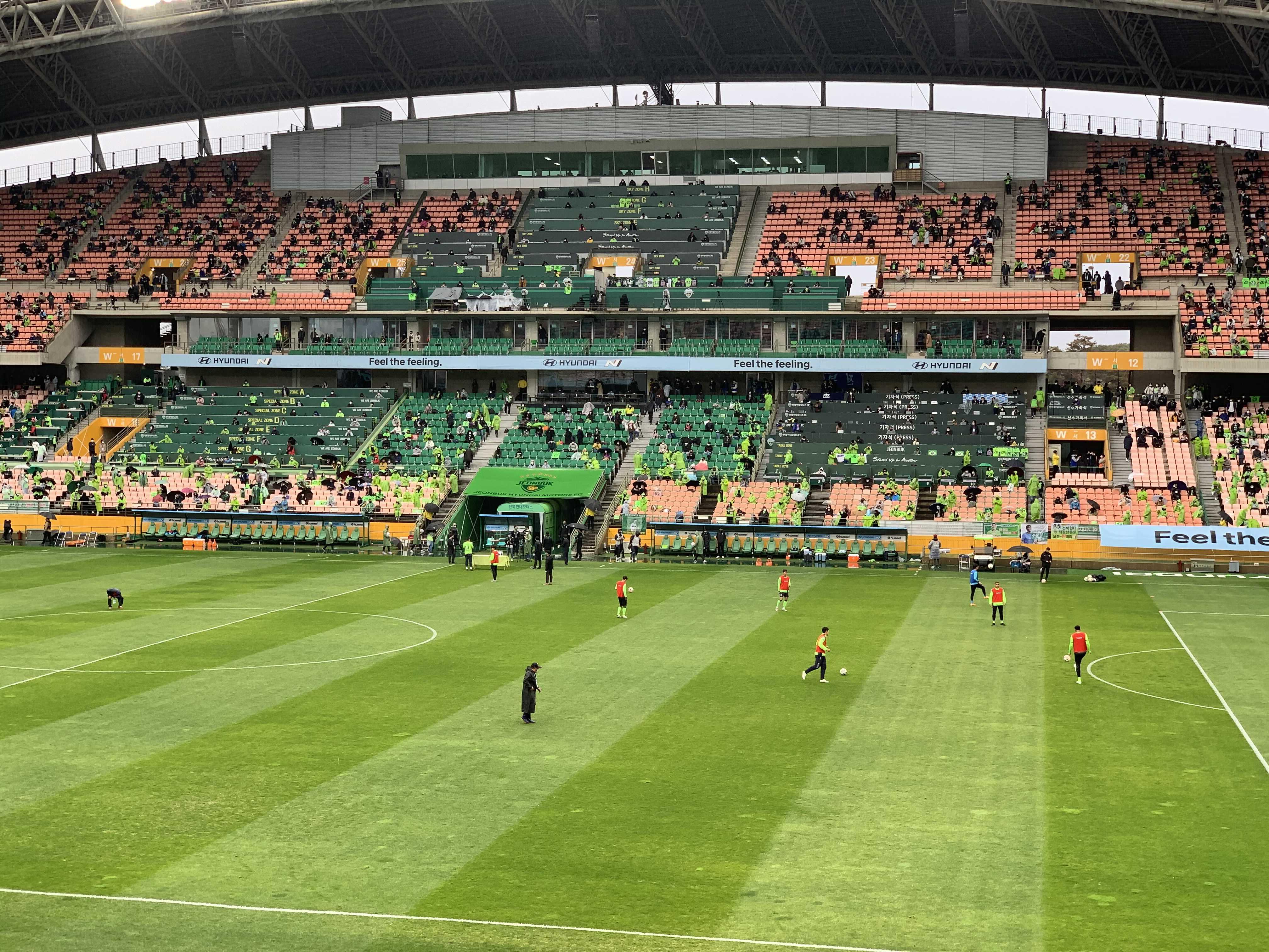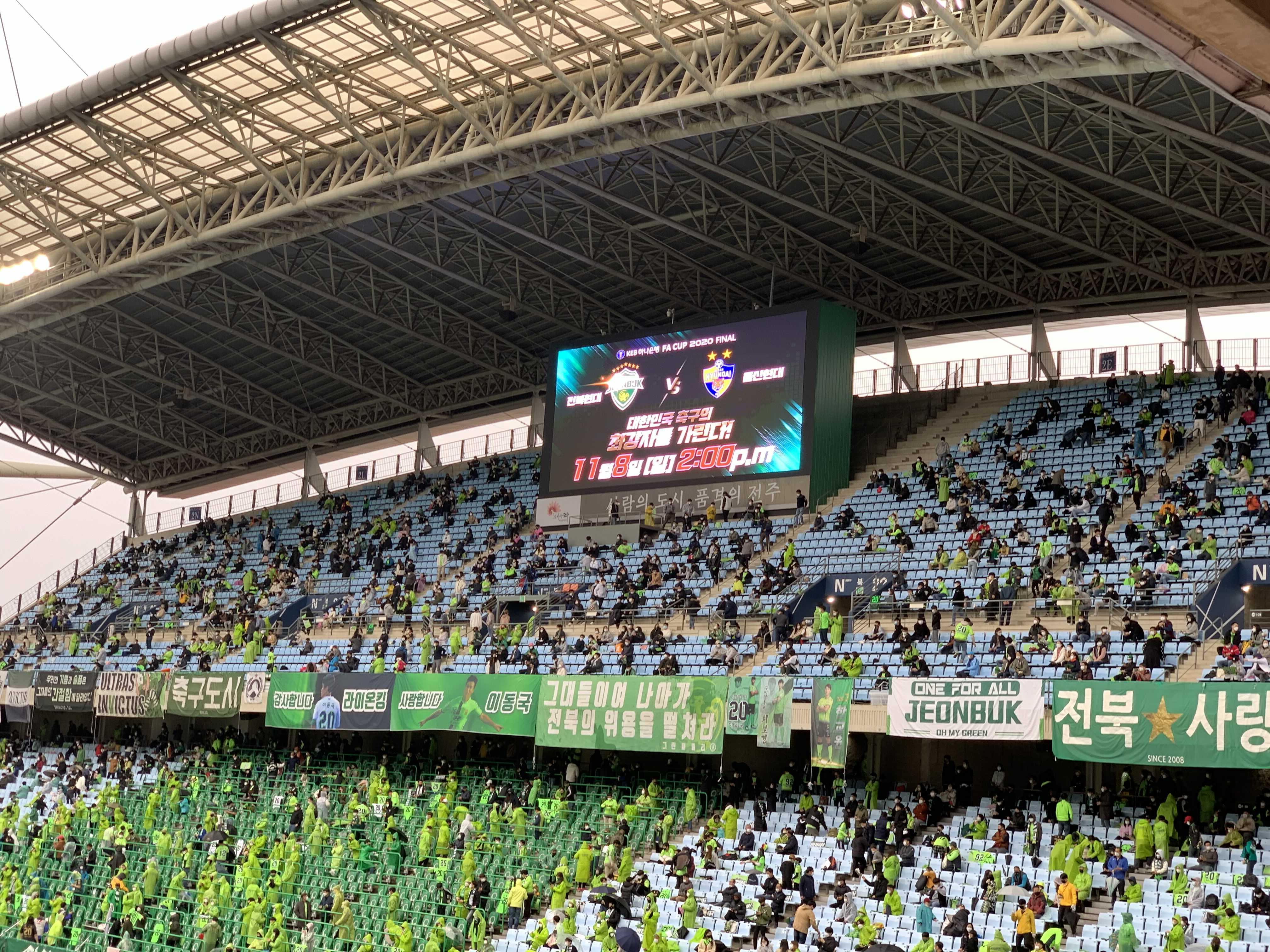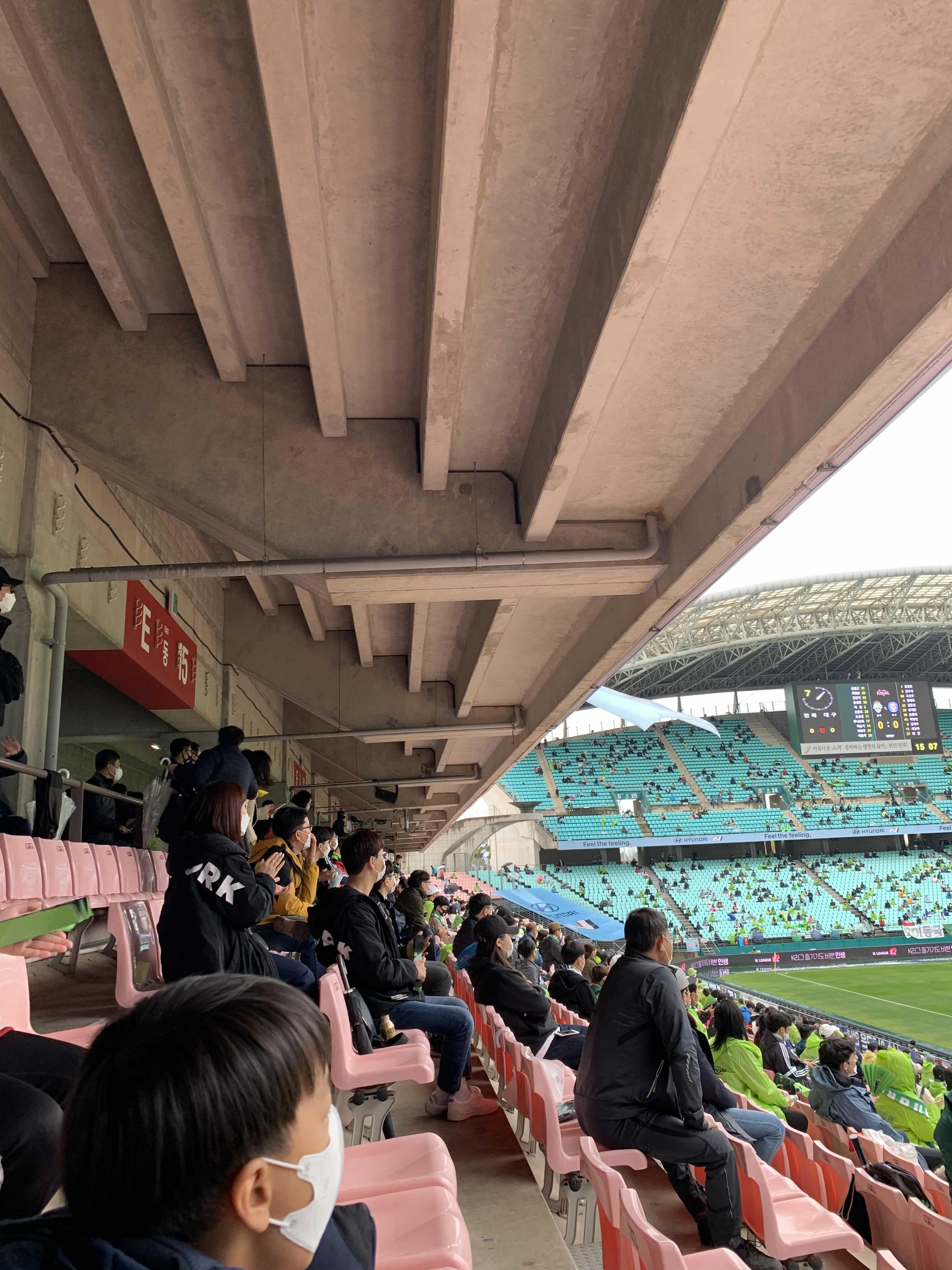약 45분을 대기하여 드디어 경기장에 입장할 수 있었습니다. 발열체크에서 너무 많은 시간이 소요되더군요. 발열체크를 사람이 직접 하니... 시간이 많이 소요될 수밖에.... 내가 입장할 때, 아직 입장하지 못한 사람들이 죽~~~ 줄 서있더군요. FA컵 결승전은, 얼굴인식 자동 발열체크를 설치해서 빠른 입장할 수 있도록 했으면 좋겠더군요.ㅎㅎ FA컵은 더 많은 관중 입장으로 기존처럼 발열 체크했다가 전반전 끝나고 입장할 수도;;;;