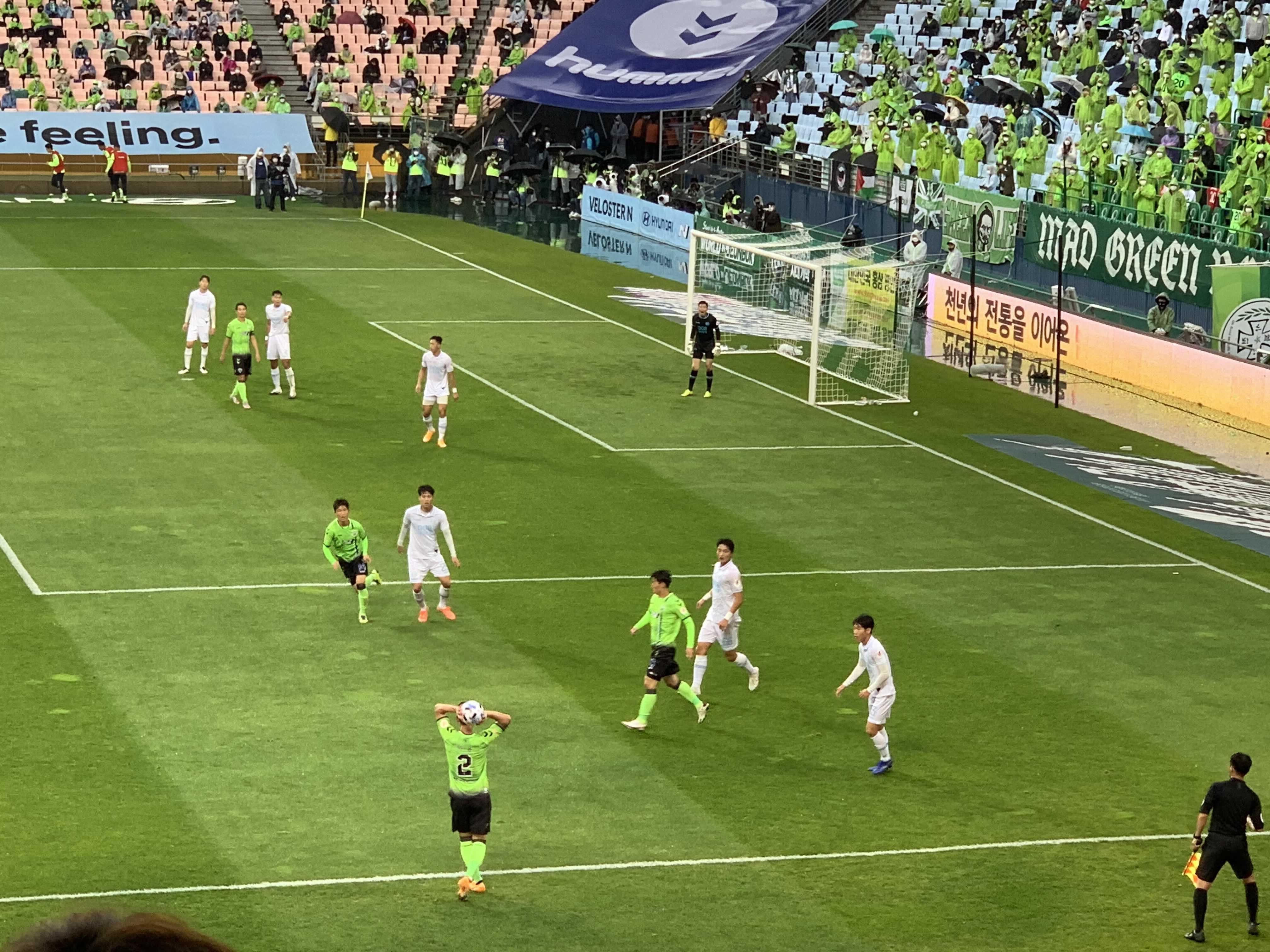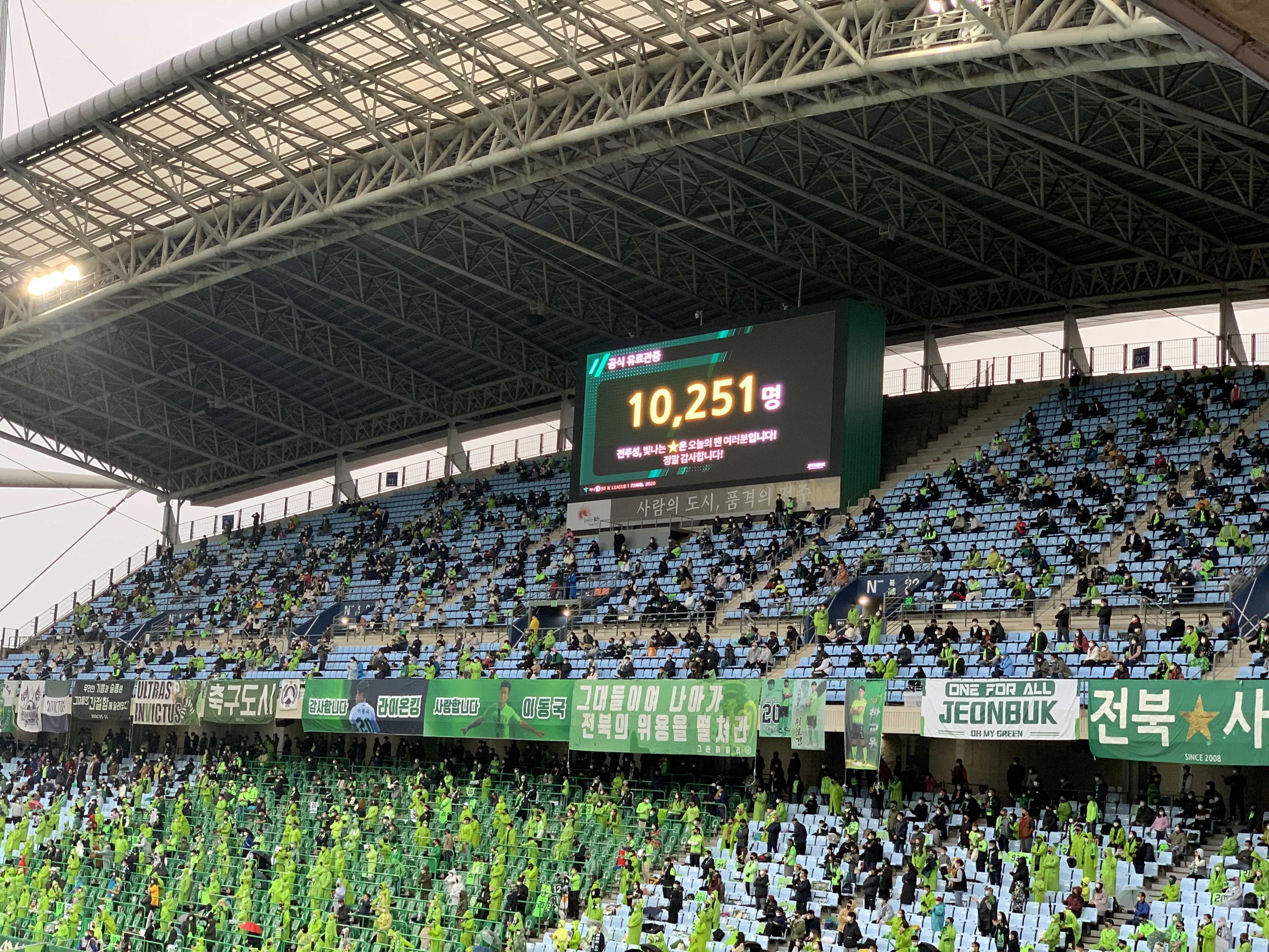 드로잉을 준비하는 이용 선수! 이동국 선수에게 많은 찬스가 있었지만 골로 이어지지는 않았습니다. 그리고, 유료 관중수는 10,251명이 입장하였습니다. 코로나 19로 인해 경기장에 25% 입장할 수 있으니.... 이번 경기는 매진이었네요.