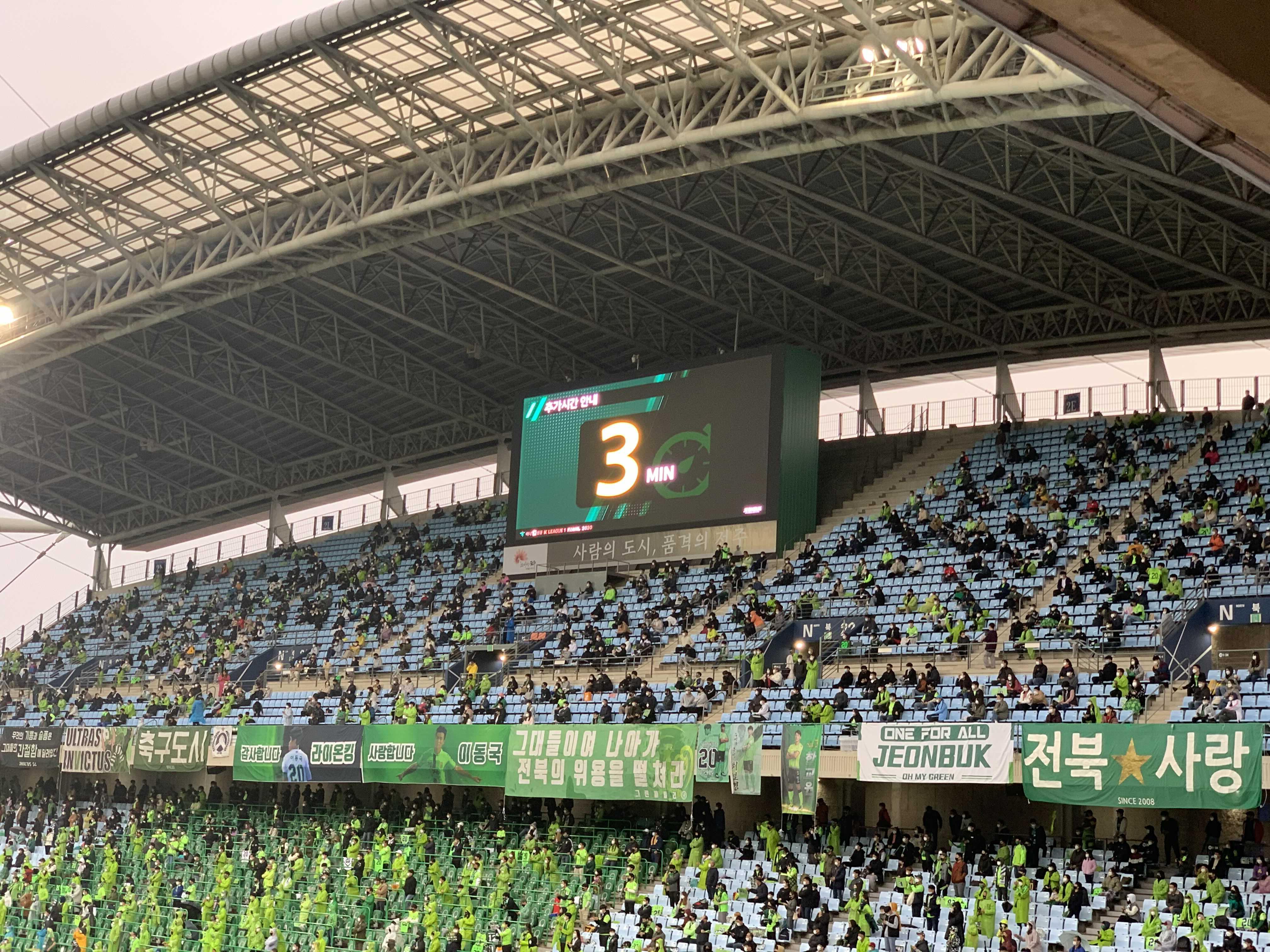 기립박수가 끝나기 무섭게 전북 현대의 밀어붙이기, 그리고 골! 골이 들어가면 "오오렐레"하는 재미가 있었는데.... 이제는 그런 재미가 없다는 게 많이 아쉬움으로 남습니다.