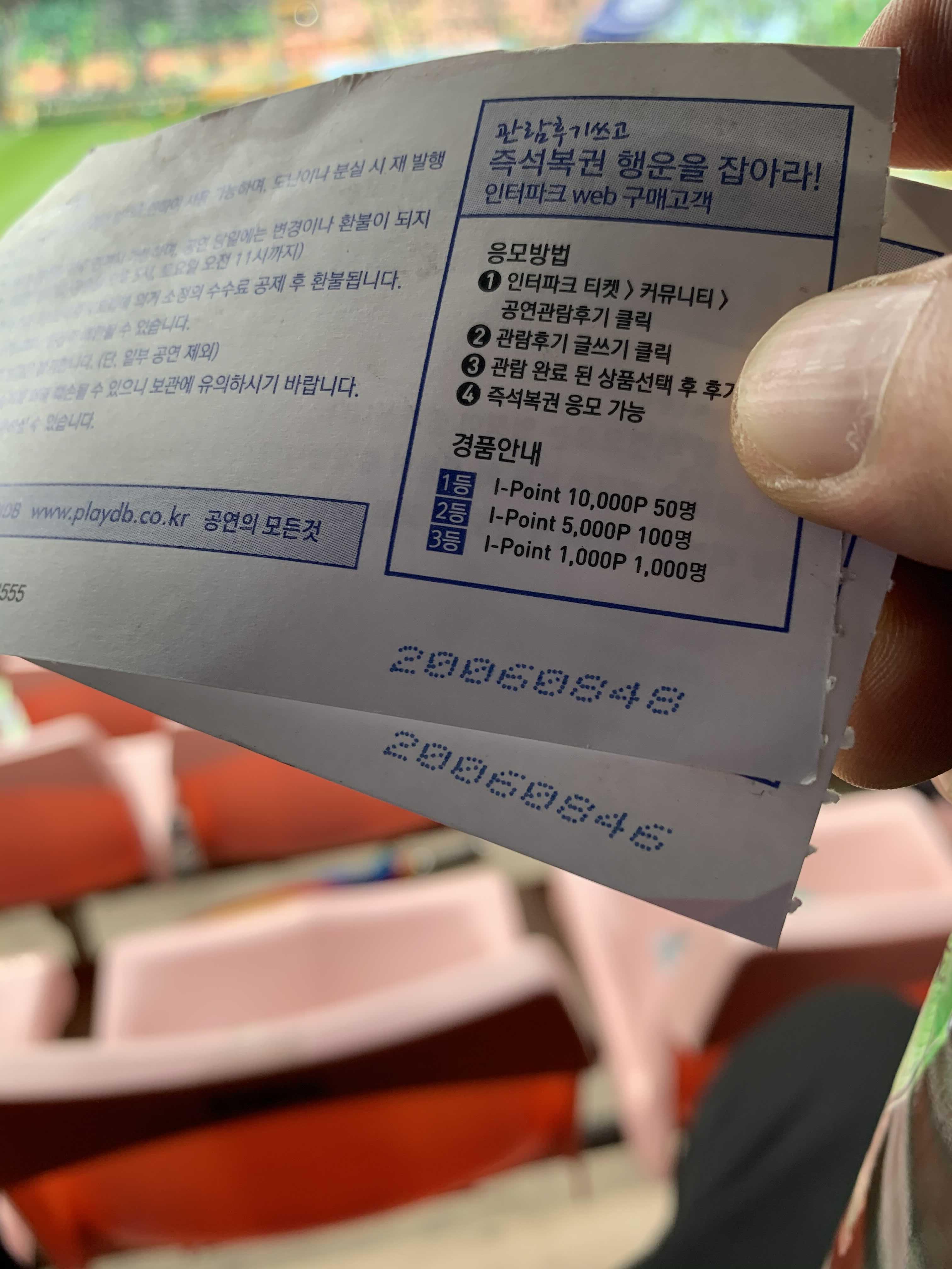 이번 경기는 우천이 예상되어 1층 뒤쪽 열 22열 좌석을 예매했습니다. 우천 시에는 22열 뒤쪽이 좋더군요. 특히 아이와 함께 경기를 관람할 때!!! 뒤쪽 좌석이 최고입니다.