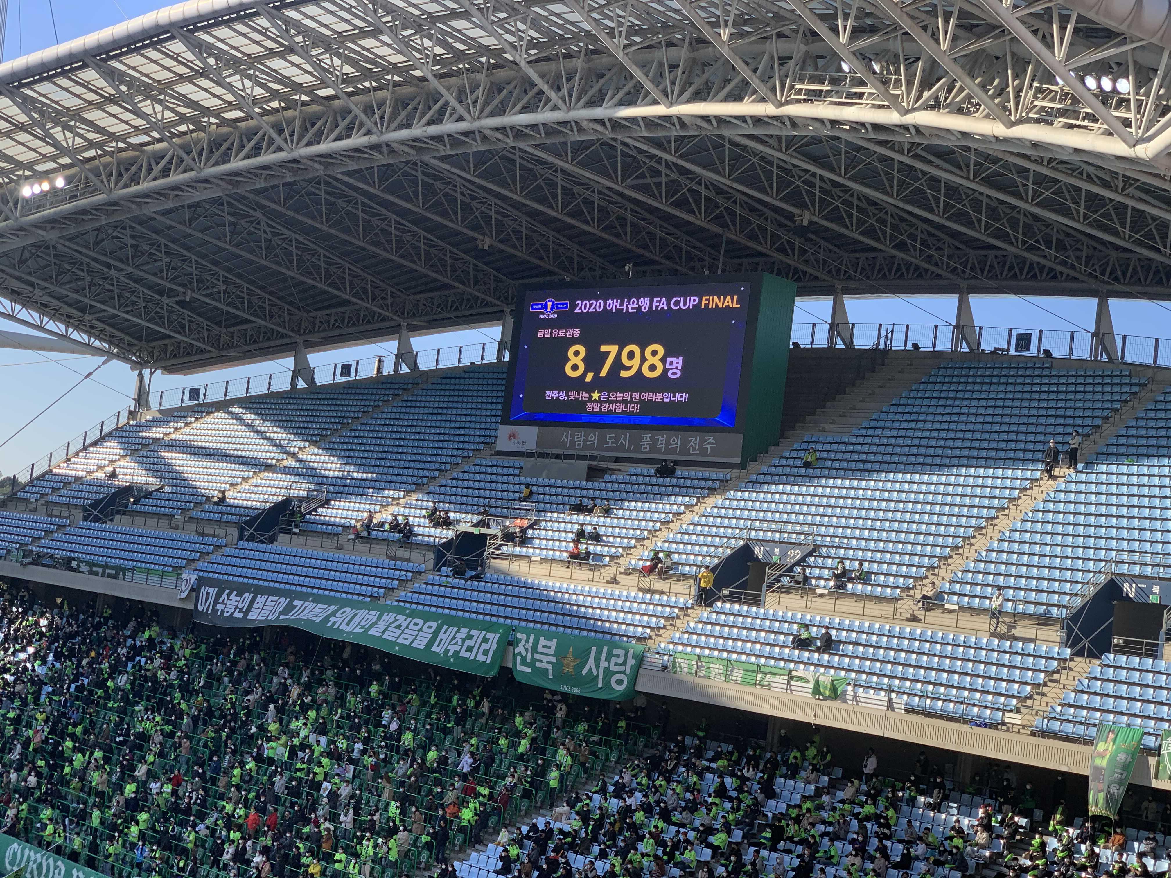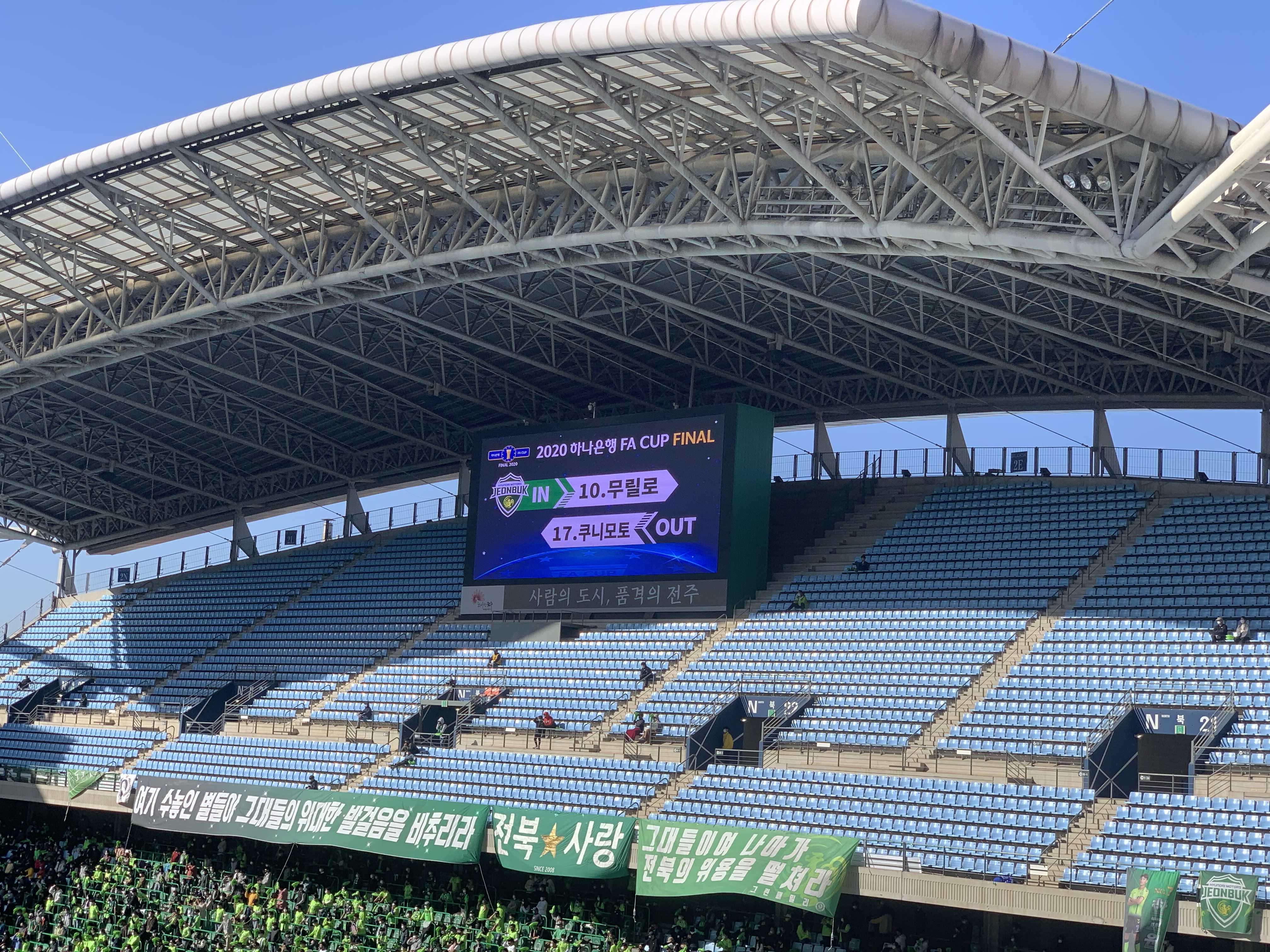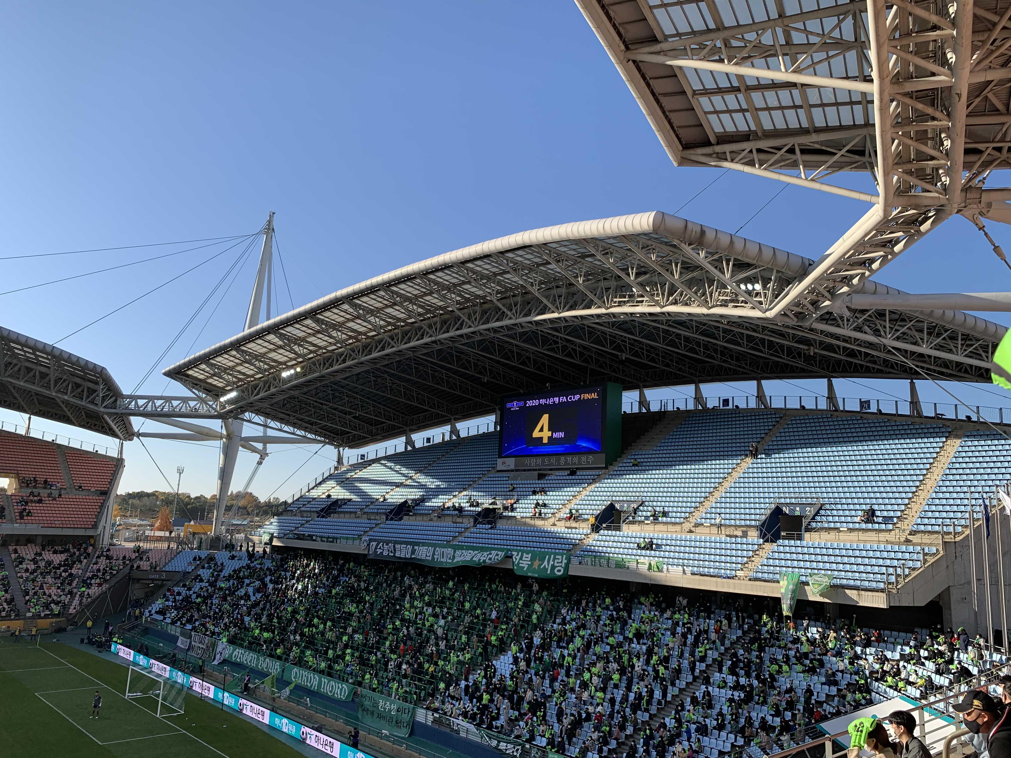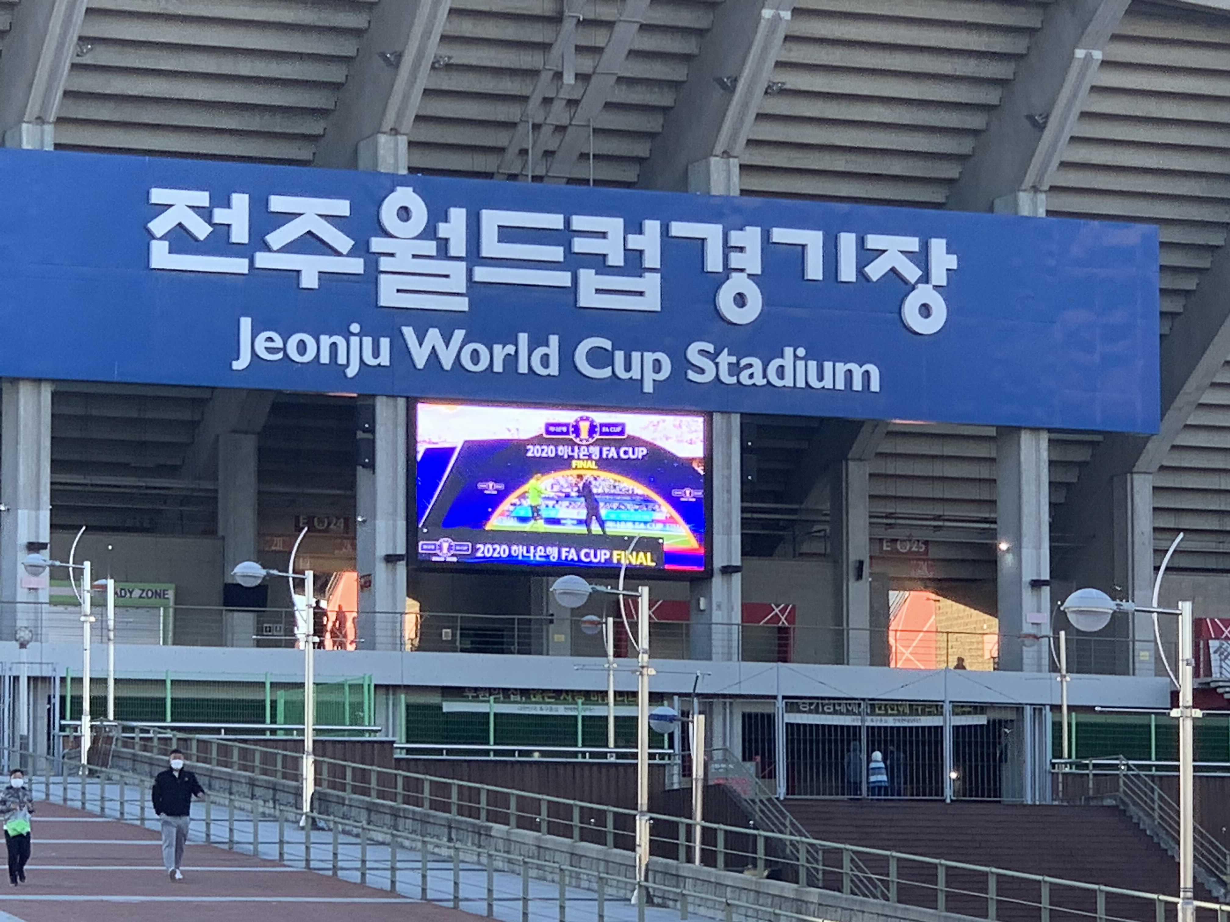 전북 현대의 올해 마지막 홈경기를 관람하기 위해 전주 월드컵경기장을 찾았습니다. FA컵은 프로팀과 아마추어팀 모두 참석하여 최강팀을 가리는 경기이며 1~3라운드는 아마추어팀으로 경기하며 4라운드부터는 프로팀이 참여하여 토너먼트로 진행하는 경기입니다. 지난주 리그 마지막 경기는 승리로 K리그 8회 우승 트로피를 들어 올렸고, 이번에는 FA컵 우승에 도전하는 홈경기입니다.