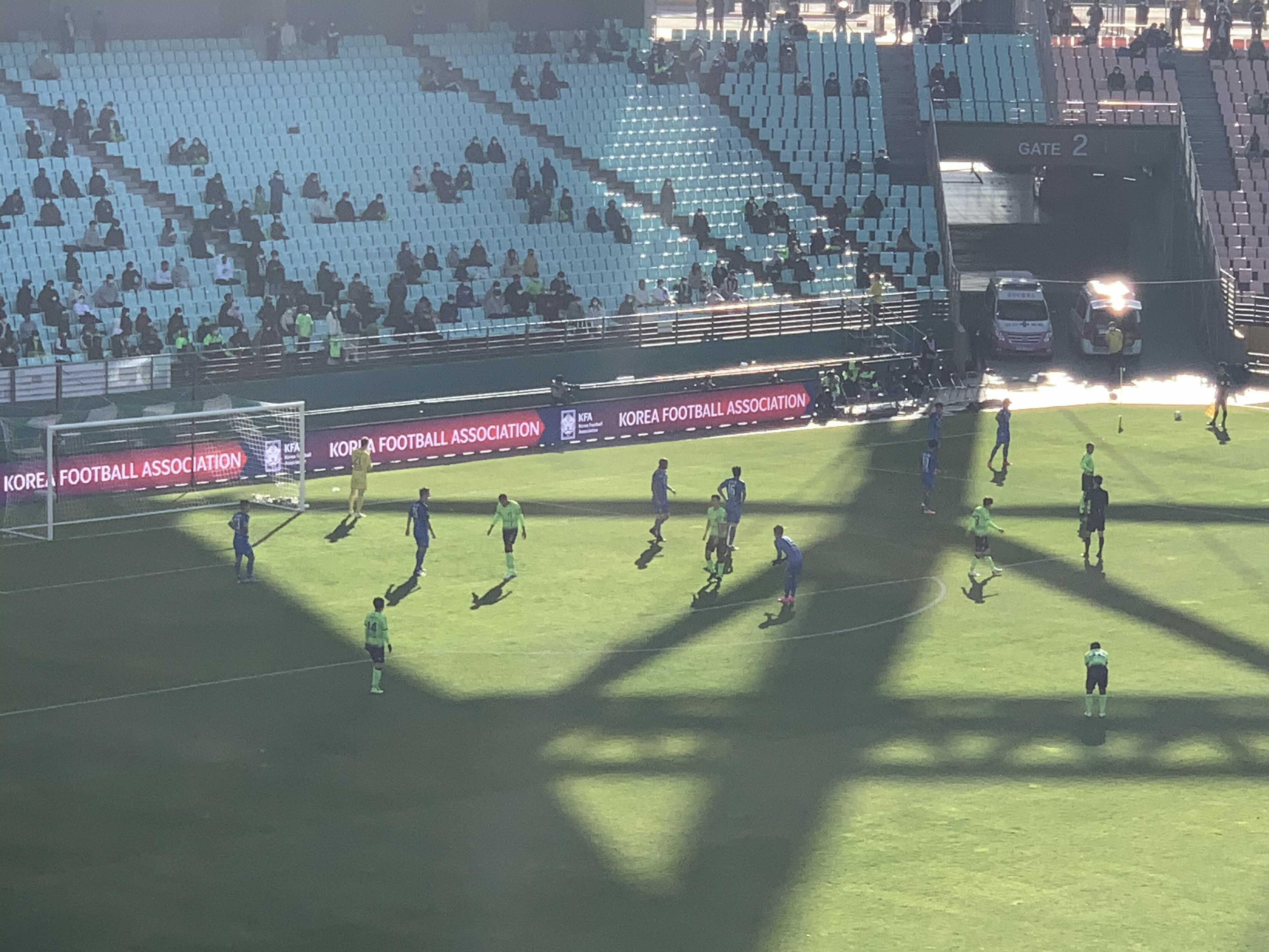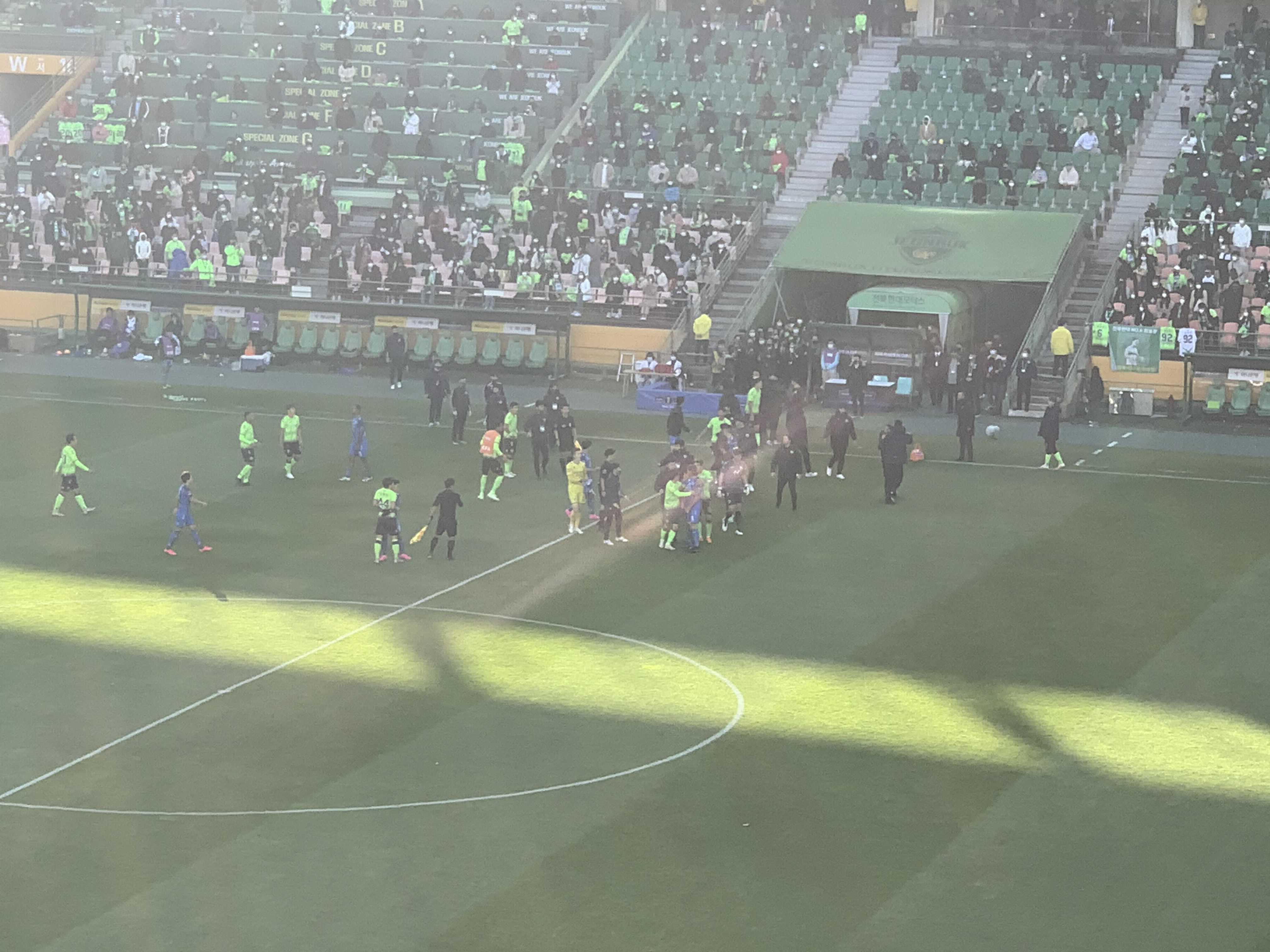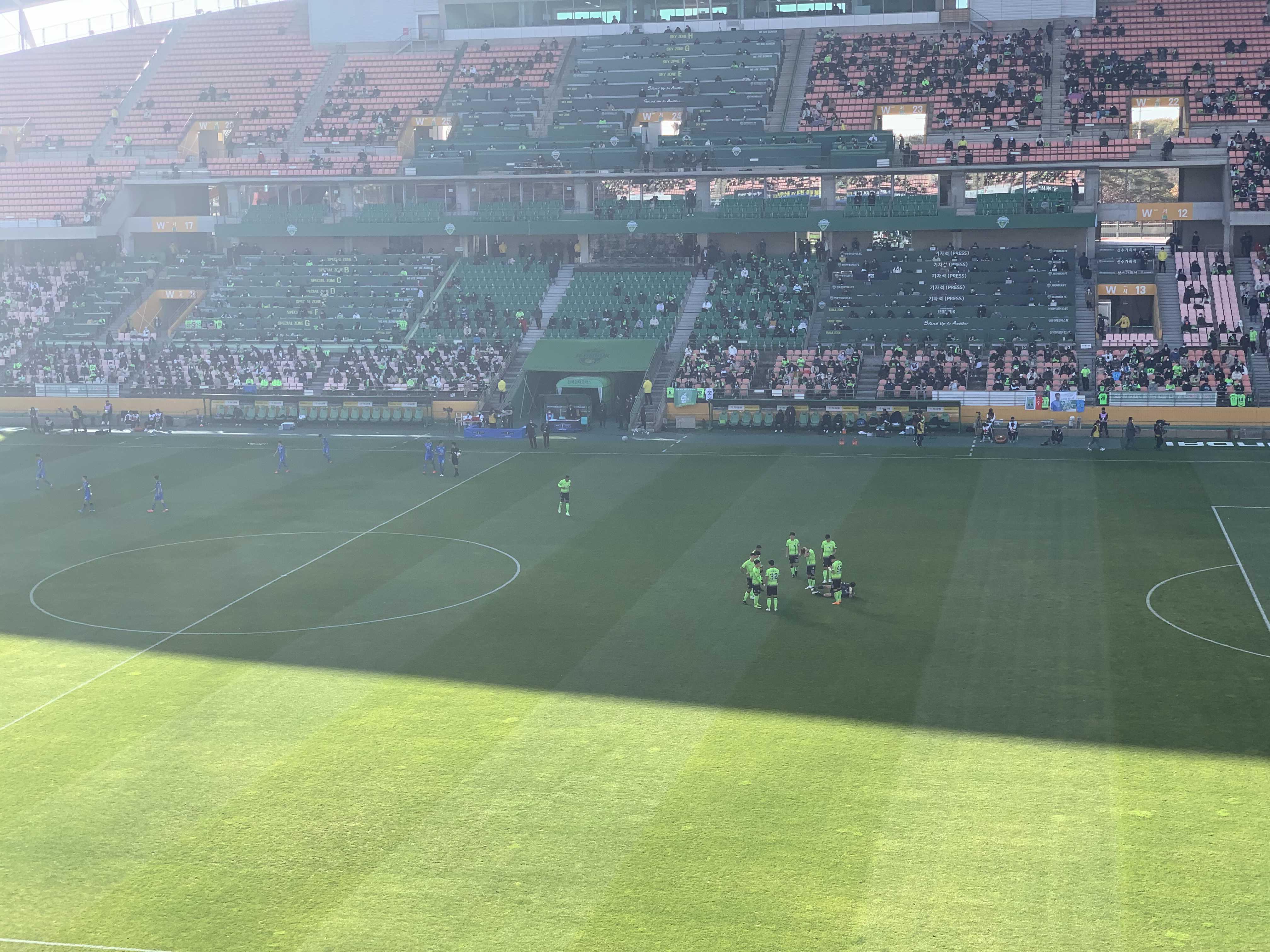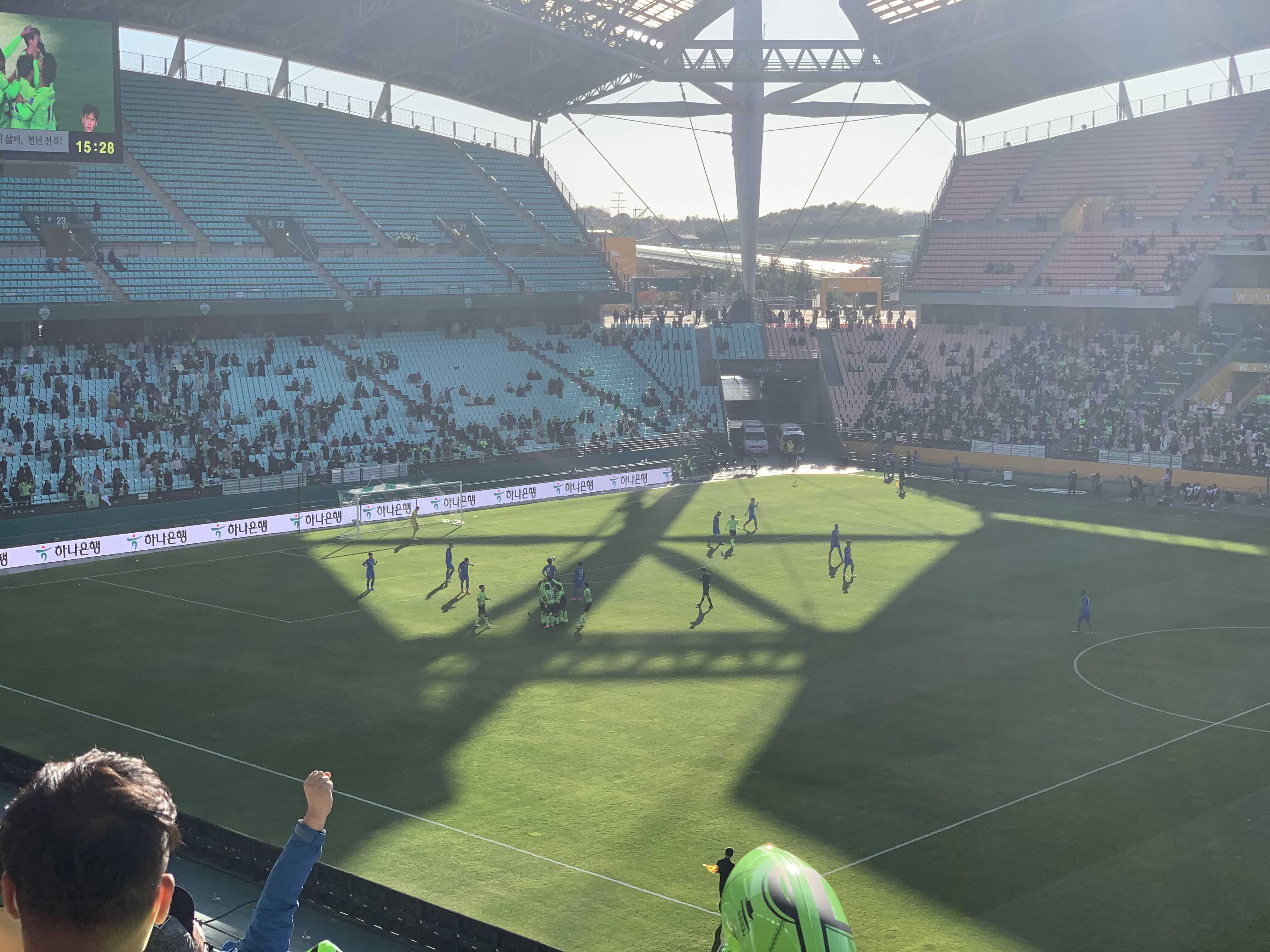 평소 경기는 홈팀이 서포터스 쪽에서 시작하는데.... 시작 장소를 바꾸더군요. 축구라는 게 전반 후반 번갈아 경기하는데, 굳이 바꾸어서 할 필요가 있는지.... 평소 좌석도 후반전이 중요하여 중앙에서 서포터스 쪽으로 좌석을 예매했는데, 이럴 줄 알았으면 중앙에서 원정석 쪽으로 좌석을 예매하는데!!! 별 중요한 거 아니면, 홈팀은 좌측에서 시작했으면 좋겠네요.(시작을 왼쪽이 아닌 오른쪽에서 시작하니 좀 낯섦;;)