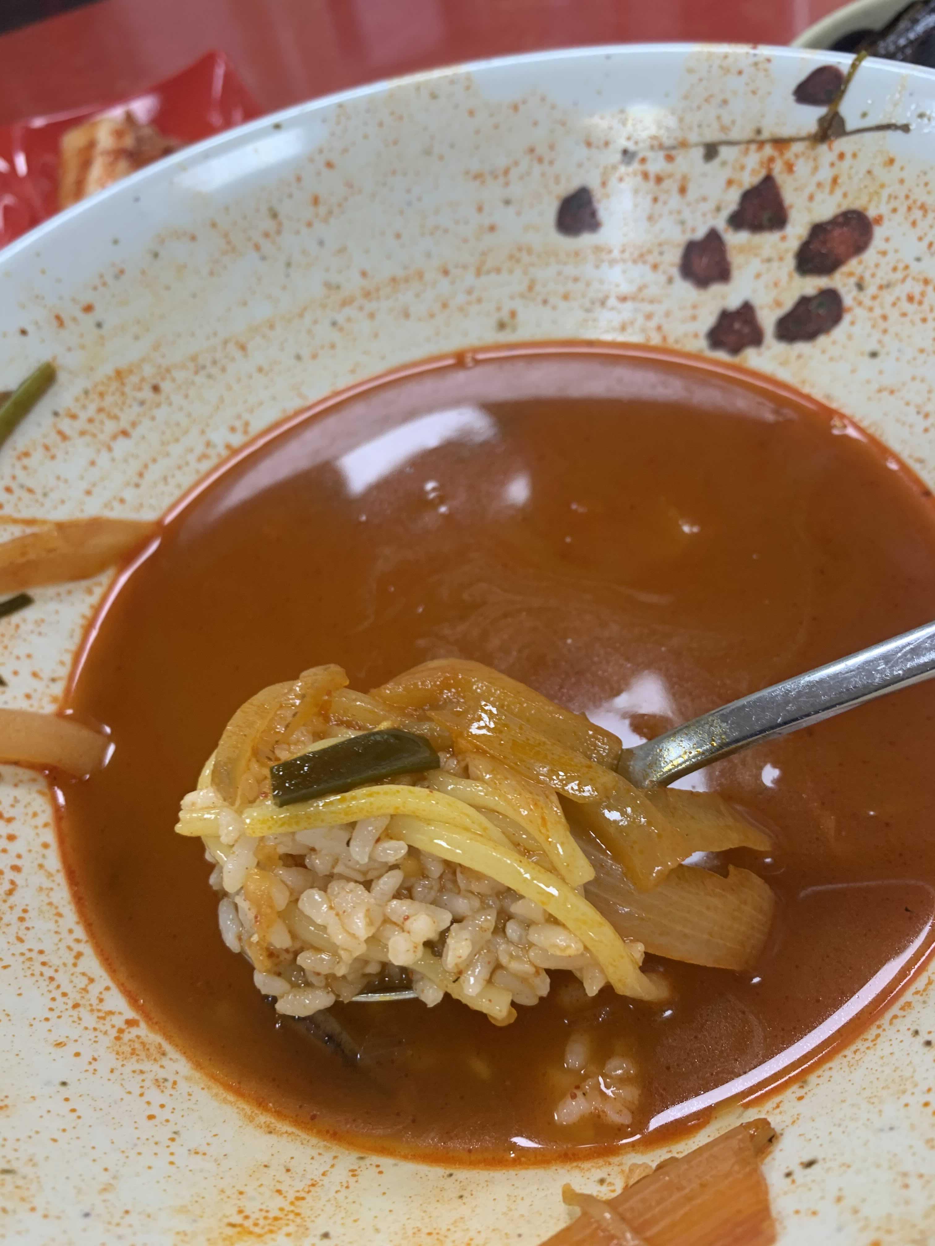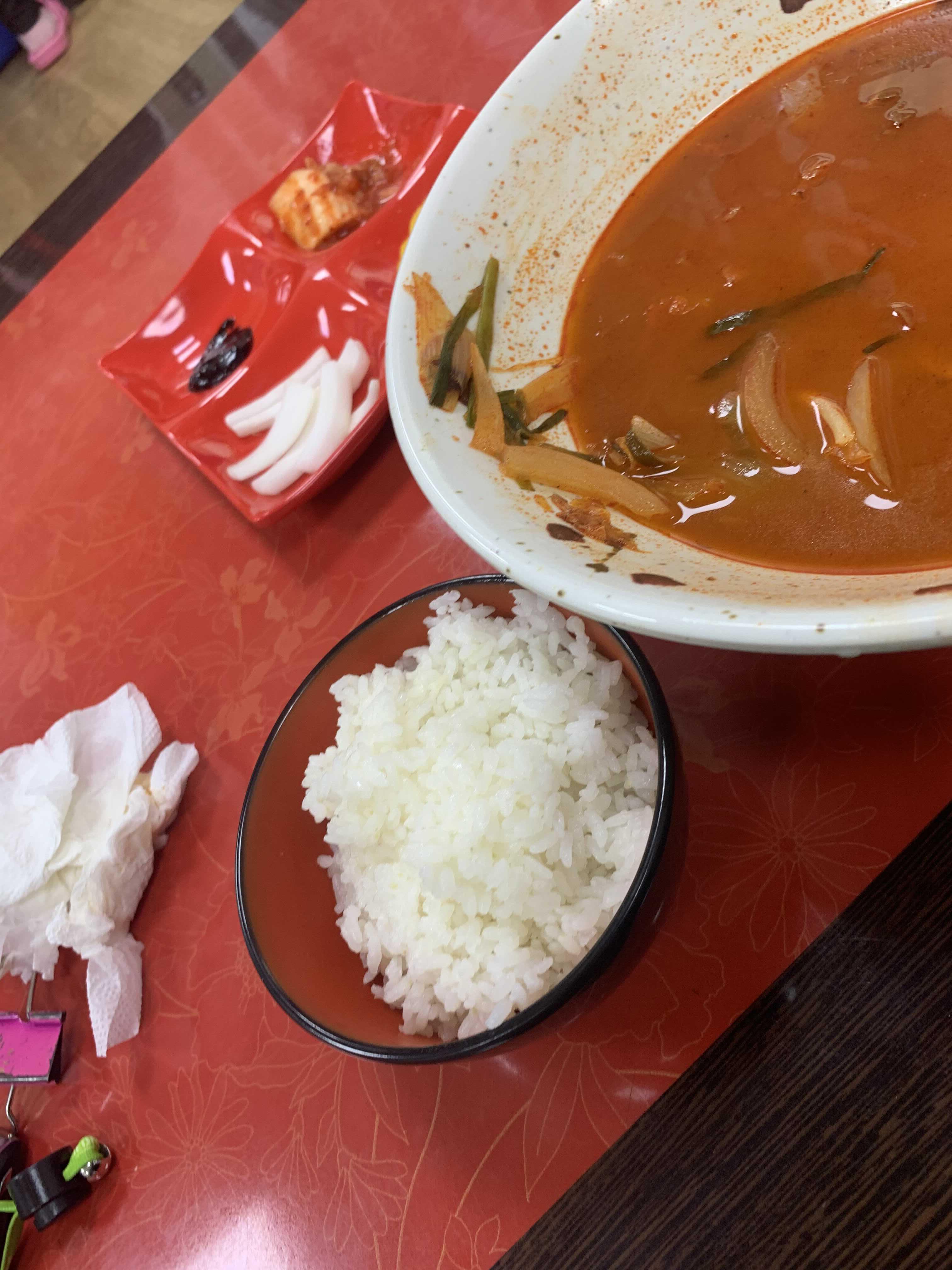 늦은 점심이고 많이 출출해서 공깃밥을 추가 주문해서 밥을 말아서 먹었네요. 밥 말아서도 먹기 좋은 국물이더군요. 아쉬운 점은 짬뽕 가격 7,000원 치고는 내용물이 좀 빈약하게 느껴지고, 괜찮은 부분은 국물이 불향에 매콤하니 얼큰하게 먹을 수 있어서 좋았습니다. 공깃밥 양이 좀 적은데.... 공깃밥은 서비스로 나오더군요.