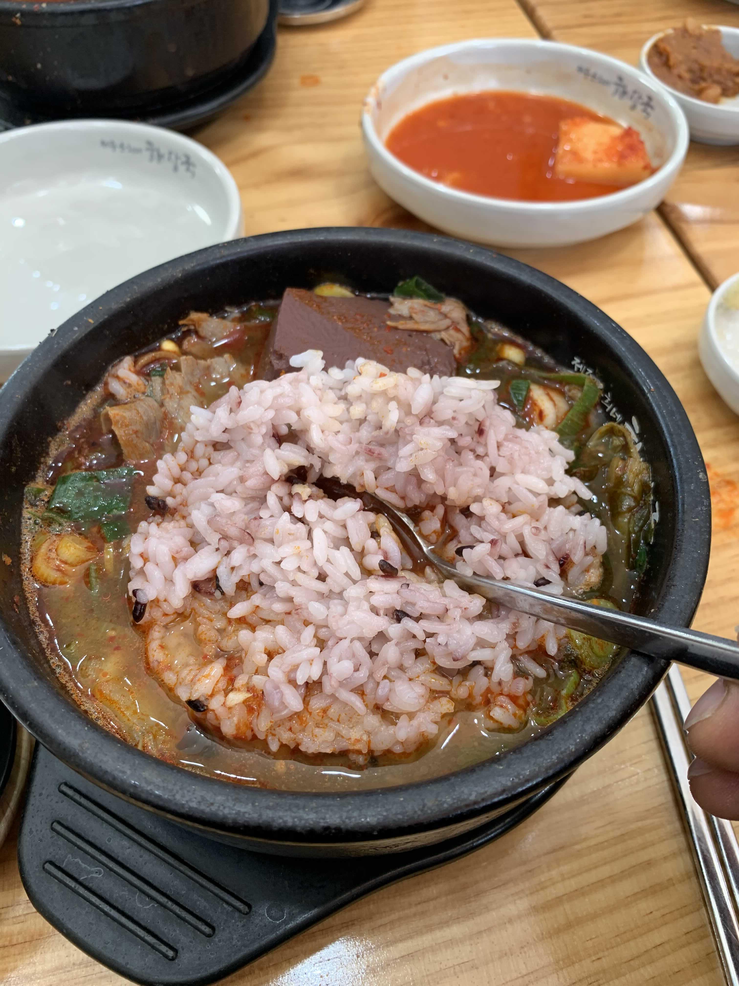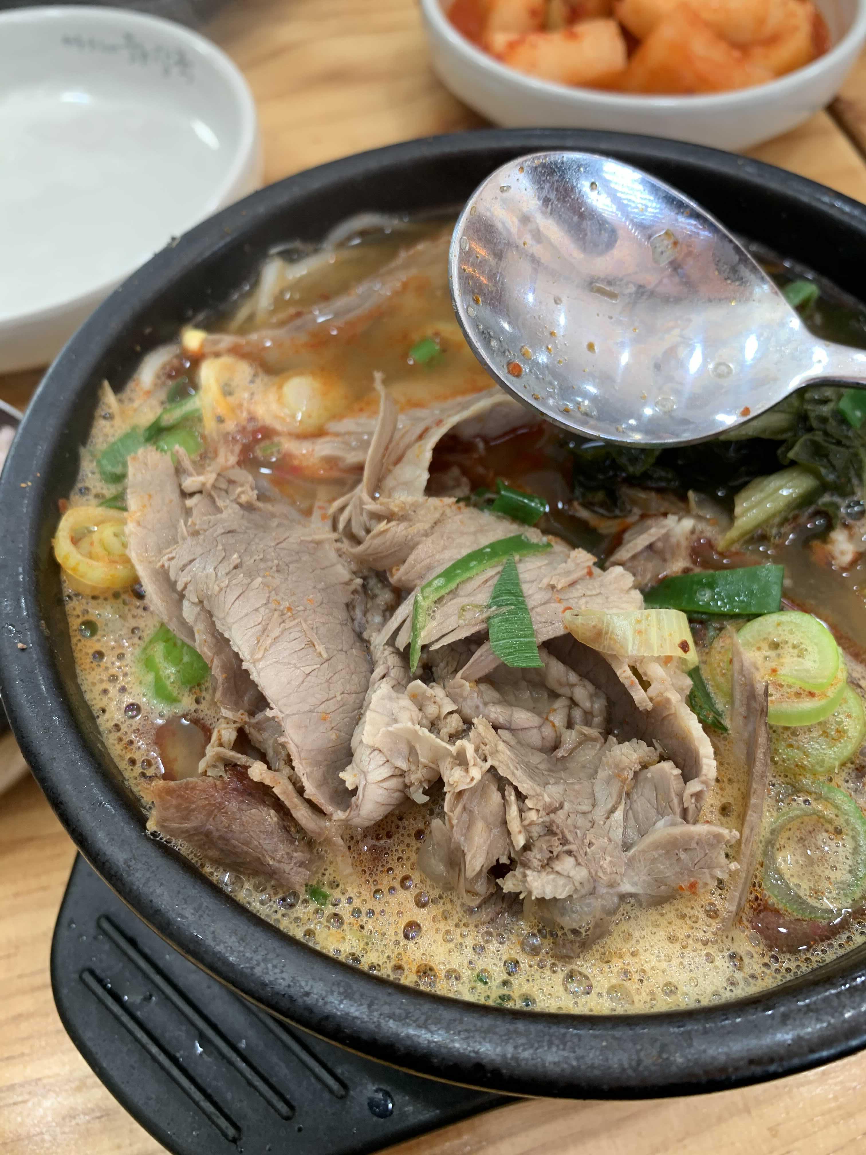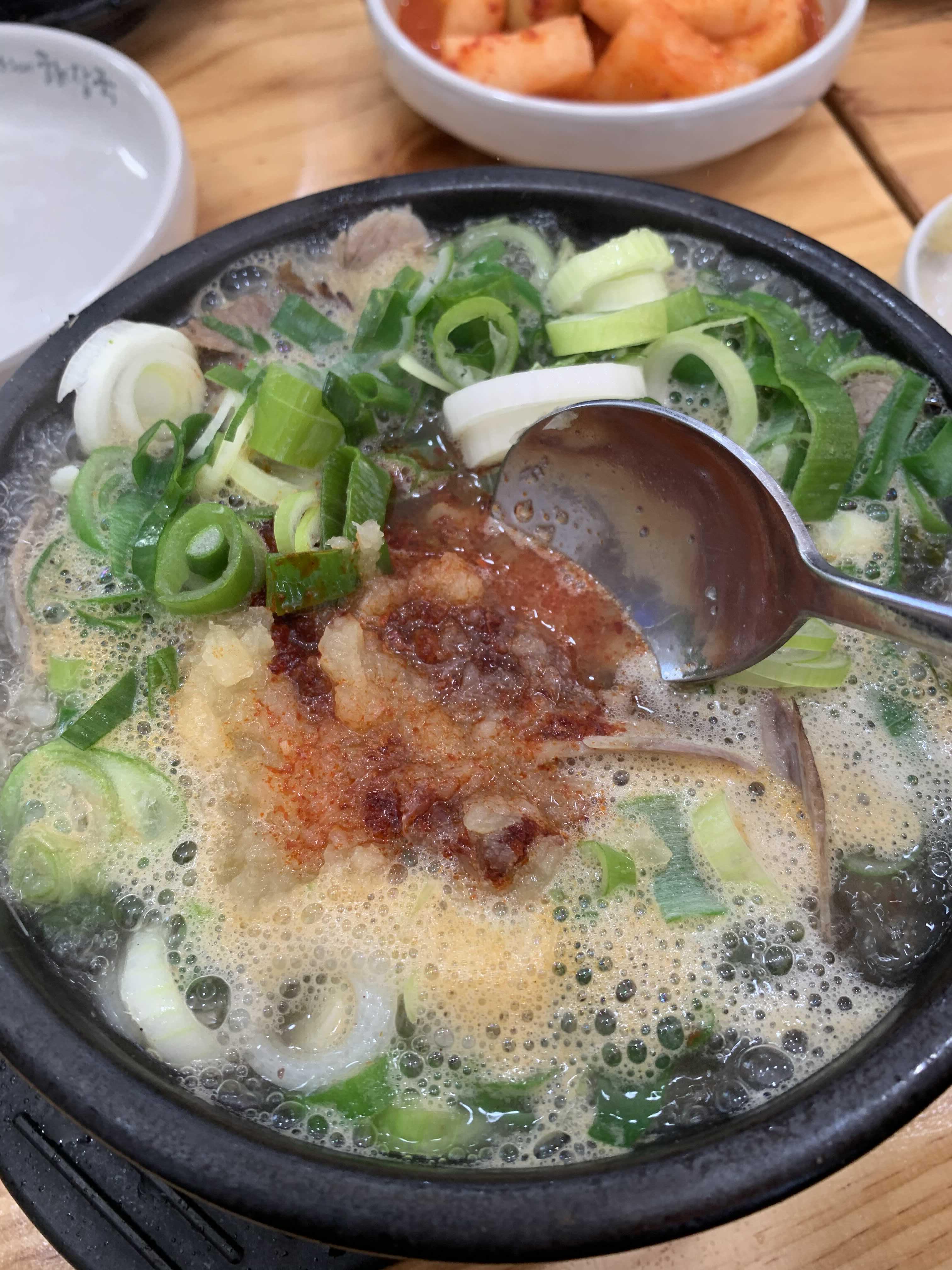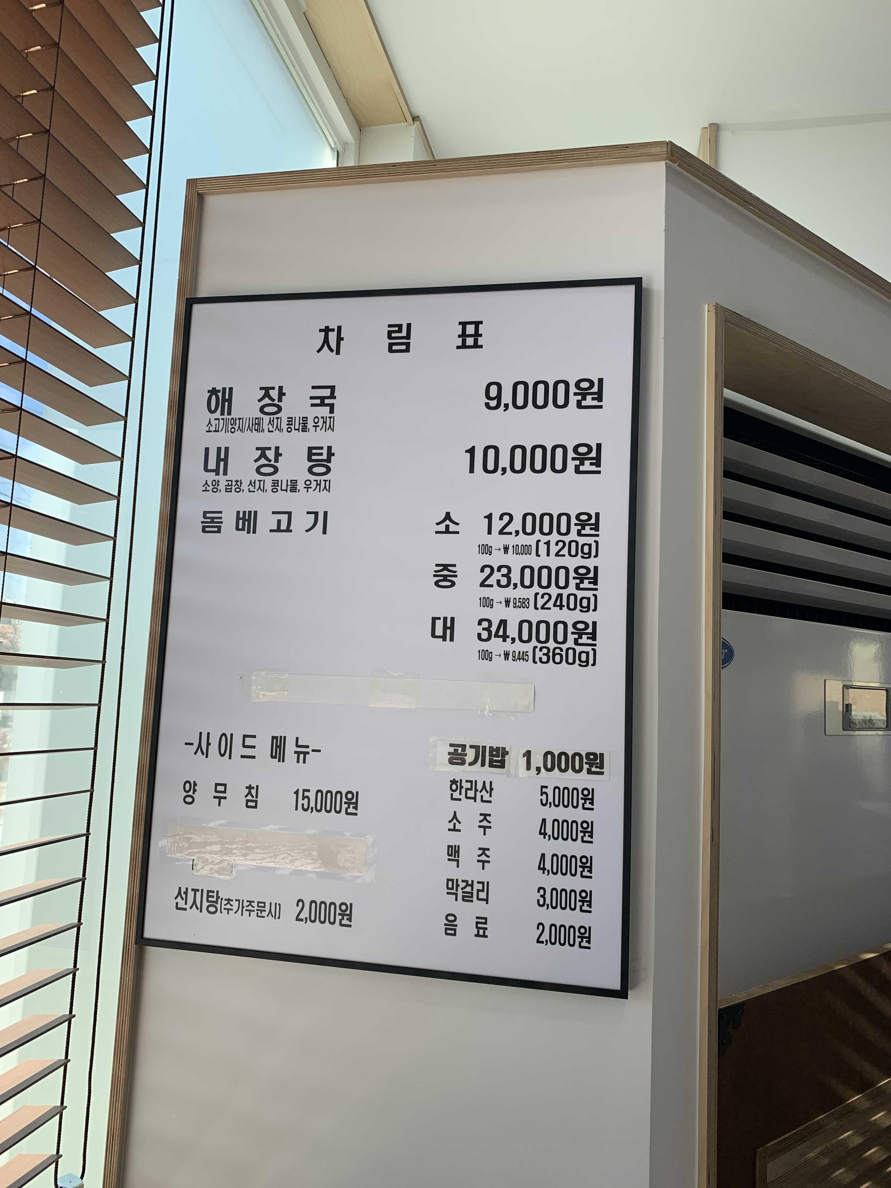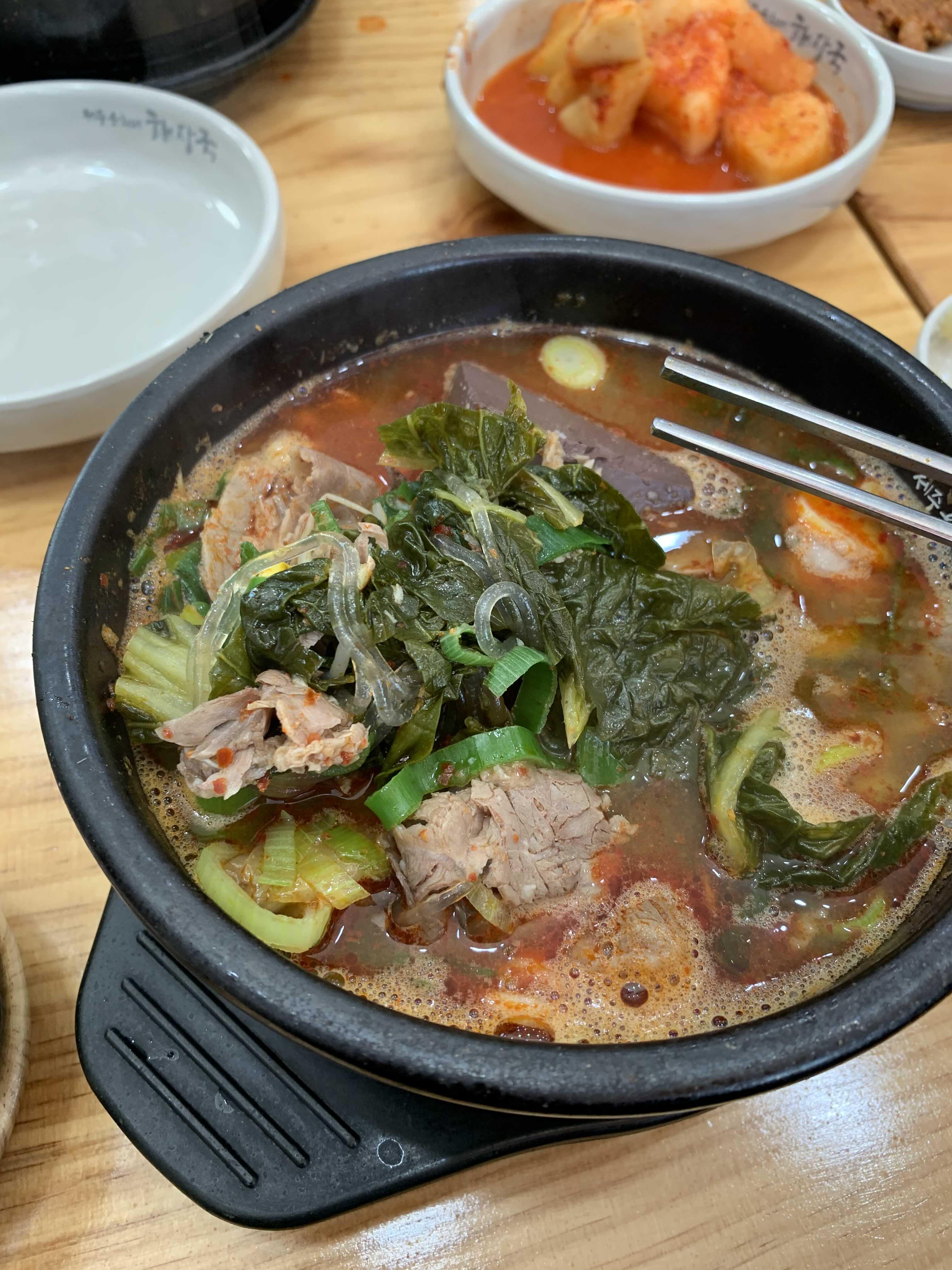 최근에 먹어본 해장국 중 가장 맛있게 먹은 식당입니다. 아쉬운 부분은 간 마늘을 넣어 먹는데... 마늘장아찌 냄새가.... 마늘만 안 넣고 먹었더라면 완벽했을 한 그릇의 해장국이라 생각되네요.(간 마늘보다는 다진 마늘이 더 어울릴 듯함) 일본 라면 맛있게 하는 곳에는 생마늘과 마늘즙 내는 망치? 비슷한 것으로 먹을 때 다져 넣으니 괜찮았는데.... 마늘은 갈면 얼마 지나지 않아 즙 생기고 즙이 장아찌로 변하나 봅니다.