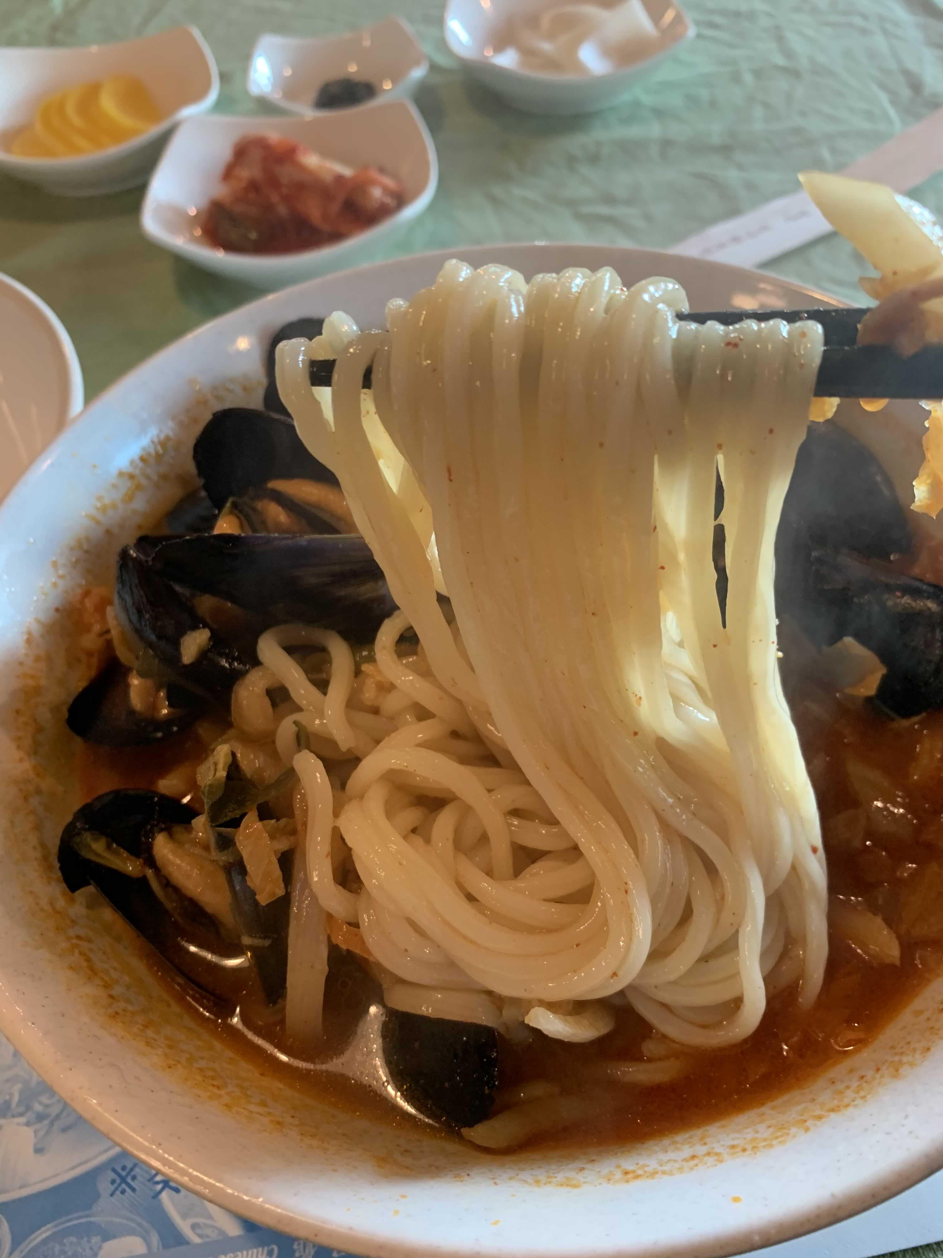 짬뽕 면발은 탱글탱글하기보다는 가락국수 면발의 느낌이 강하더군요. 이런 면발은 짬뽕보다는 짜장면에 어울릴듯한 면발이더군요. 약간 퍼진 느낌의 면발이었으나 부드러운 목 넘김?으로 술술 넘어가더군요. 가격이 8,000원 짬뽕으로는 해산물이나 건더기가 홍합과 잘게 썰린 오징어 그리고 채소의 물이 쏙 빠진 채소라.... 내용물에 비해 약간 비싼 느낌이 들더군요.