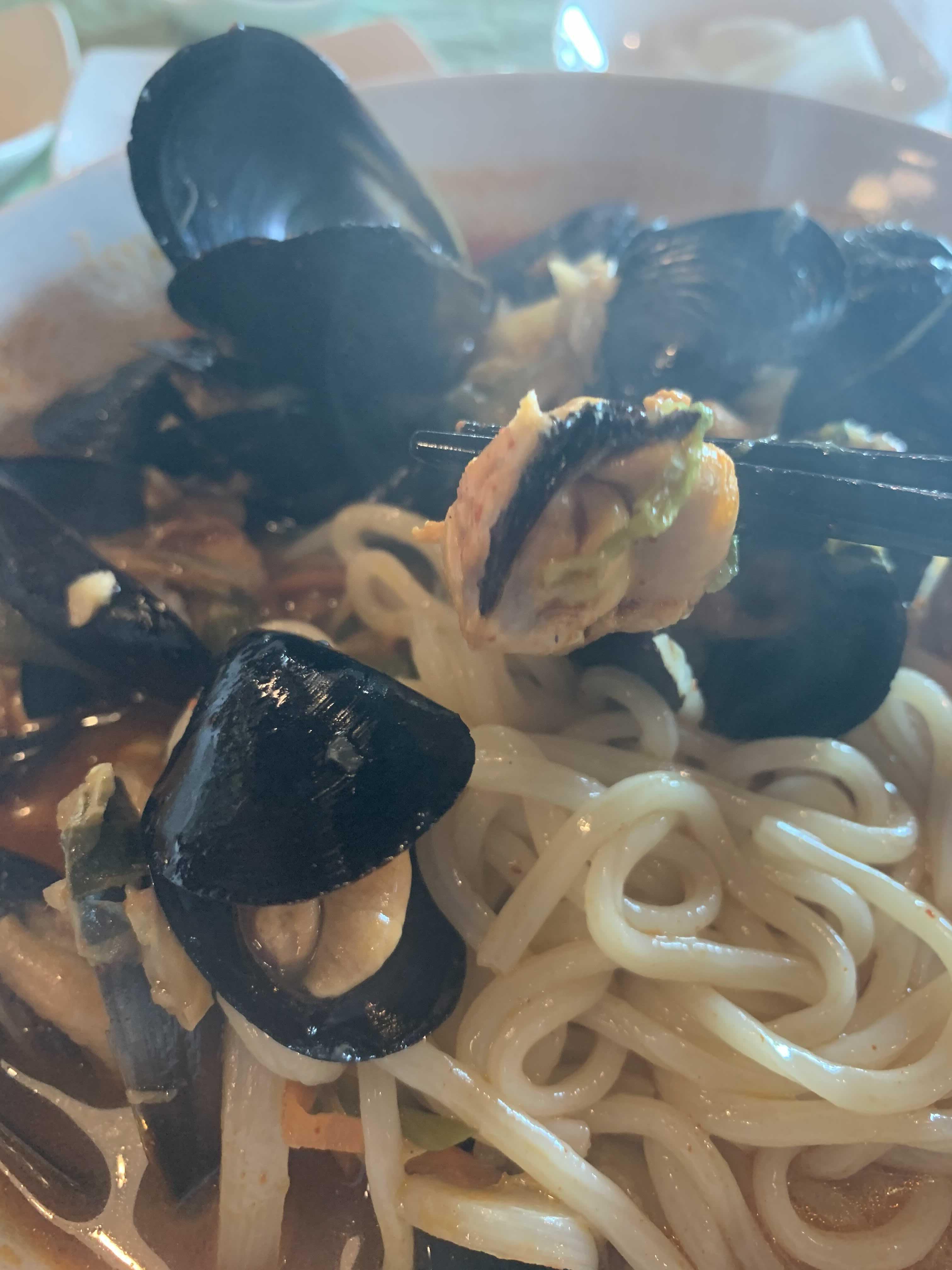 주문하고 시간이 얼마 지나지 않고 짬뽕이 나오더군요. 짬뽕 국물은 최근에 맛보았던 짬뽕 국물과 사뭇 다른 국물 맛이더군요. 얼큰하고 불맛의 국물이라기보다는 구수한 짬뽕탕(짬뽕 국)의 국물이었고, 면보다는 공깃밥을 말아서 먹으면 좋을 듯싶은 국물이었습니다.