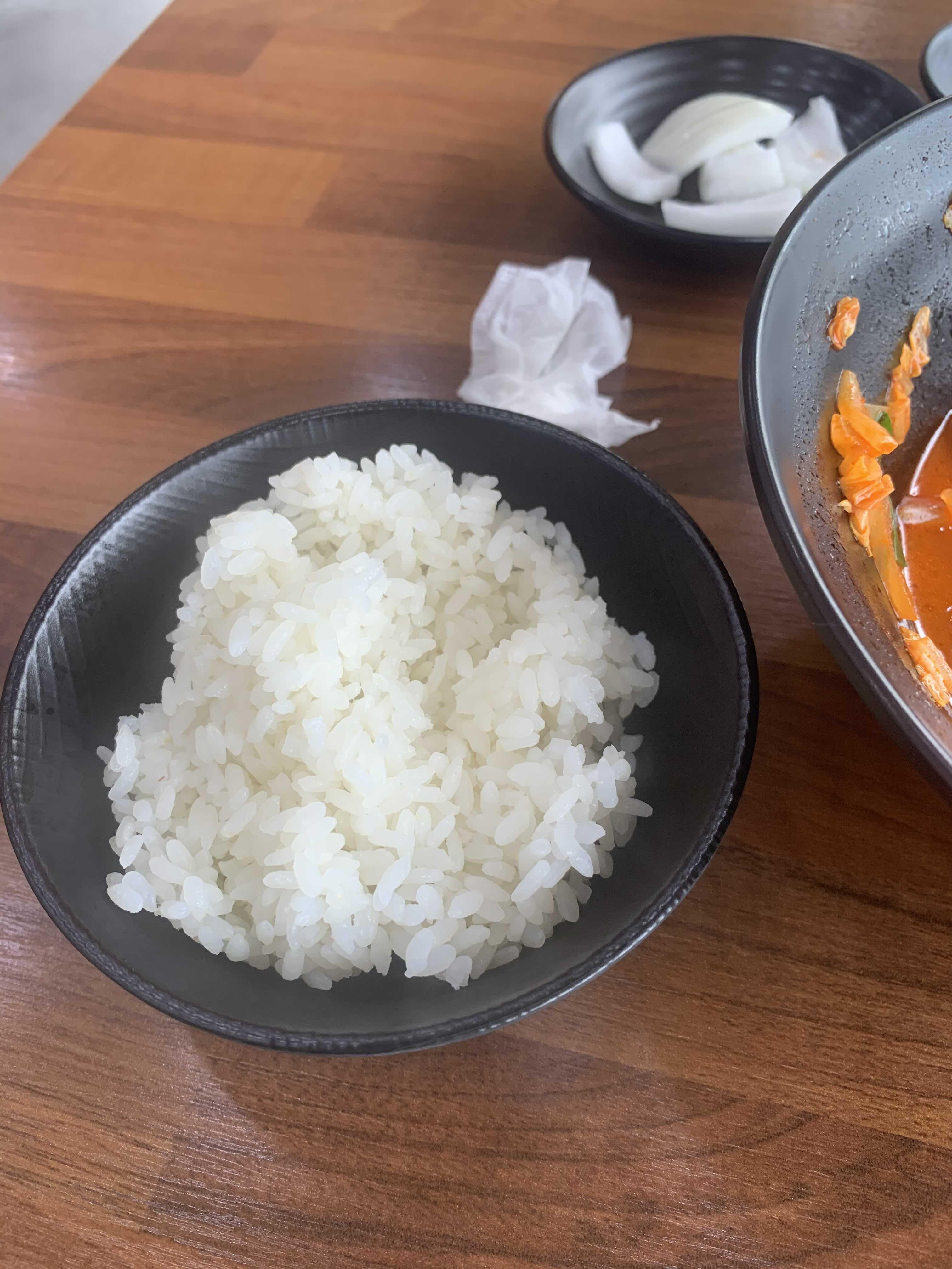 짬뽕에는 오징어와 돼지고기가 들어가더군요. 요즘 고기가 들어간 짬뽕이 유행인지... 최근에 고기가 들어간 짬뽕을 많이 먹게 되는 거 같습니다. 오징어나 고기도 괜찮았지만, 짬뽕에 들어간 채소! 이 채소가 너무 물러지지 않아 식감이 상당히 좋더군요. 다른 곳에 비해서 짬뽕의 양이 곱빼기처럼 느껴지더군요.... 채소가 많아서 그렇게 느껴졌는지는 모르겠으나, 이 채소가 아삭하니 괜찮아 최근에 먹어본 짬뽕 중 가장 맛있게 먹은 곳이네요. 이렇게 맛있는 짬뽕에는 공깃밥 추가!(공깃밥은 서비스^^)