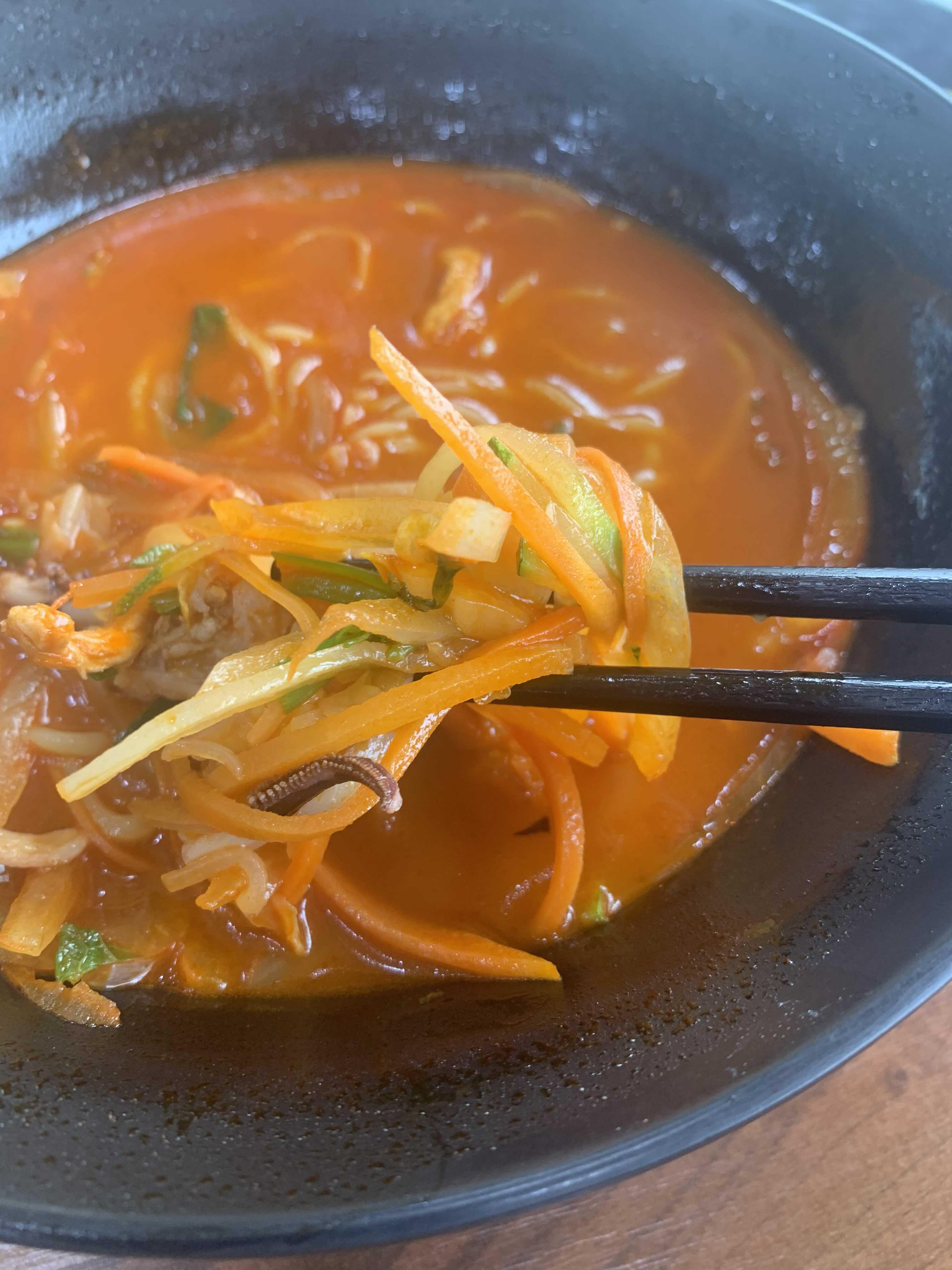 기본 짬뽕 7,000원으로 가격 면에서는 평타입니다. 요즘은 짬뽕이 7,000원이 기준 같은 느낌이.... 7,000원 이하면 저렴 하편, 이상이면 비싼 편이란 느낌이 드는데... 나만 그런가?ㅎㅎ 음식을 주문하고 얼마 되지 않아 나온 짬뽕! 우선 국물부터 한 모금.... 그리고 몇 국물을 더 마셔보았네요. 얼큰한 국물에 다른 집 중식당과 약간 국물 맛이 다르더군요. 국물의 끝 맛이 상당히 매콤하면서 깔끔했네요.