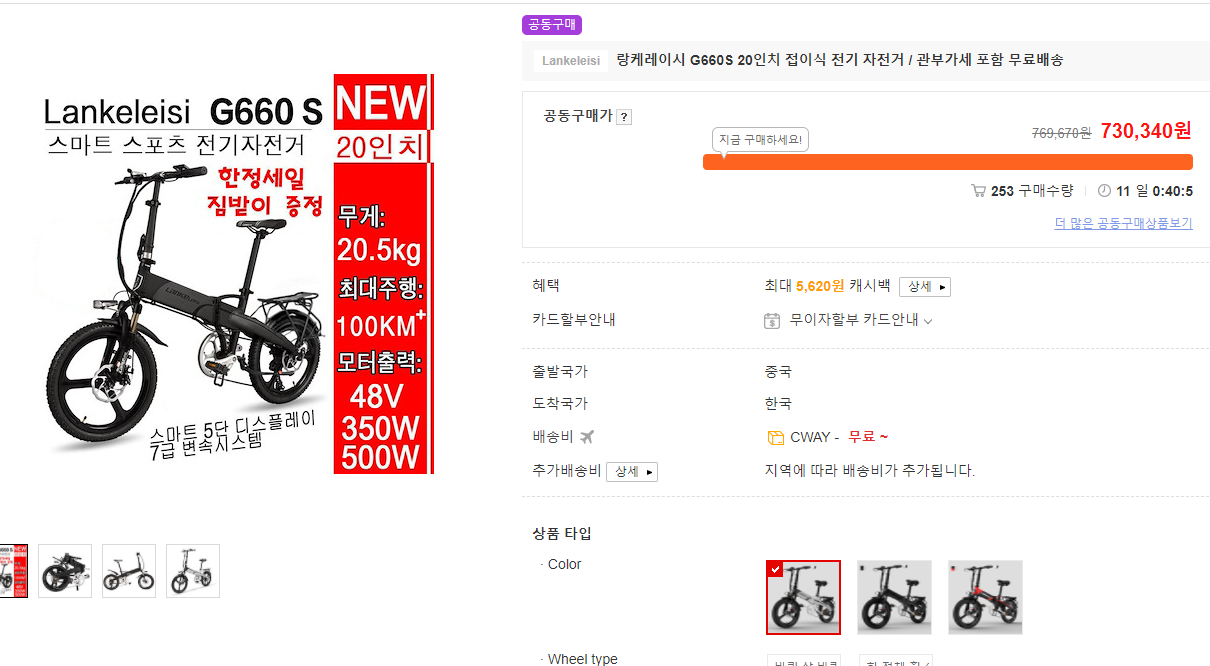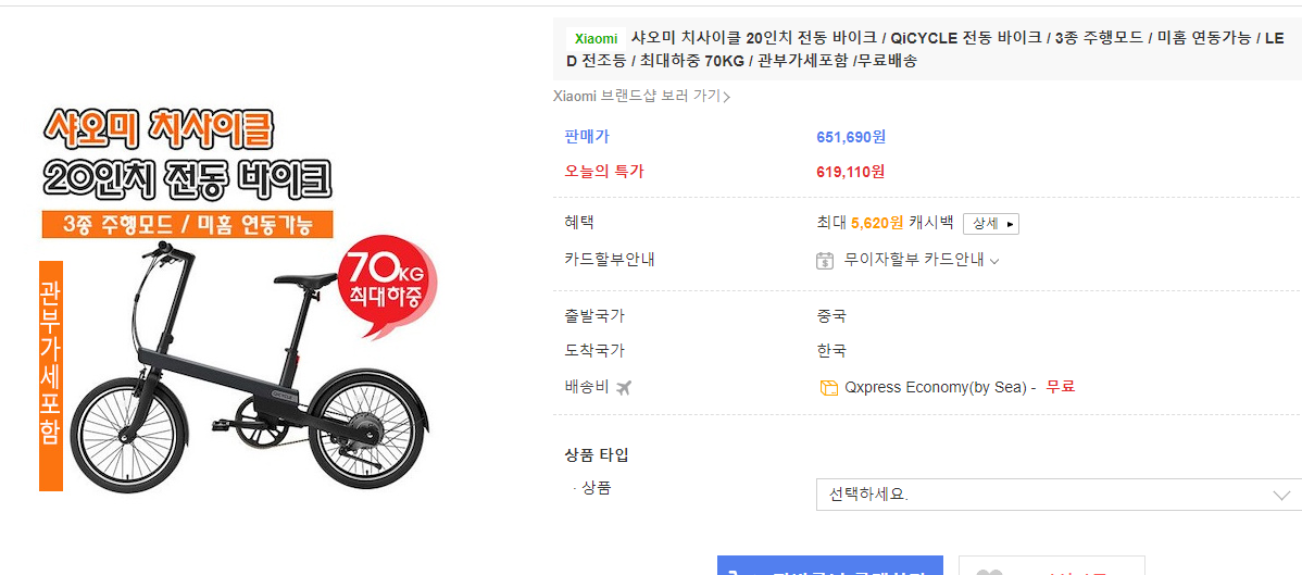 직구로 주문한 전기자전거!!! 잘 오고 있으려나?^^ 자전거가 도착하면 전기자전거 리뷰나 남겨보려고 합니다. 전기자전거 타보고..... 다시 킥보드로 돌아갈지도 모르겠지만, 전기 자전거는 배터리가 부족하거나 에러 메시지가 나오더라도 페달을 인력으로 구르면 되겠지?라는 생각으로 출퇴근에 도전해 보려 합니다.