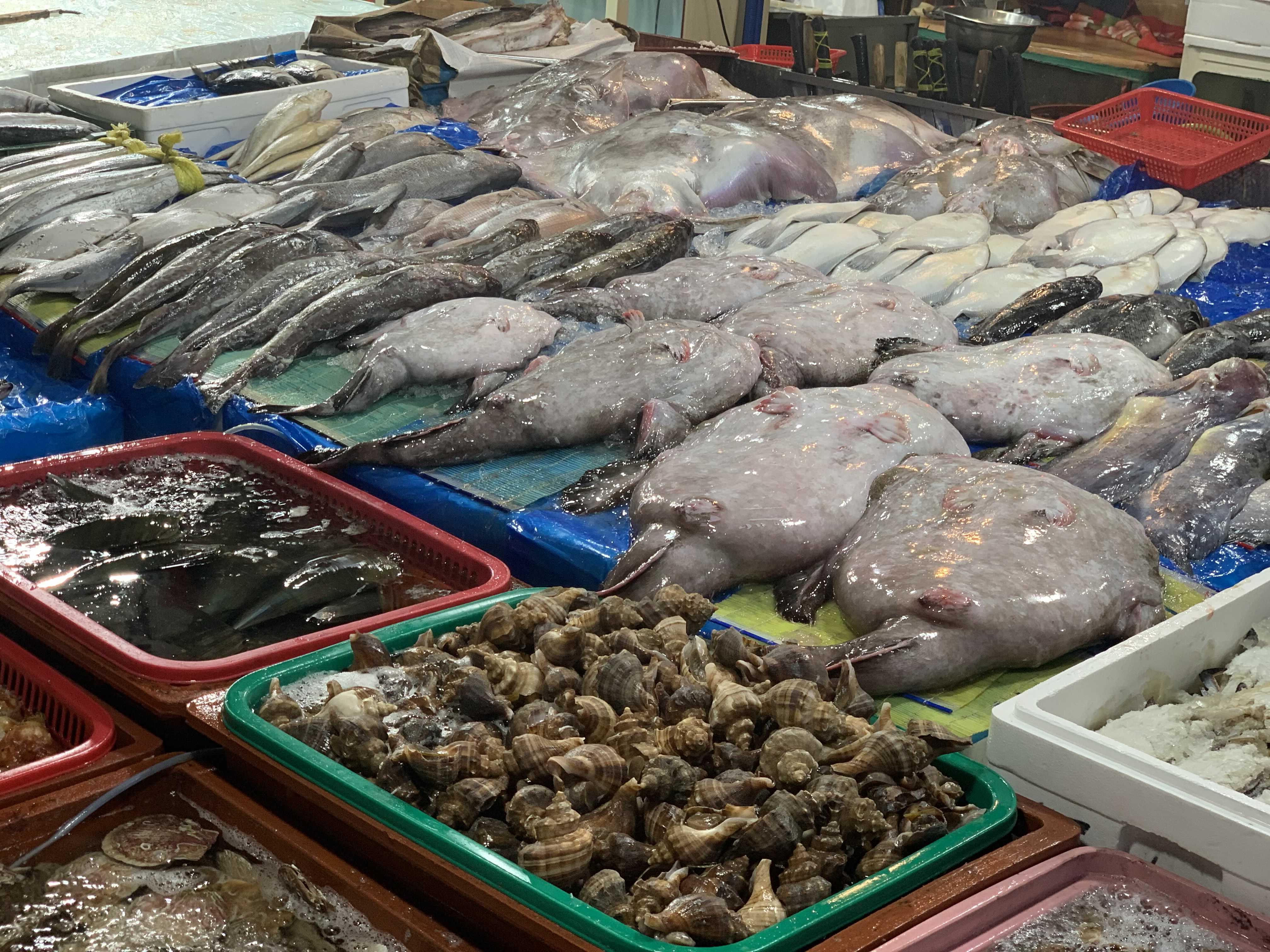 요즘 아귀찜을 집에서 자주 해 먹는데, 마트나 식자재 마트에는 좀 싱싱한 물건이 없어서 수산시장에 방문하게 되었습니다. 아귀만 전문으로 판매하는 매장은 안 보이고... 나름 아귀가 많이 진열된 매장은 보이더군요. 마트에서는 냉동 아귀가 대부분이었는데, 여기는 생물이 보이더군요.
