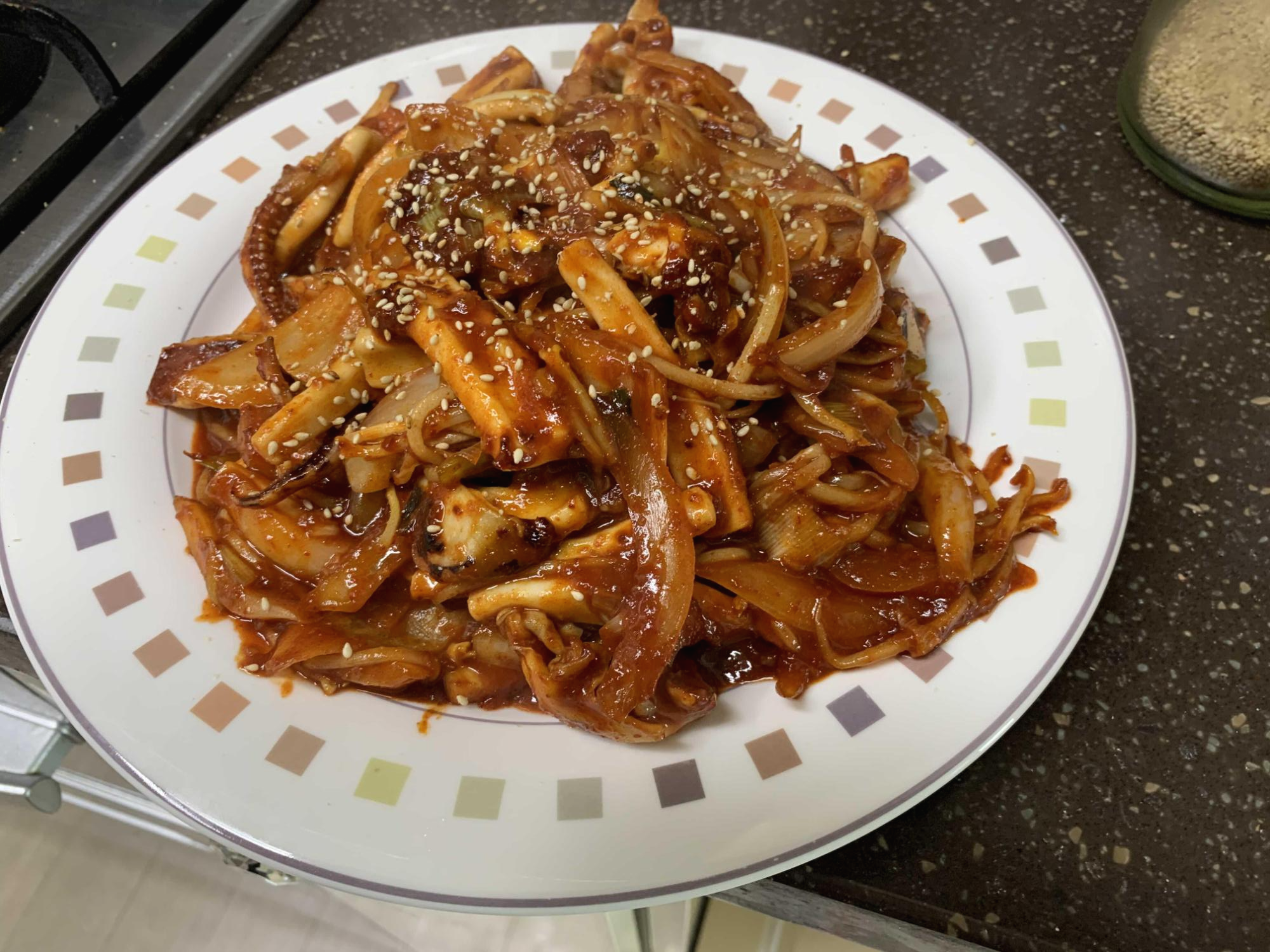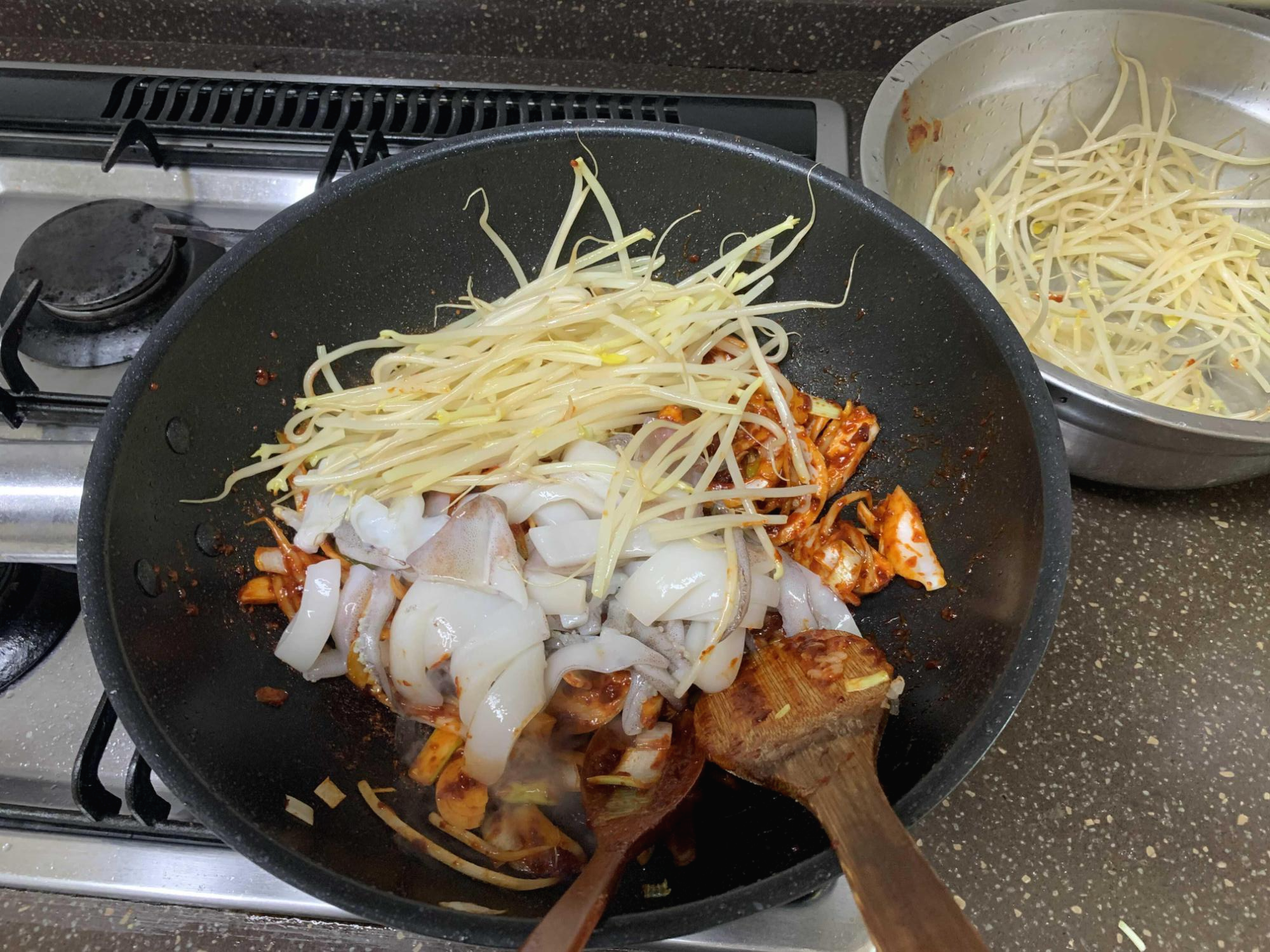 집에서 만든 아귀찜을 올려야 했으나.... 사진을 못 찍었네요.ㅎㅎ 시장에서 함께 사온 오징어로 볶음 사진만 핸드폰으로 찍어서..... 해물찜, 볶음 양념이 대부분 비슷비슷해서... 아귀찜 양념장으로 오징어를 볶아 먹어도 맛이 꽤 괜찮더군요.ㅎㅎ; 저 콩나물은 아귀찜에 넣으려고 구입한 일자 콩나물, 3~4kg 한 박스에 2,900원... 가격은 저렴한고 좋은데... 너무 많은 양이라^^ 아귀 찜해서 먹고, 먹고 남은 소스로 콩나물 버무려 먹고, 여러 번 나누어 먹으니 그 많던 콩나물도 금세 없어지더군요.