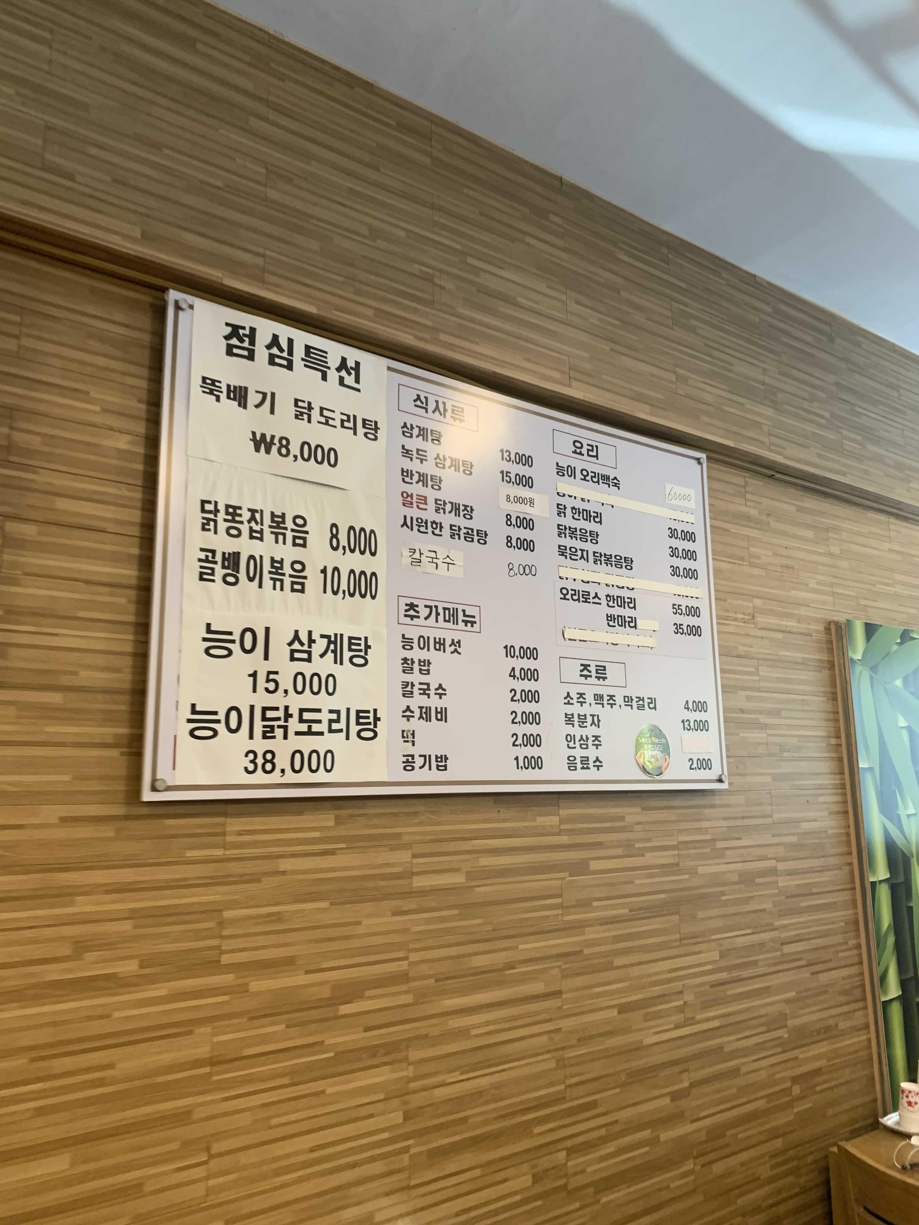 메뉴판을 보며, 점심특선 닭볶음탕 주문하려다, 1인분 닭볶음탕은 맛이 그렇게 없을 거 같더군요. 그래서 오랜만에 삼계탕이나 먹을 겸 삼계탕 주문했습니다. 삼계탕이 13,000원! 서울이라는 지역을 감안해도 좀 비싸게 느껴지는 가격이더군요.