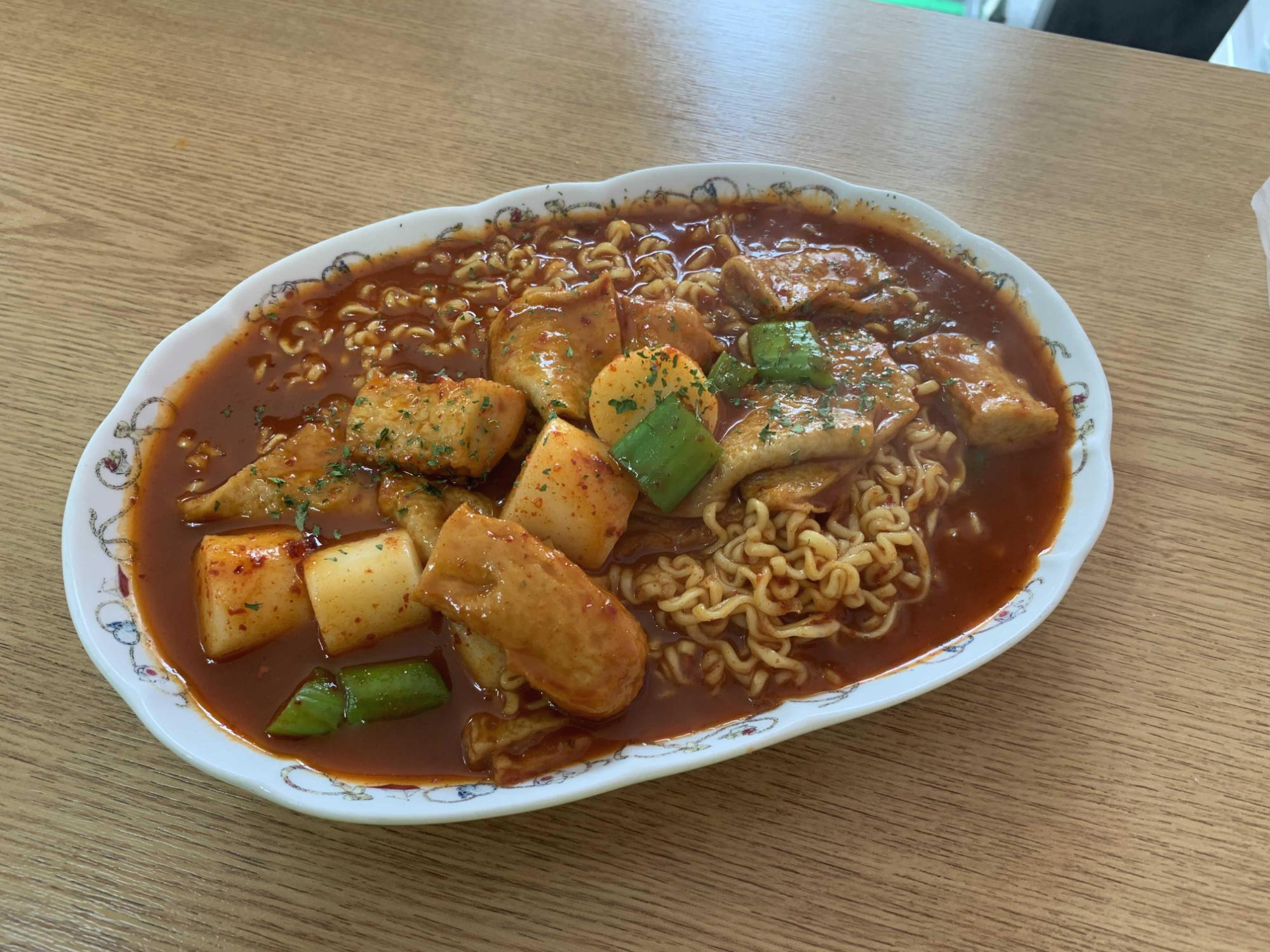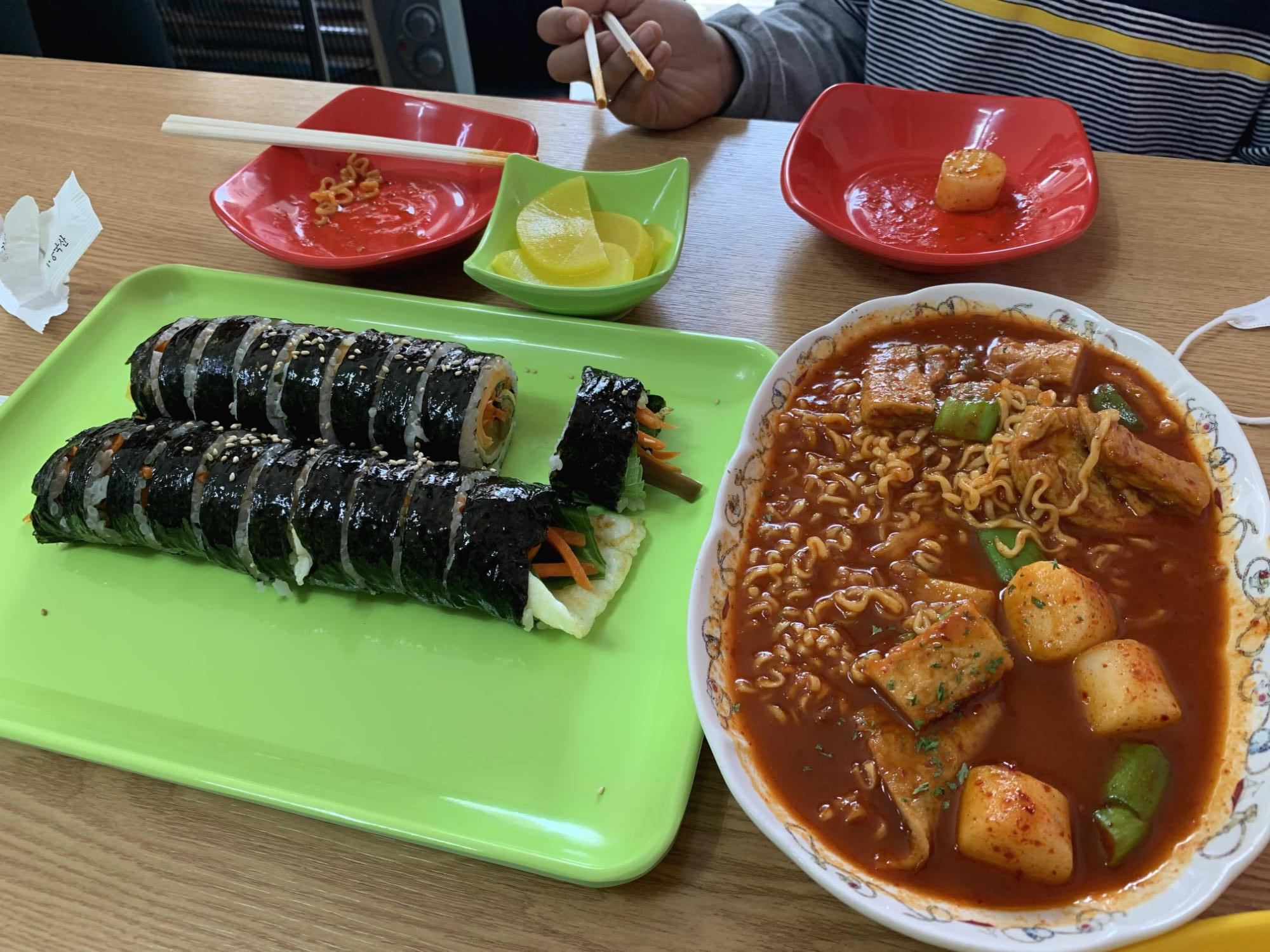 분식집에서는 항상 주문하는 메뉴로 김밥, 떡볶이, 어묵인데... 어묵이 안 보이더군요. 그래서 김밥 2줄과 라볶이를 주문했습니다. 라볶이는 주문하고 조리시간을 거쳐 음식이 나오더군요. 일반적으로 떡볶이집은 한 번에 많이(큰 판에 한판씩) 만들어서 덜어주는 방식으로 판매하는데, 여기는 주문과 동시에 만들어서 나오더군요.