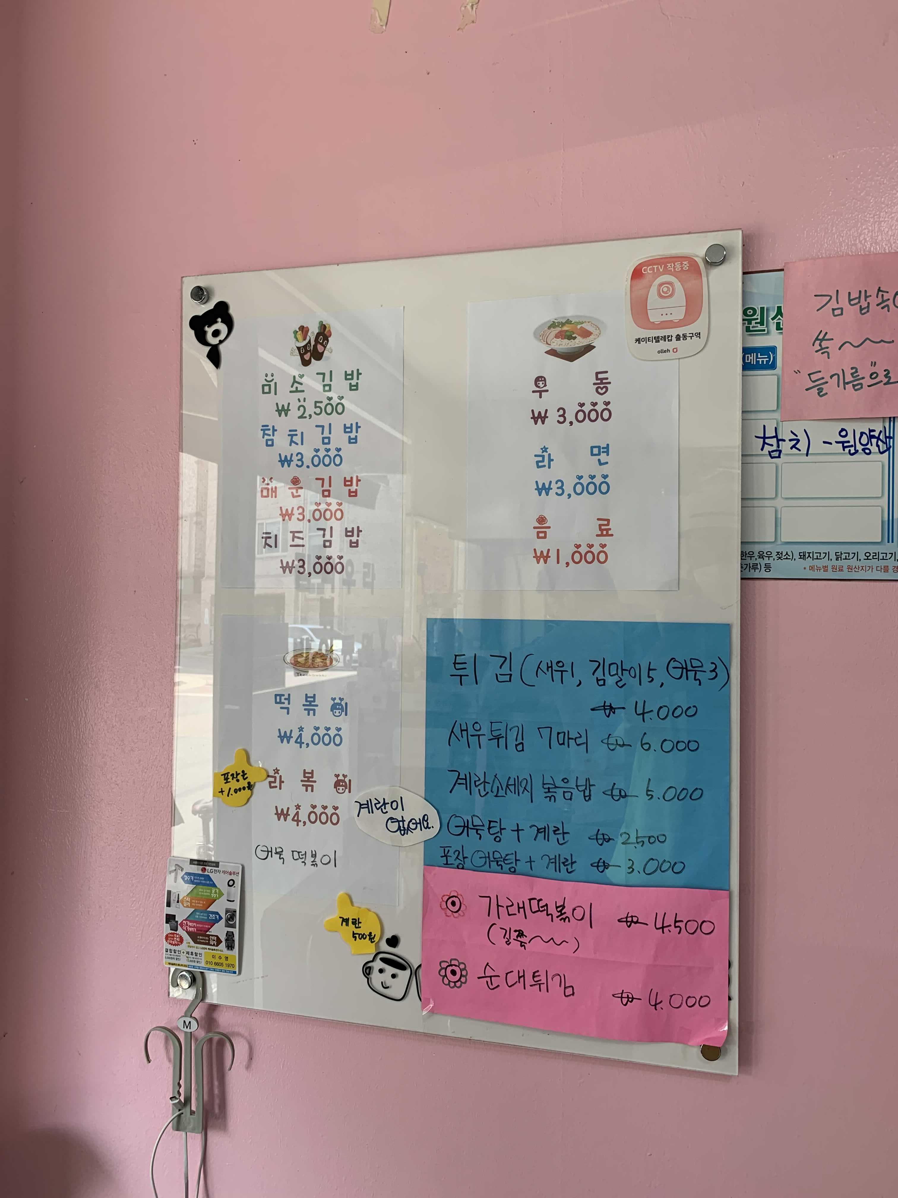늦은 식사시간에 방문해서 그런지는 모르겠으나... 김밥과 떡볶이가 맛이 꽤 괜찮더군요. 다만, 아쉬운 점이라면 분식집에는 국물이 있어야 하는데... 그 국물이 김밥과 함께 먹는 국물이 없다는 것이.... 그 국물이 된장국물이나 어묵 국물이었으면 좋겠다는 생각이 들더군요.
